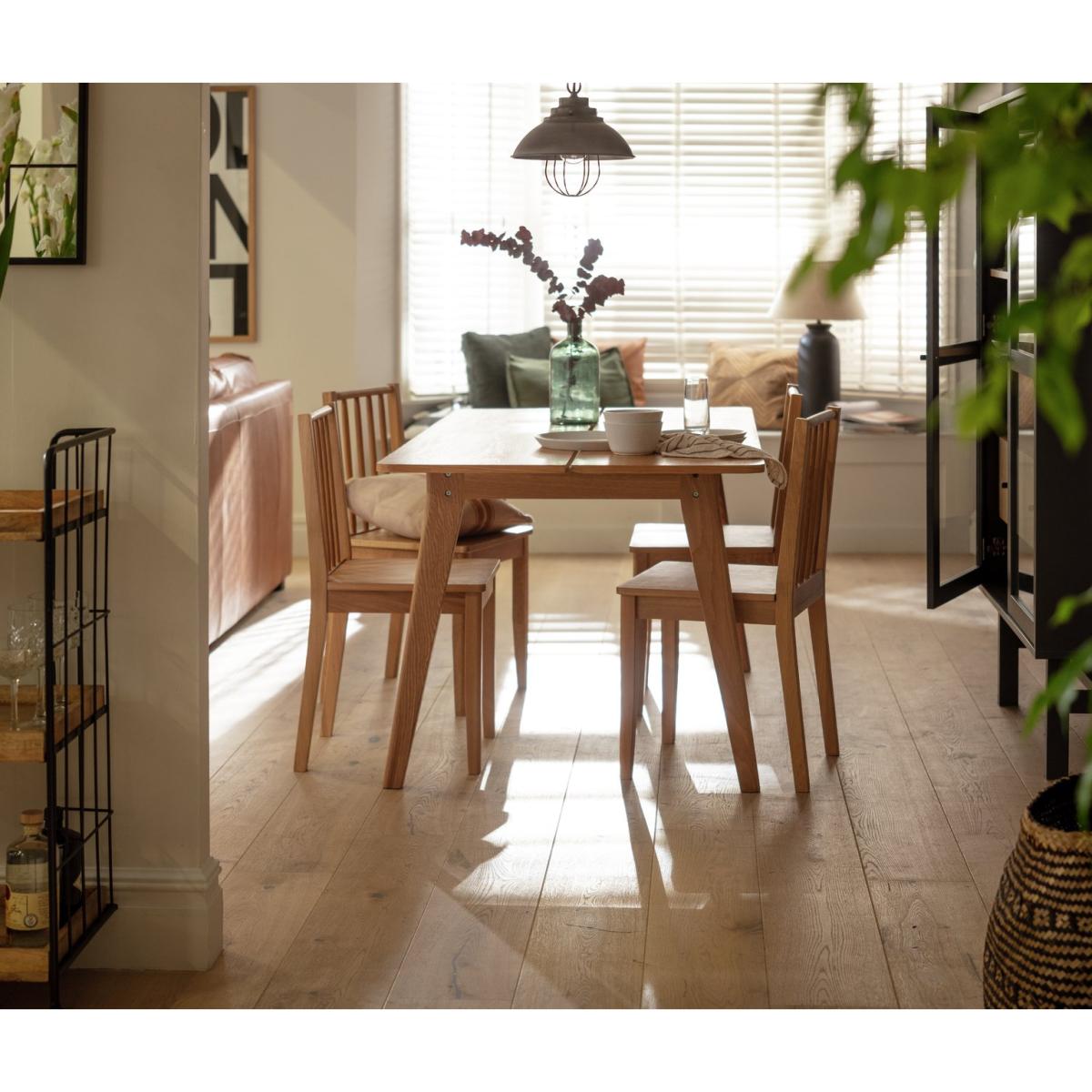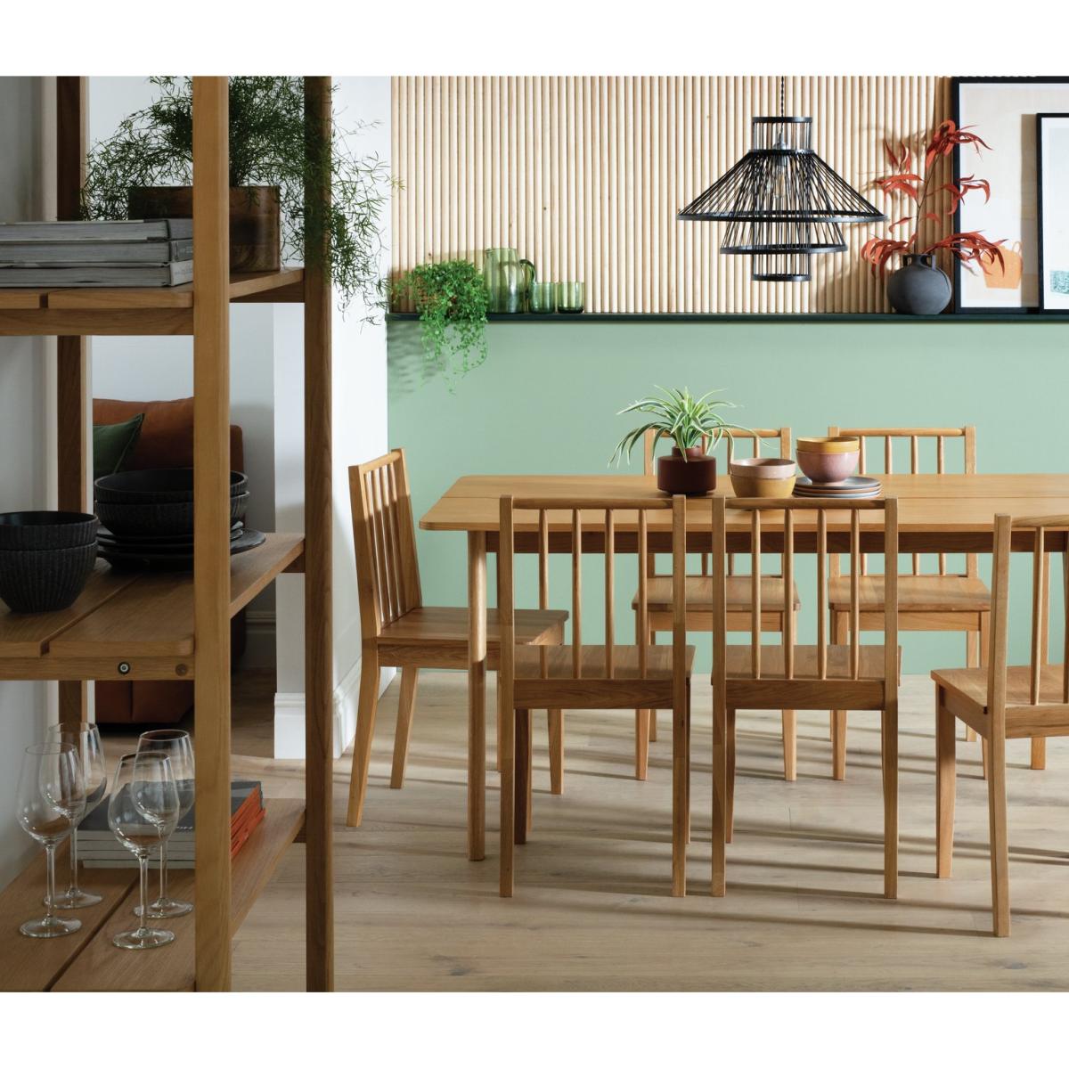 The Habitat Nel oak dining table offers a sleek yet natural look that works well in a variety of interiors, from Scandi-inspired spaces to more contemporary or minimalist schemes. I love its clean lines and warm wood tone, which can easily be styled up with colourful or textured tableware, or kept simple for a more understated aesthetic. Practical styling tips include pairing it with upholstered chairs for added comfort or mixing different styles for an eclectic feel. It’s versatile enough to work in both quiet family kitchens and more open-plan entertaining areas, making it a functional and attractive centrepiece.
