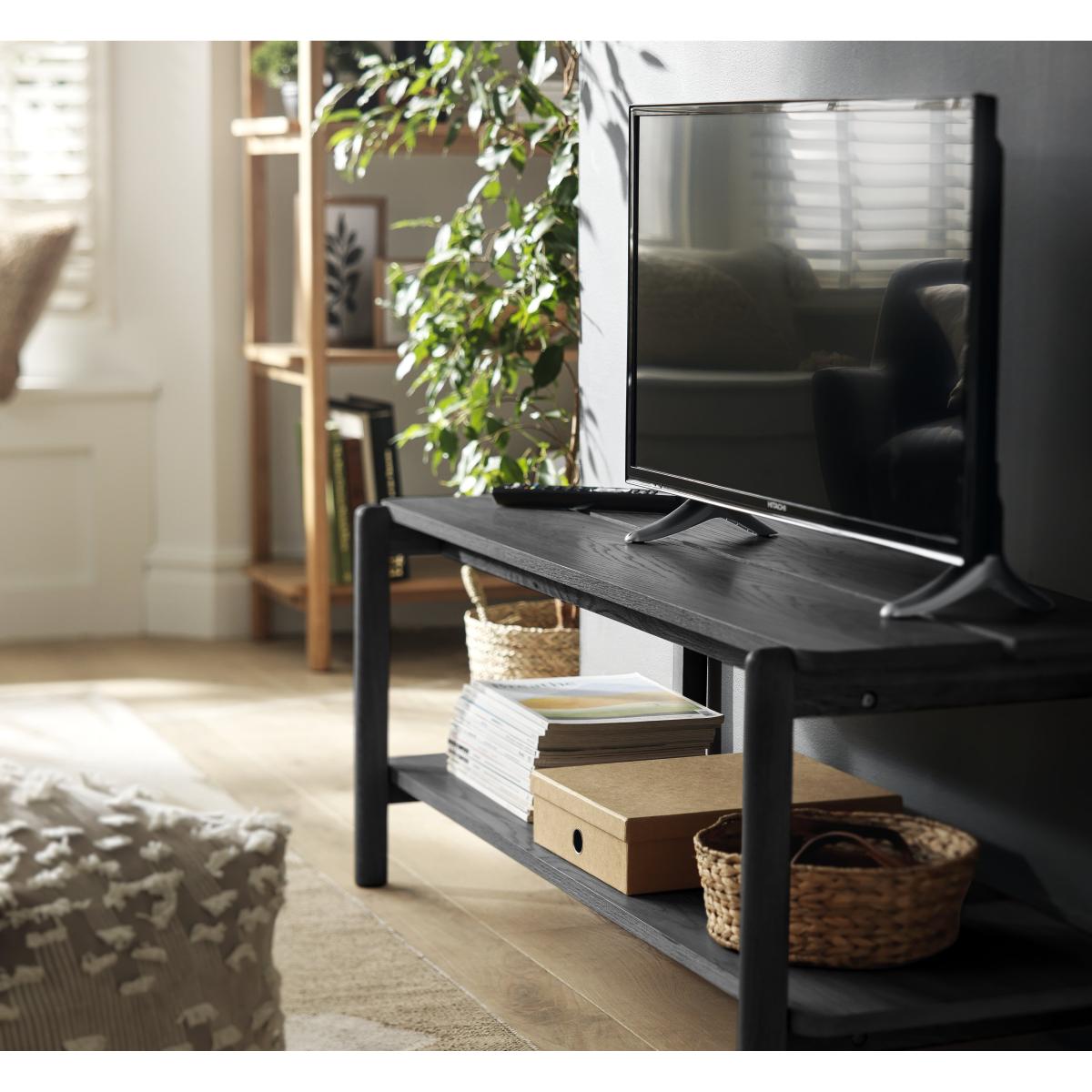 The Habitat Nel TV Unit in black is a versatile piece that works well in both modern and minimal interiors, thanks to its sleek, understated design. I love its clean lines and functional structure, making it ideal for creating a streamlined media corner without overwhelming the space. It’s perfect for contemporary homes or even adding a touch of industrial chic to more eclectic settings. For styling, consider layering a few decorative items like books, vases, or artwork on the top shelf, while utilising the lower space for additional storage of remote controls or media accessories. Pairing it with contrasting textures, such as soft rugs or throw cushions nearby, can help soften the overall look and make the space feel inviting but still polished.