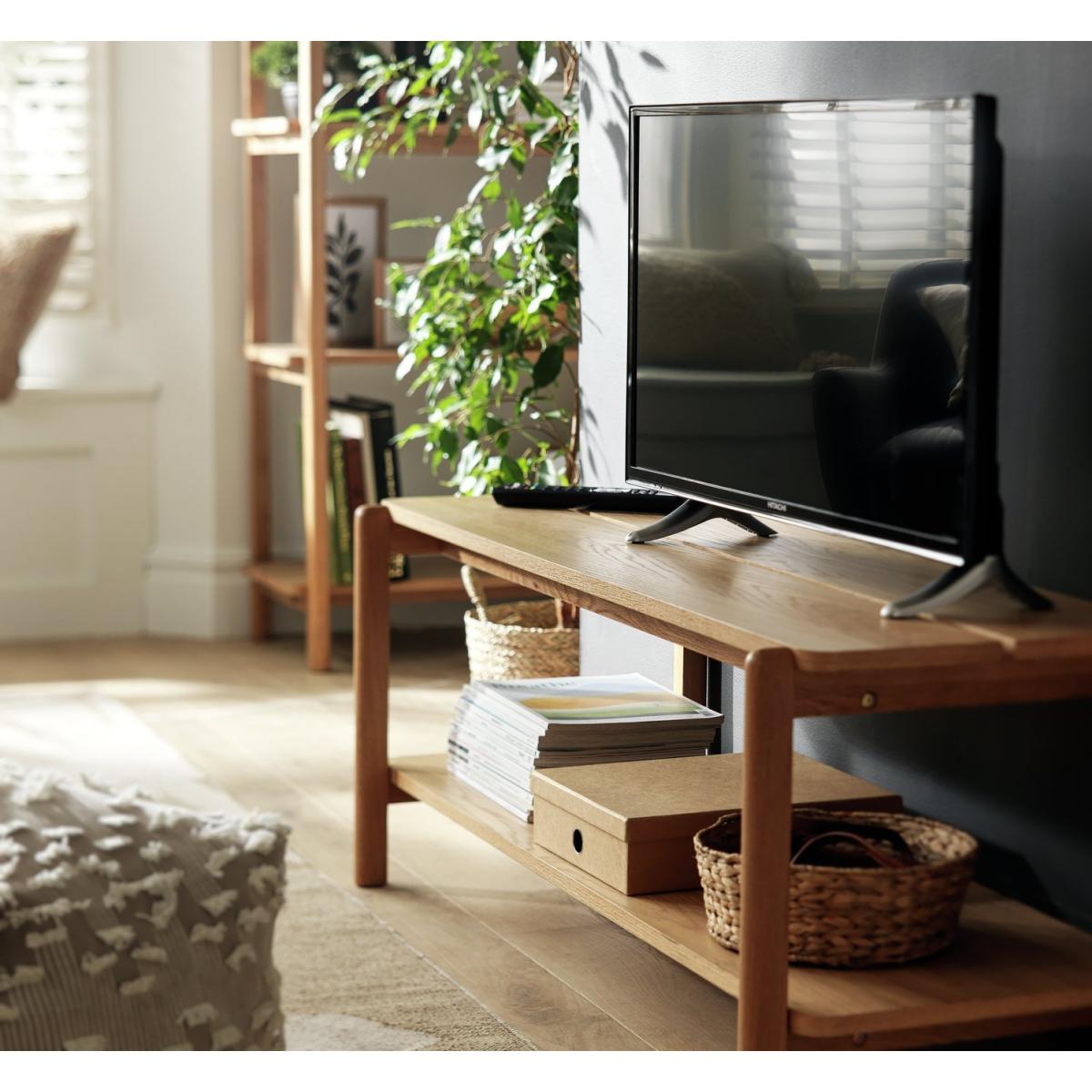 I really like the Habitat Nel TV unit for its clean, natural oak finish, which adds warmth and texture to any living space. It works particularly well in modern, Scandi, or minimalist interiors, but can also blend seamlessly with rustic or coastal styles. Practical styling tips include using the open shelves to display accessories like books or decorative bowls, while keeping the top surface clear for your TV and essential gadgets. To create visual interest, consider pairing it with contrasting colours or textured textiles nearby, and ensure it’s positioned against a wall with ample space around it to highlight its simple, elegant silhouette.