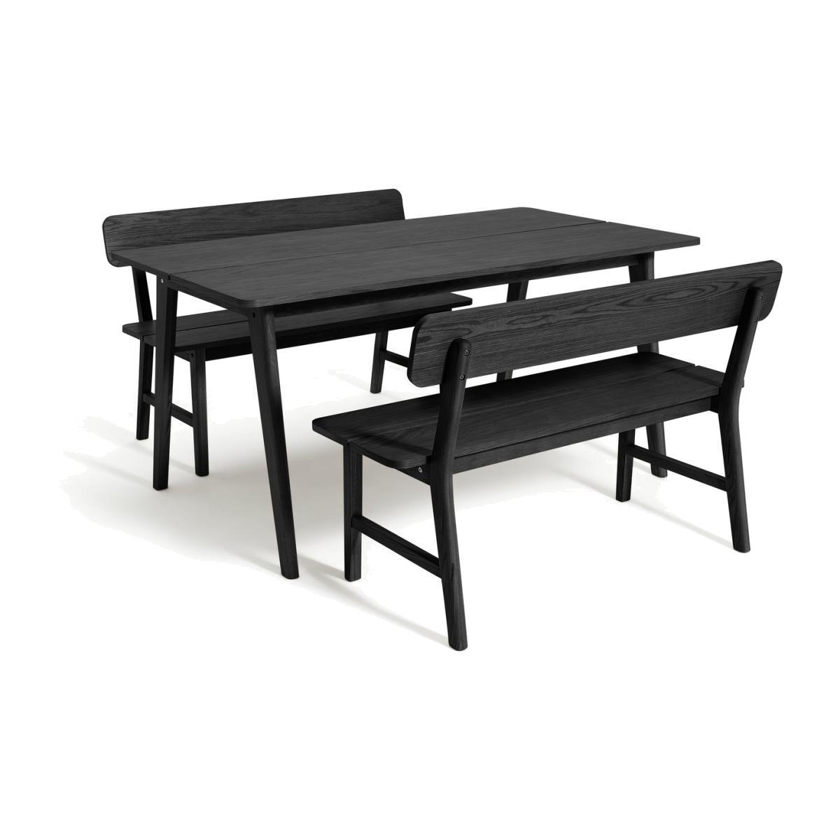 Gather the family around. Our black wooden 4-seater dining set brings a contemporary charm to mealtimes. Featuring a table and 2 benches crafted in a clean and simple design. So fresh and modern. With individual touches like curved corners, tapered legs and planked seating, this is furniture to fall in love with. Settle it in your kitchen or dining area and pop on a few cushions. A delightful way to dine. Got a few more guests? Pull up an extra pew or two with matching chairs in our Nel collection. Part of the Nel collection. Table: Table size H85.6, W75, L160cm. Wood effect table with wood effect legs. Wood veneer table top finish. Self-assembly - 2 people recommended. Chair:Maximum user weight per chair 200kg. Bench:Includes 2 benches. Bench size H120, W51, D79cm. Made from wood effect. Wood effect finish. Self-assembly. Bench weight 13.6kg. Package Dimensions: Table package 1 size H172, W94, D10cm. Individual chair package size H128, W68, D10cm. General information:We are excited to be welcoming some of our favourite HOME products into the Habitat range. Your product may arrive in Habitat or HOME packaging. Wipe clean.