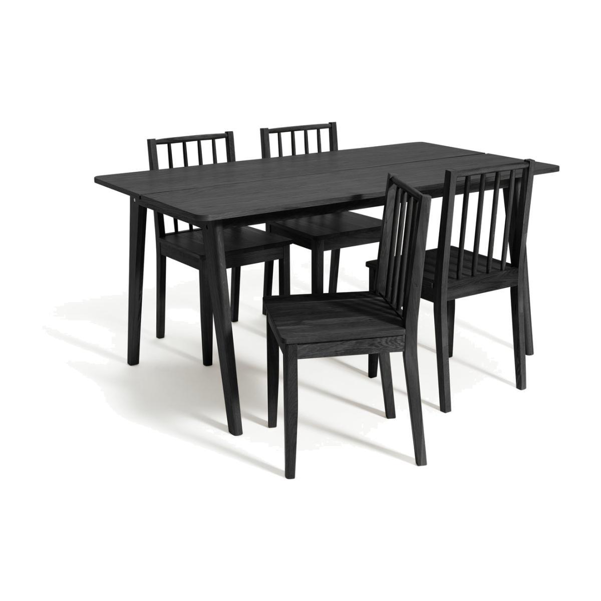 Gather the family around. Our black wooden 4-seater dining set brings a contemporary charm to mealtimes. Featuring a table and 4 chairs crafted in a clean and simple design. So fresh and modern. With individual touches like curved corners, tapered legs and spindle backs, this is furniture to fall in love with. Settle it into the corner of your kitchen or in your dining area and pop on a few cushions. A delightful way to dine. Got a few more guests? Pull up an extra pew or two with matching chairs in our Nel Collection. Part of the Nel collection. Table: Table size H85.6, W75, L160cm. Wood effect table with wood effect legs. Wood veneer table top finish. Self-assembly - 2 people recommended. Chair:Includes 4 chairs. Size of each chair H84.5, W47, D48cm. Seat height 45cm. Solid wood frame with solid wood legs. Solid wood seat pad. Self-assembly. Maximum user weight per chair 100kg. Individual chair weight 7.3kg. Bench:Self-assembly. Package Dimensions: Table package 1 size H172, W94, D10cm. Individual chair package size H12, W52, D92cm. General information:We are excited to be welcoming some of our favourite HOME products into the Habitat range. Your product may arrive in Habitat or HOME packaging. Clean with a sponge and warm soapy water.