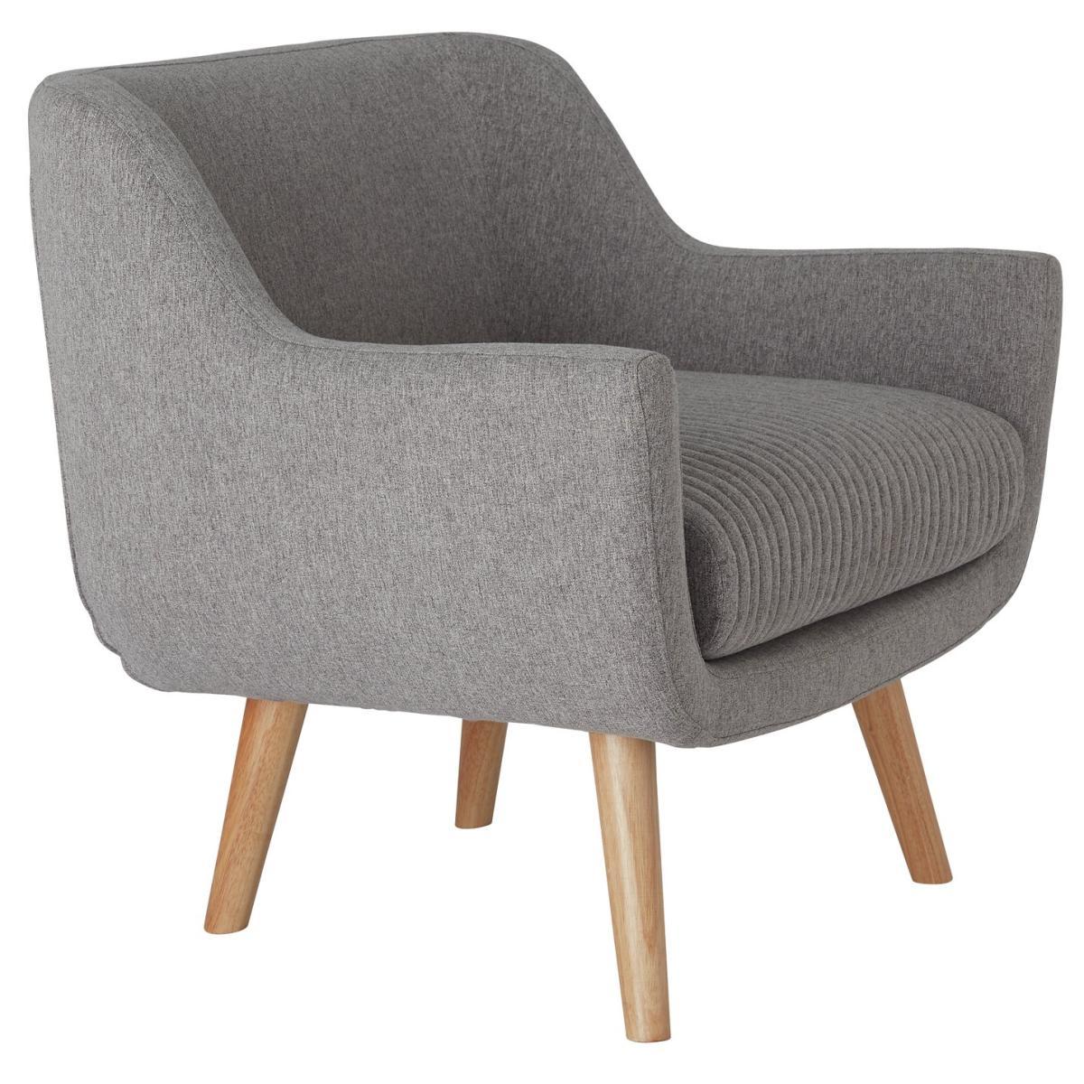 Do you enjoy long evening reading sessions? Well, the Habitat Nellie was made for them. It offers notes of Scandinavian style, from its angled wooden legs to its modern grey hue. It will seat you comfortably with its wide seat and generous cushioning. Details such as its low curved arms and quilted seat cushion give this accent chair a stylish edge. Just a couple more pages.