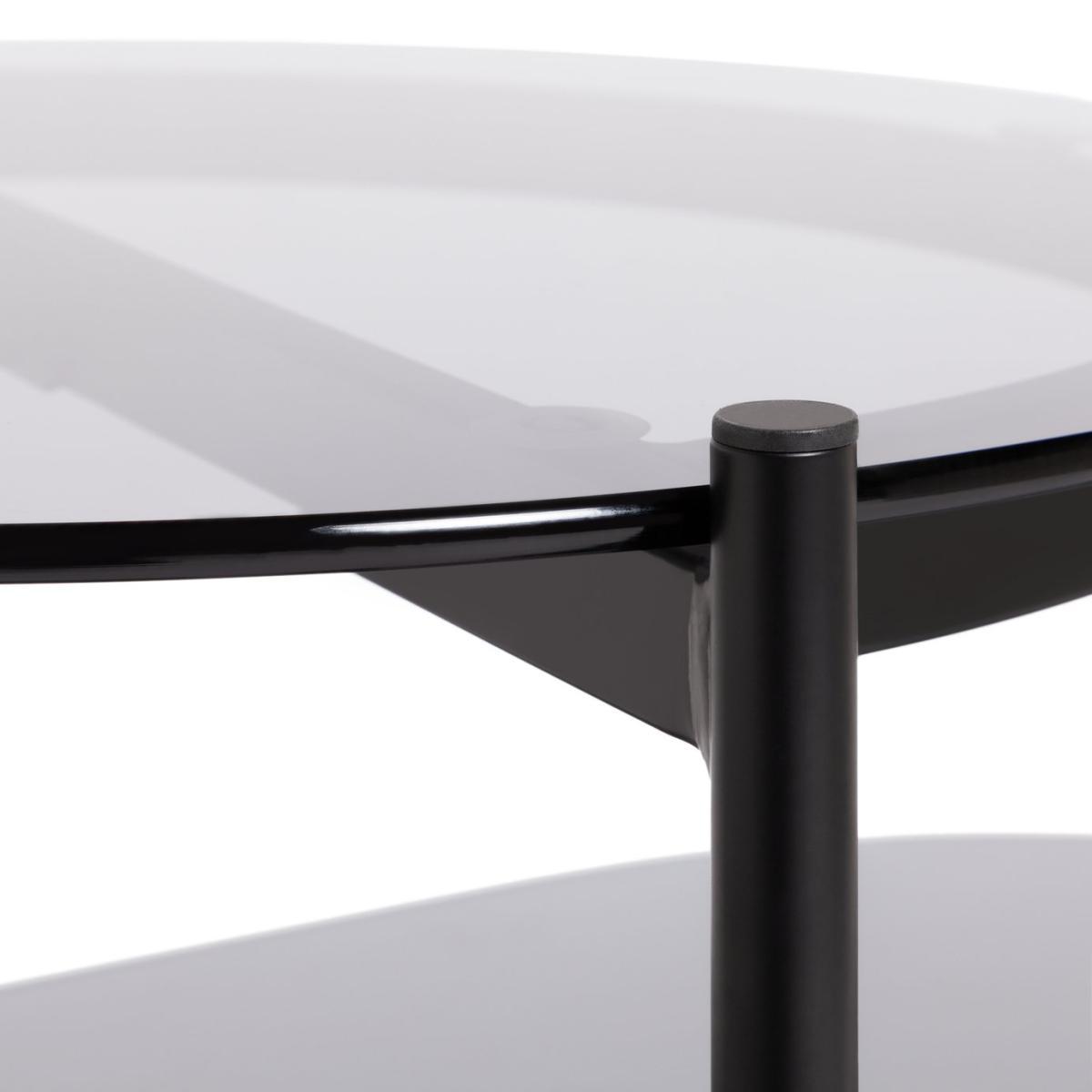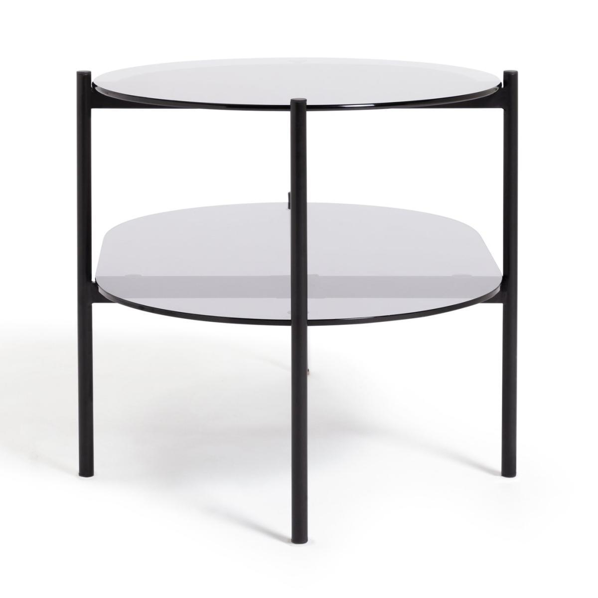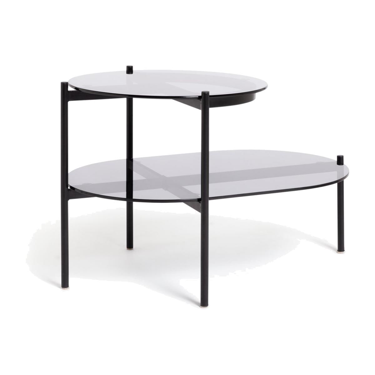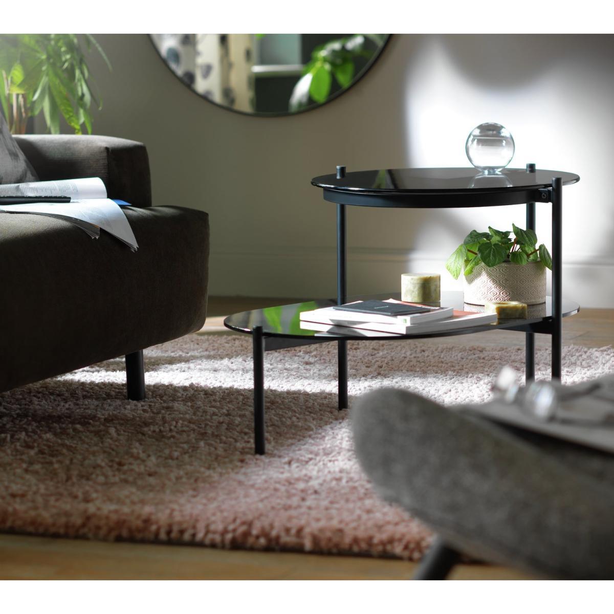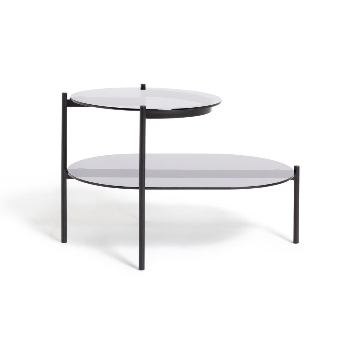 Accents maketh the room. Like this tiered side table, for example. Part of our Neo collection, this unique piece features a small upper level for placing drinks and a larger lower level for essentials like remotes or collectibles like books, candles, or your collection of potted cactuses. However, you choose to use it, the smoked glass and black tube legs make a sleek, modern statement in any room.