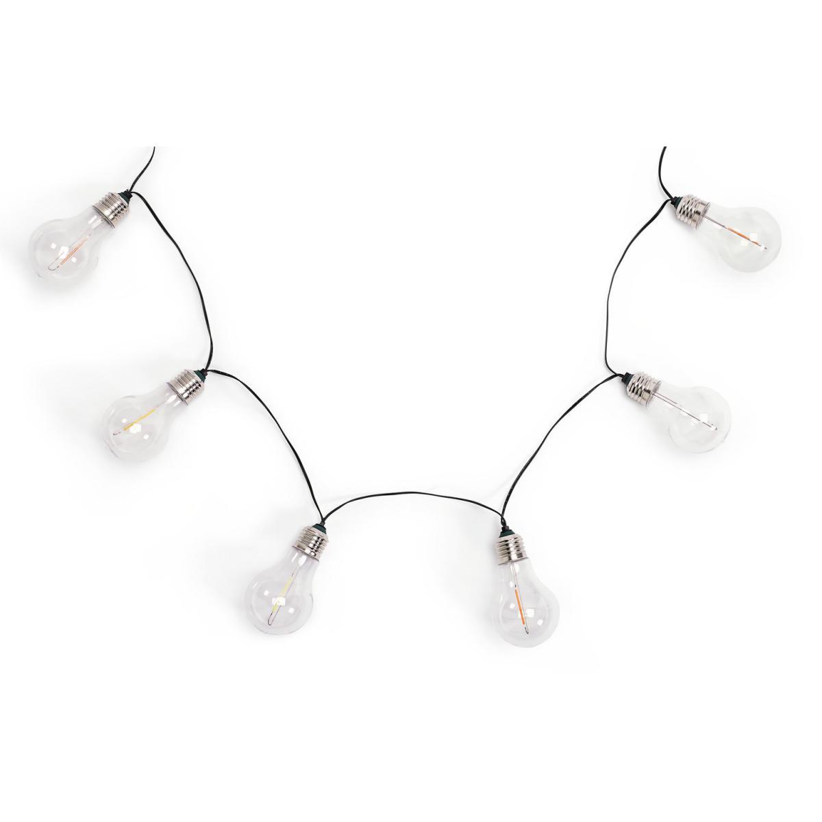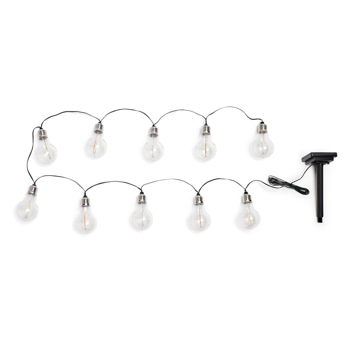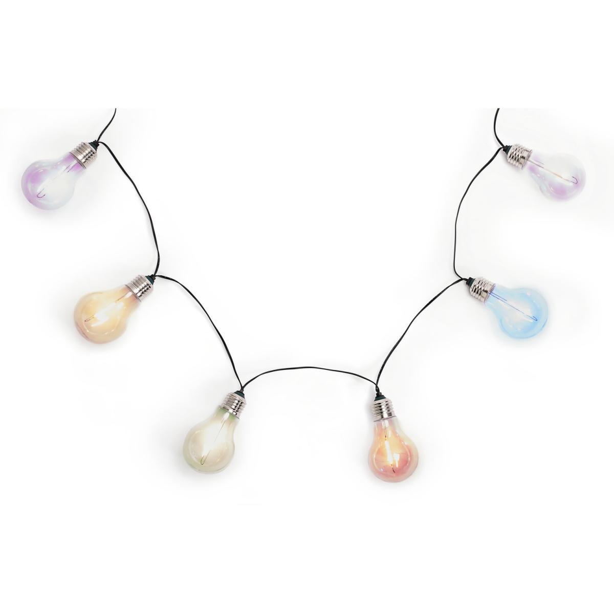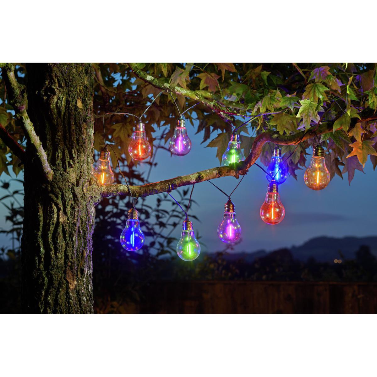 Create the perfect ambience with the Solar Neon Effect Bulb String Lights. Adding a touch of retro charm to your outdoor space, they're a practical and fun addition to any garden. What's more, with no complicated wiring, they couldn't be easier to set up. With 10 multicoloured LEDs included, you can enjoy up to 6 hours of solar-powered battery life. Multi-coloured neon lightbulbs create a retro lighting effect. L380cm. Post material: plastic. Head material: plastic. Multicoloured light emitted. No wiring required. Integrated LED. LED. Batteries required: 1 x NiM H Batteries Included.