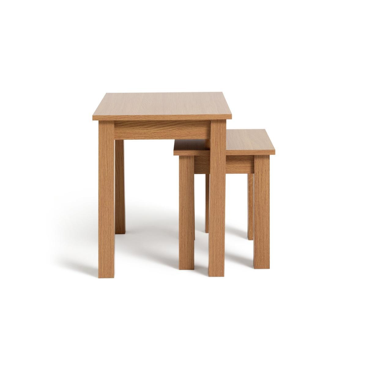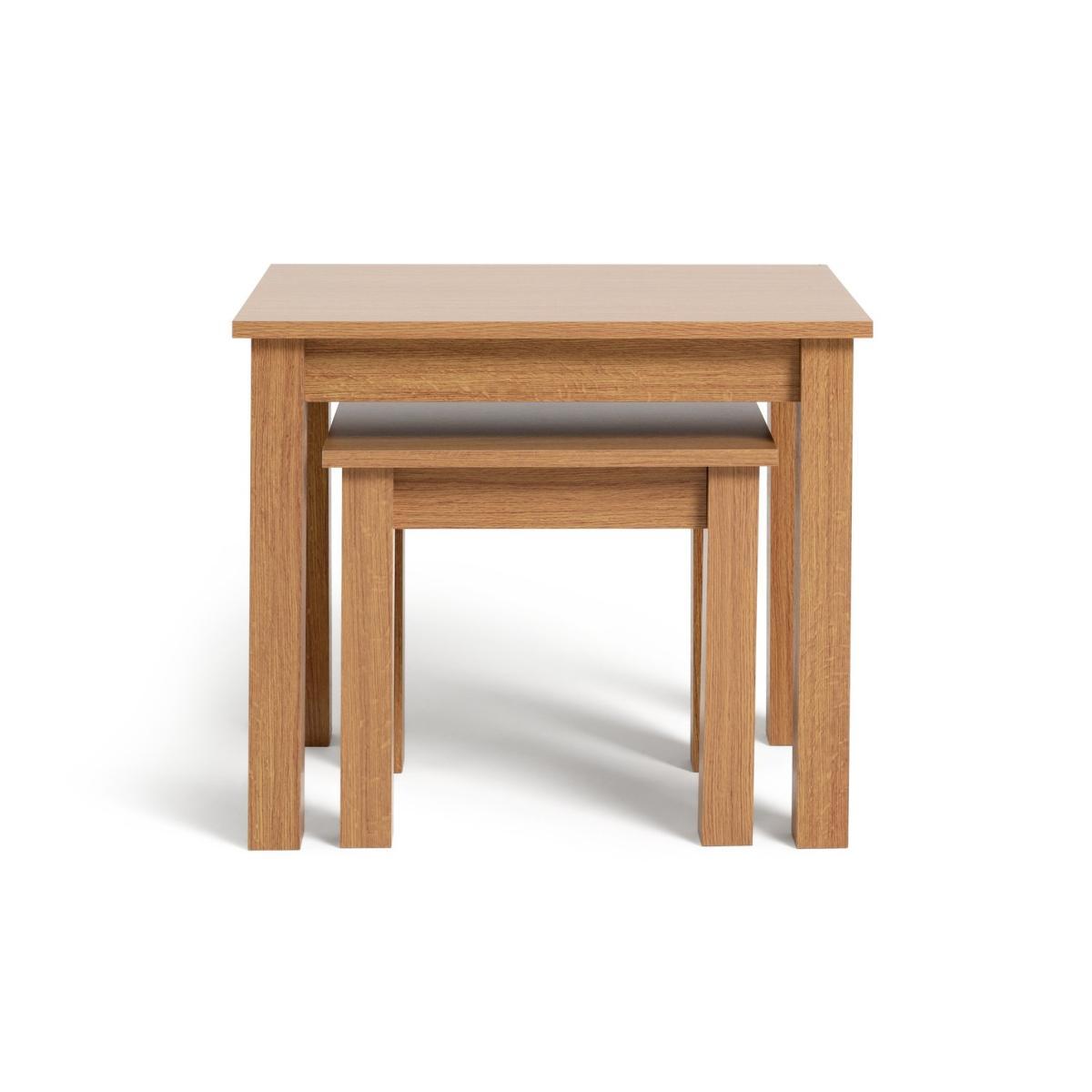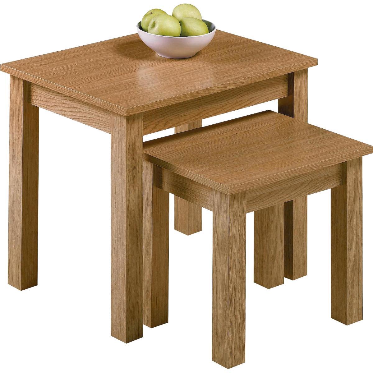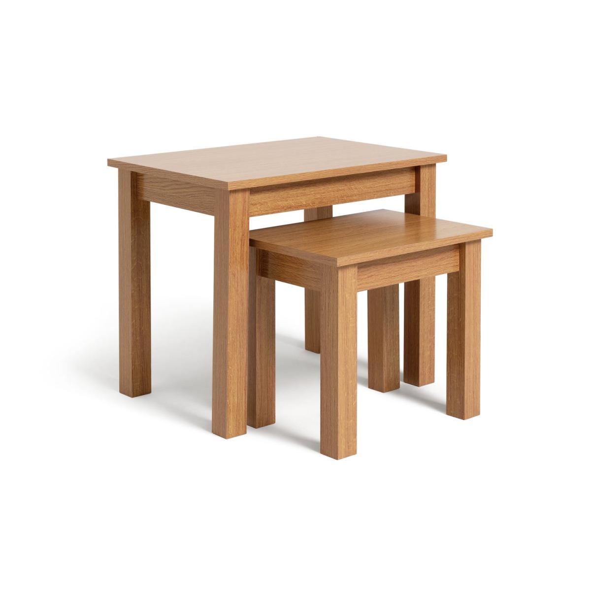 What's this? A nest of tables that doesn't cost the earth but still looks great? That's right. Our Habitat nest boasts smart good looks but with a small price tag. Perfect hey? In an oak-effect finish, it's no nonsense style makes this set versatile enough to suit any lounge. Rest your cuppa, rest your book or, even, rest your feet on these sturdy little numbers.