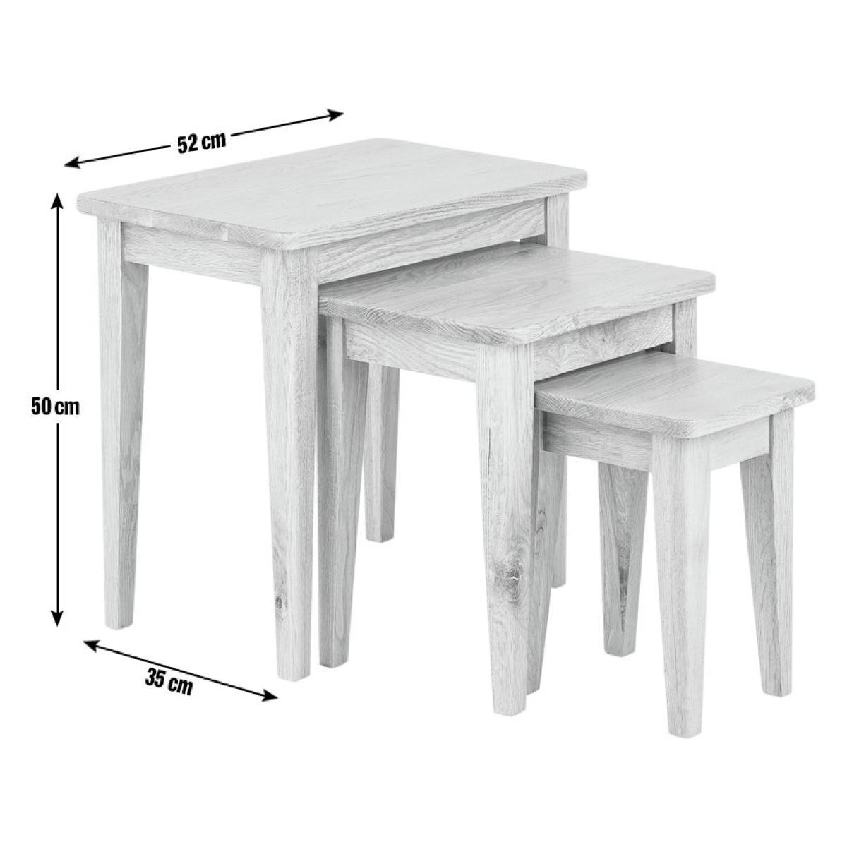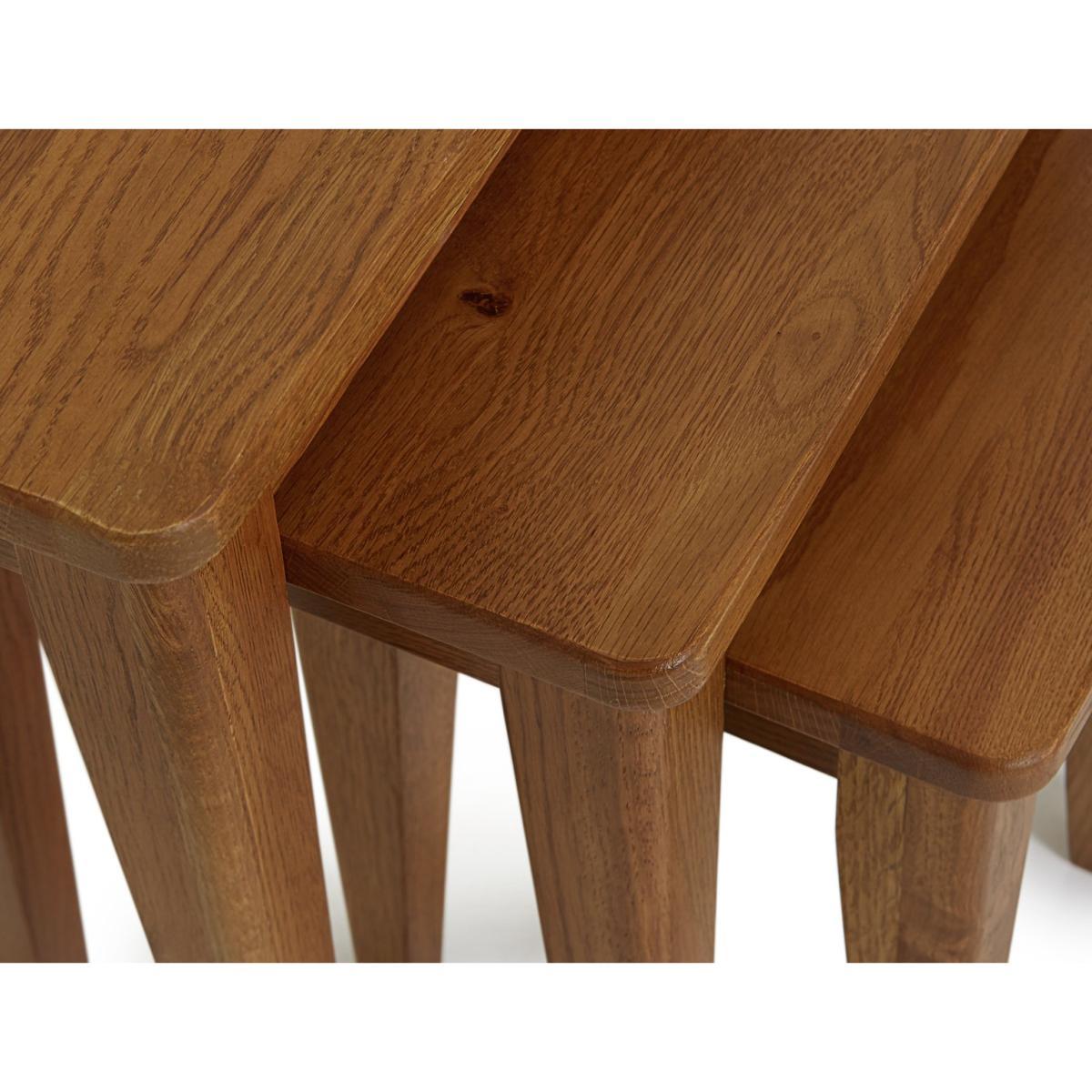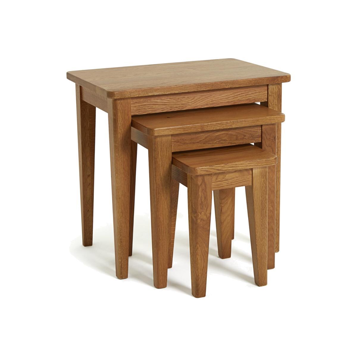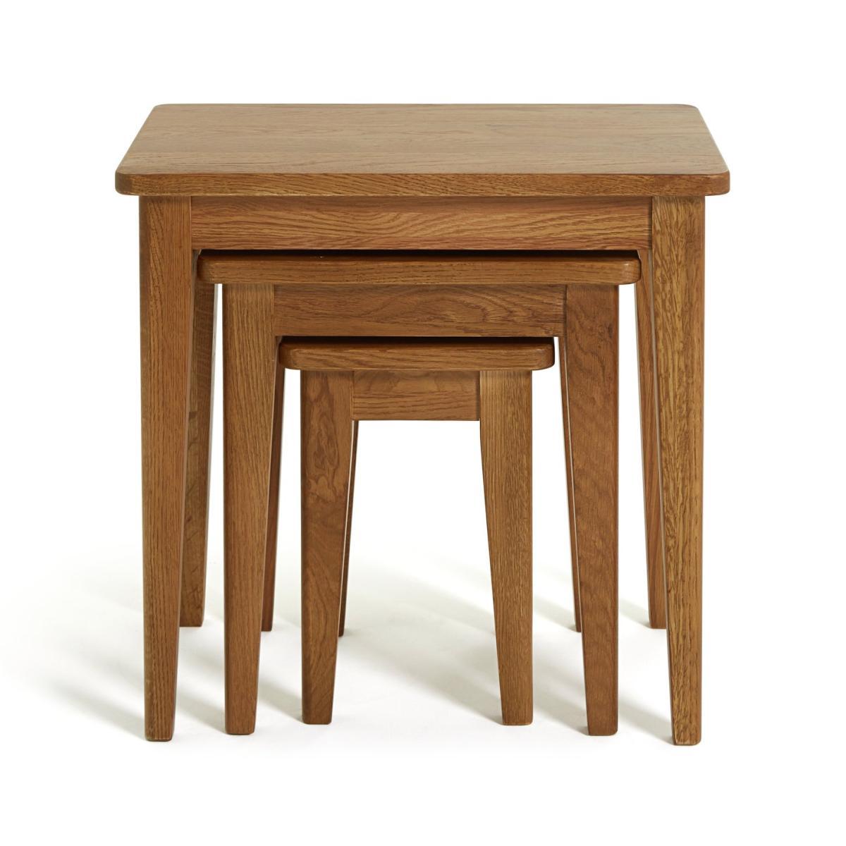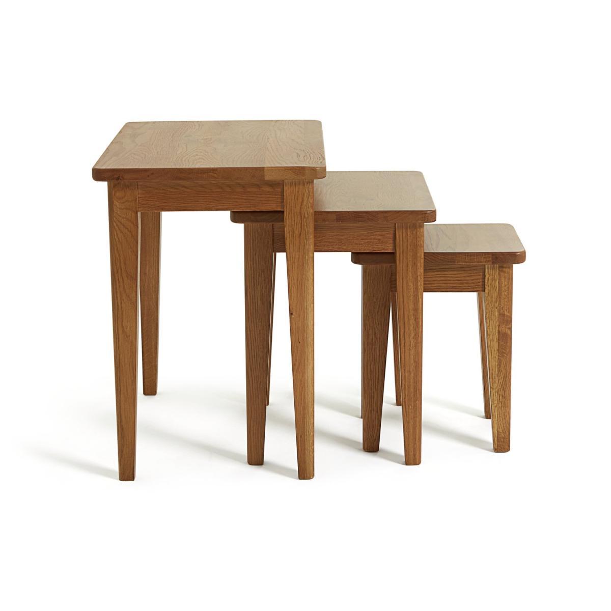Sturdy, stylish, solid oak. Three's not a crowd when it comes to a great nest of tables. This Habitat set nestle neatly into one another to save on space when they're not in use. If guests pop round, pull out the two smaller tables for extra surface space. Just add tea and biscuits. Crafted from solid oak, they have a rich, warm and hardwearing finish. A nest for your cuppa to rest.