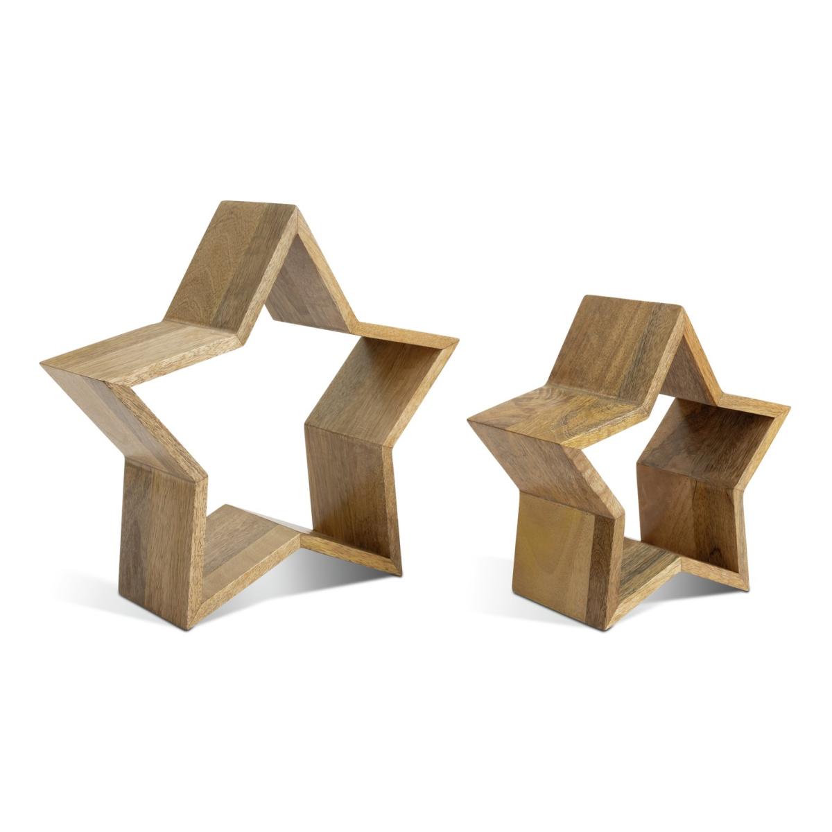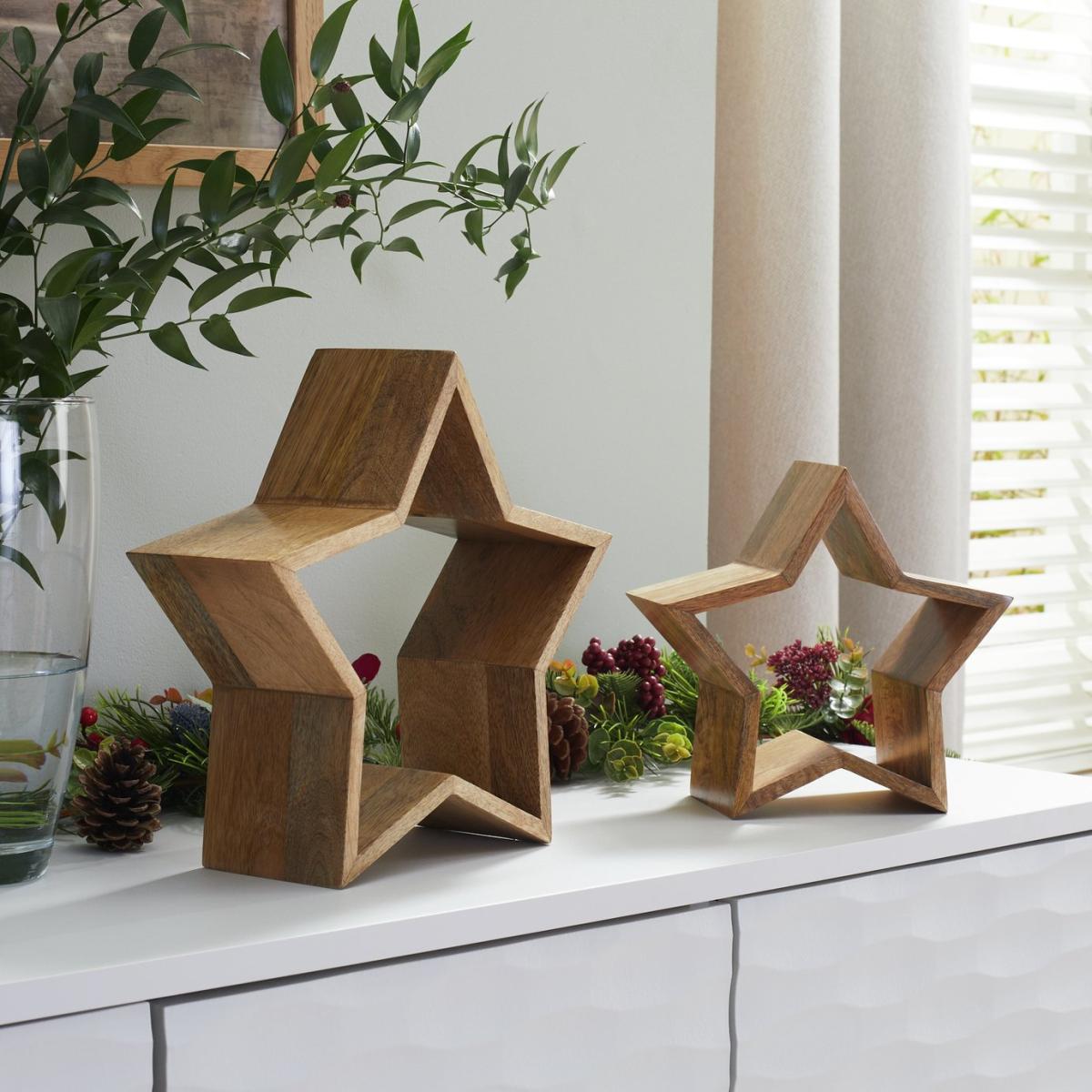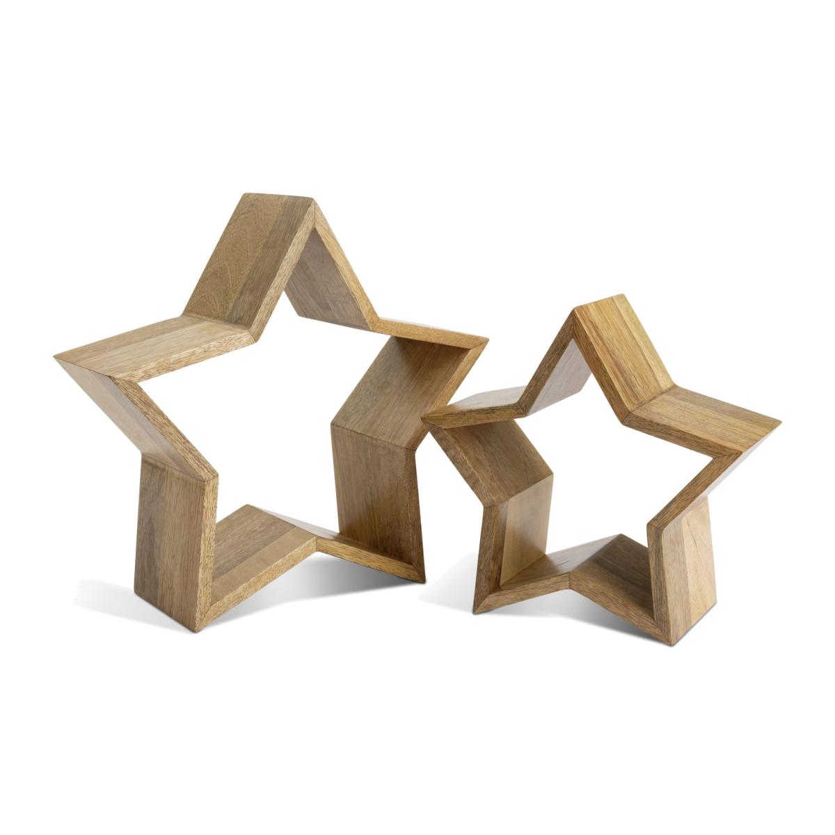 A naturally decorative way to celebrate the season. This pair of standout stars are carved from Mango wood. Smoothly polished to bring out the natural beauty of the multi-tonal grain, they have an irresistibly tactile quality. It's a touch of nature with a festive theme. Size H28, W29.5, D10cm. Weight 0.55g.