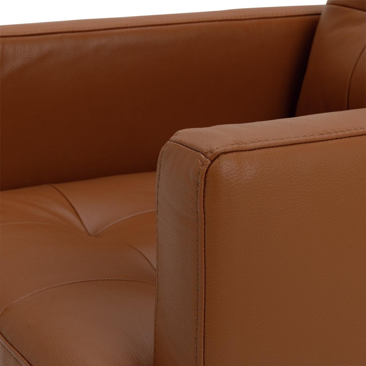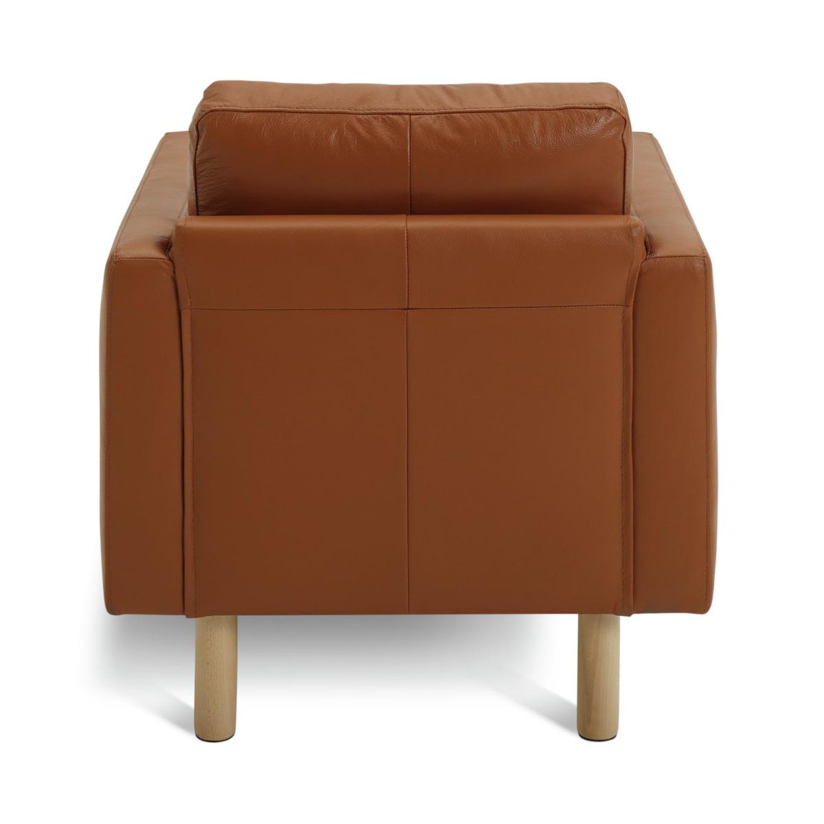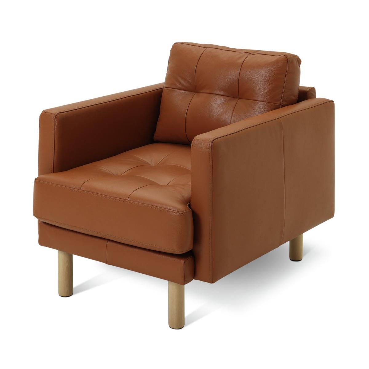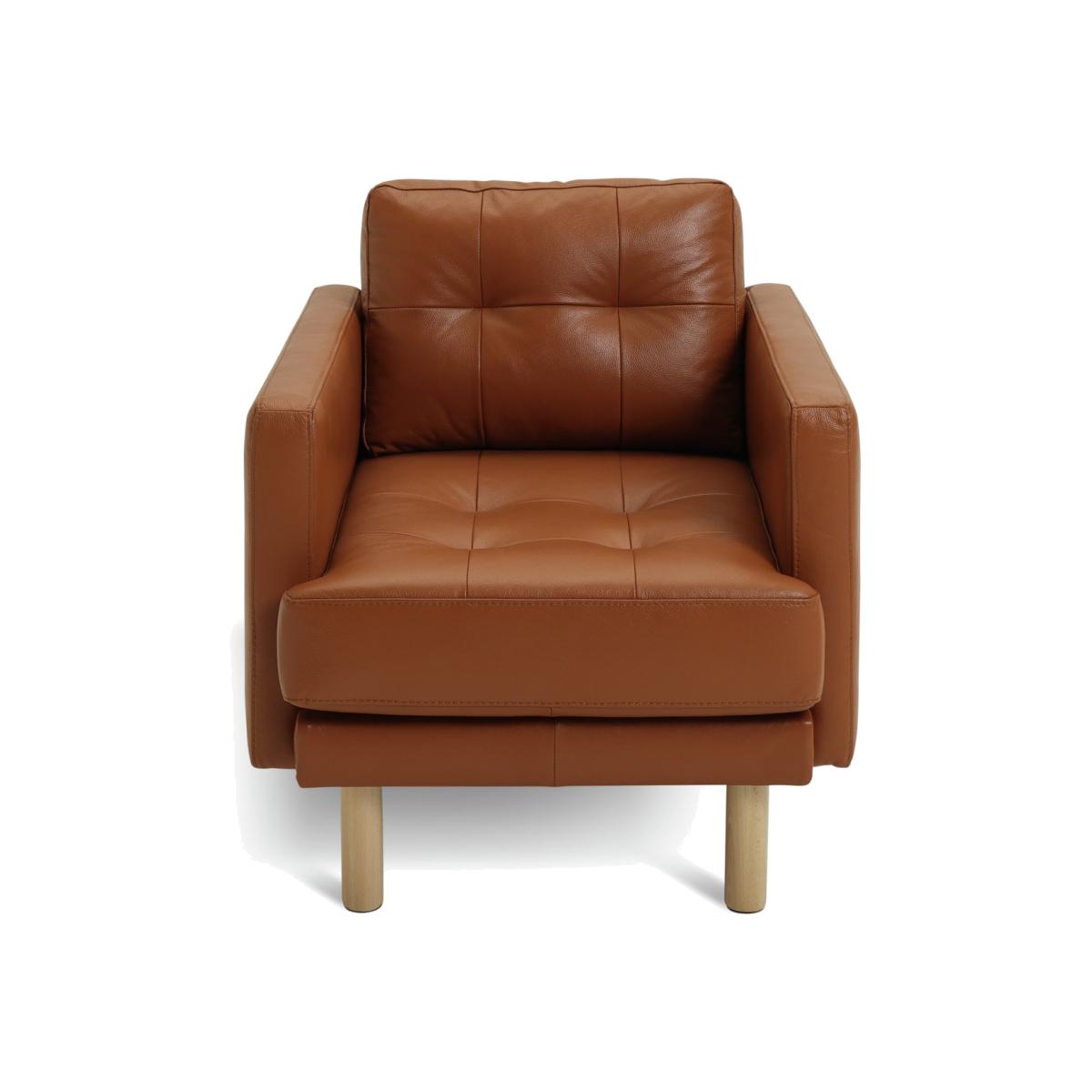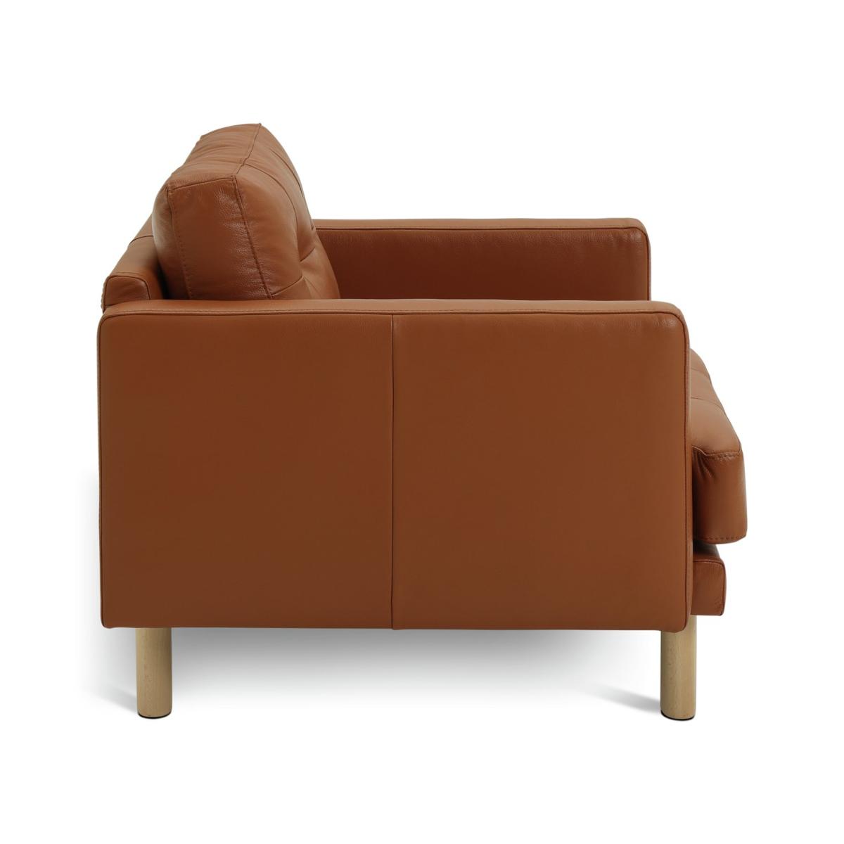 Finest seat in the house? If you're inspired by iconic Mid-Centry styling, our leather armchair will tick all the boxes. Crafted with attractive panel upholstery in top grain quality leather. With a deeply tufted, pocket sprung, foam-filled seat and deep padded back, it really does cushion you in comfort. Black painted wooden legs add a final dramatic flourish to the dark and natural beauty of this vintage style piece. Add character with a retro lamp or side table and you've got an instant Mid-Century look. Part of the Newell collection. Material: Top grain leather. Made from 100% leather. Wooden feet. Removable seat with pocket sprung foam filling. Removable cushion(s) with fibre filling. Dimensions: Size H84, W74, D89cm. Floor to seat height: 45cm. Depth of seat: 59cm. Height of seat back: 36cm. Width of seating area between arms: 61cm. Height of arm rest: 65cm. Footstool size H84, W74, D89cm. Weight 22.5kg. Professional clean only. Plump cushions regularly to maintain shape. Minimal assembly - just add feet. Maximum individual user weight 120kg. Packaged dimensions: Package size H68, W76, D91cm. General information: We are excited to be welcoming some of our favourite HOME products into the Habitat range. Your product may arrive in Habitat or HOME packaging. Manufacturer's 10 year frame guarantee.