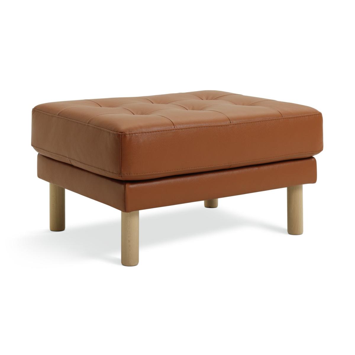 Feet up and relax with our Newell buttoned footstool. Upholstered in rich tan leather it brings mid-century modern design home. A comfortable spare seat when you have extra guests thanks to the luxe foam and dacron filling. And perfect for a game board or tray when the occasion calls. Want more of Newell? Explore our matching 2- and 3-seater sofas. Part of the Newell collection. Material: Top grain leather. Made from 100% leather. Wooden feet. Fixed cushion(s) with foam and dacron wrap filling. Dimensions: Size H45, W74, D60cm. Weight 9kg. Professional clean only. Minimal assembly - just add feet. Maximum individual user weight 120kg. Packaged dimensions: Package size H46, W76, D62cm. General information: We are excited to be welcoming some of our favourite HOME products into the Habitat range. Your product may arrive in Habitat or HOME packaging. Manufacturer's 10 year frame guarantee.