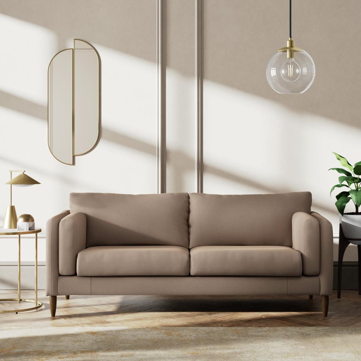When it's made for you, you know you'll love it. The Newington is a contemporary 3-seater sofa with excellent credentials. It combines a modern linear design with plenty of cushioned comfort. There's even a smart pair of slim side bolsters to nestle against. Upholstered in Aquaclean chenille the Newington combines a soft feel with easy clean durability. While wooden turned legs add the finishing touch. Offering relaxed comfort, the Newington's reversible seat cushions use high density foam core wrapped in soft fibre wadding to create the perfect balance of support, durability and recovery. Hand made to order in the UK, the Newington uses quality materials and traditional techniques for furniture that's unique to you. Available in a choice of sizes and fabrics including Aquaclean technology protection built into the yarn, which is easy to clean with just water. Part of the Newington collection. Material: Made from 100% polyester. Wooden feet - dark wood. Removable seats with foam fibre wrap filling. Removable cushion(s) with foam fibre wrap filling. Free fabric swatch available on this line. Dimensions: Size H82, W195, D88cm. Floor to seat height: 47cm. Depth of seat: 55cm. Height of seat back: 40cm. Width of seating area between arms: 154cm. Height of arm rest: 68cm. Weight: 48kg. Packaged dimensions: Package size H57, W200, D93cm. General information: We do more than deliver your product, we unpack, set it up and take away the packaging. Manufactured in the UK using components sourced globally. Professional clean only. Plump cushions regularly to maintain shape. Manufacturer's 15 year frame guarantee.