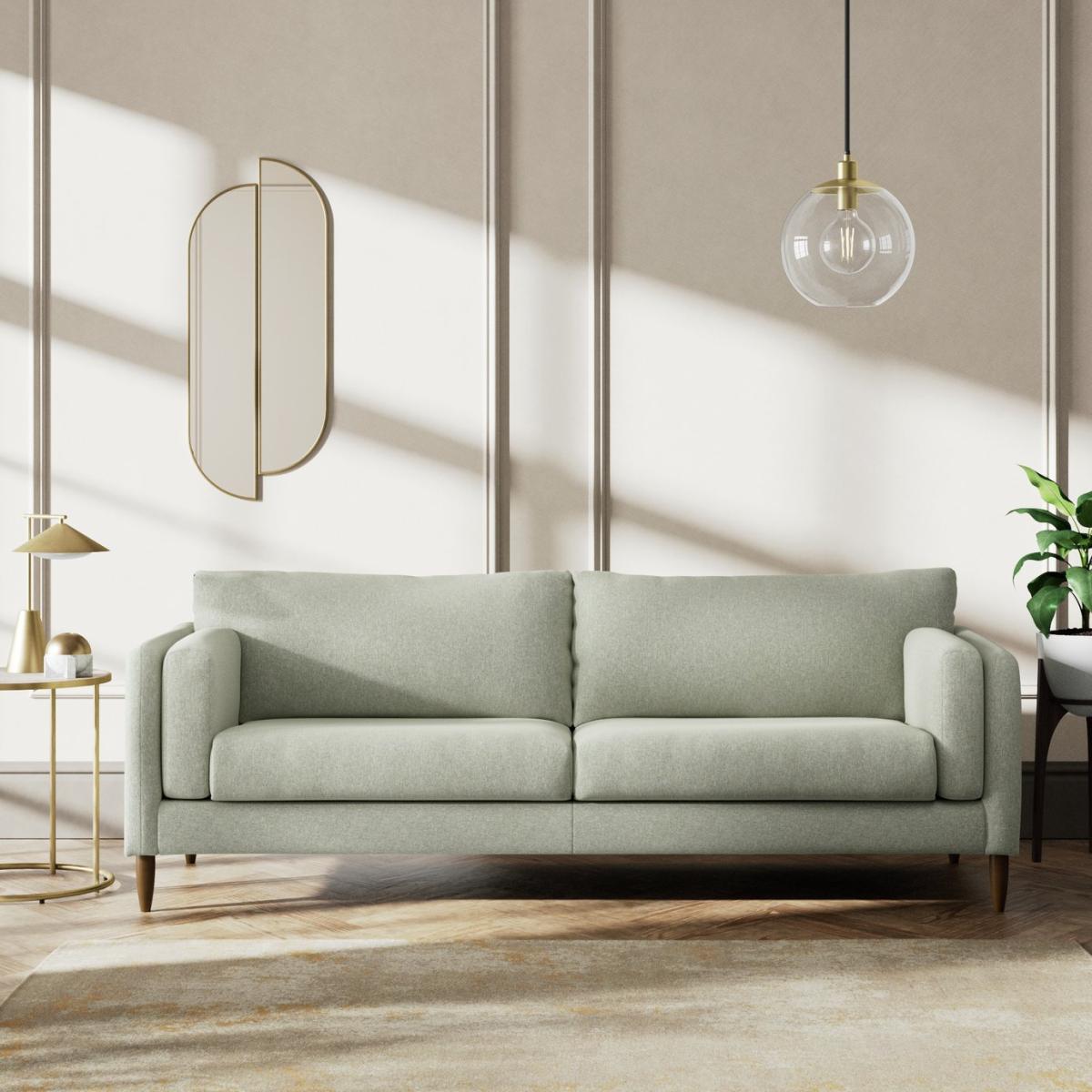 When it's made for you, you know you'll love it. The Newington is a contemporary 4-seater sofa with excellent credentials. It combines a modern linear design with plenty of cushioned comfort. There's even a smart pair of slim side bolsters to nestle against. Upholstered in a contemporary Flat Weave, the Newington has a smooth but tonal look. While wooden turned legs add the finishing touch. Offering relaxed comfort, the Newington's reversible seat cushions use high density foam core wrapped in soft fibre wadding to create the perfect balance of support, durability and recovery. Hand made to order in the UK, the Newington uses quality materials and traditional techniques for furniture that's unique to you. Available in a choice of sizes and fabrics including Aquaclean technology protection built into the yarn, which is easy to clean with just water. Part of the Newington collection. Material: Made from 100% polyester. Wooden feet - dark wood. Removable seats with foam fibre wrap filling. Removable cushion(s) with foam fibre wrap filling. Free fabric swatch available on this line. Dimensions: Size H82, W216, D88cm. Floor to seat height: 47cm. Depth of seat: 55cm. Height of seat back: 40cm. Width of seating area between arms: 174cm. Height of arm rest: 68cm. Weight: 52kg. Packaged dimensions: Package size H57, W221, D93cm. General information: We do more than deliver your product, we unpack, set it up and take away the packaging. Manufactured in the UK using components sourced globally. Professional clean only. Plump cushions regularly to maintain shape. Manufacturer's 15 year frame guarantee.