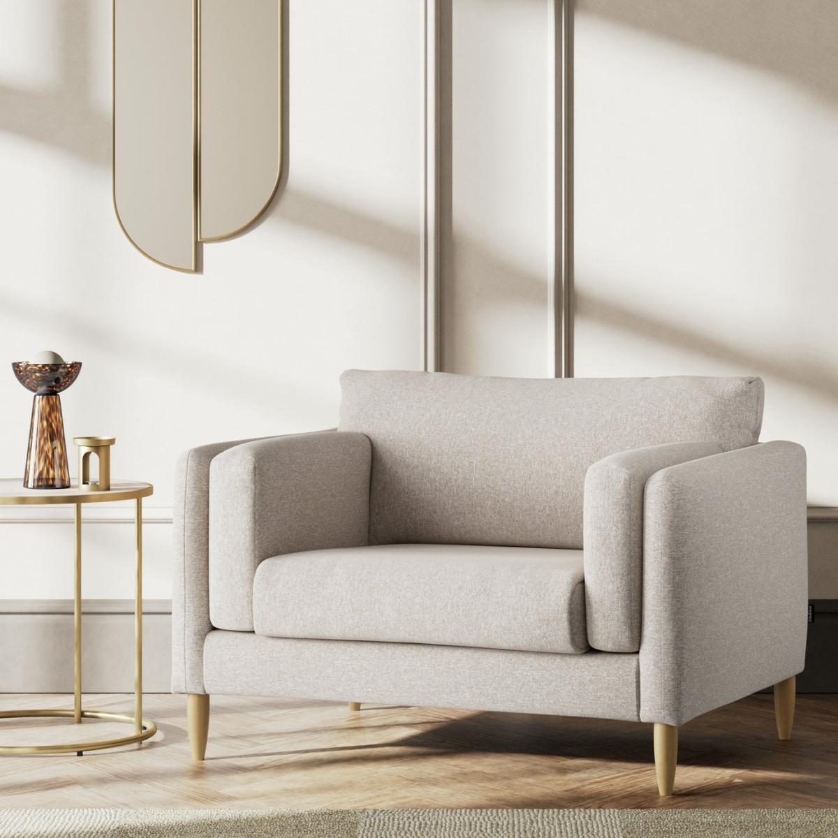 When it's made for you, you know you'll love it. The Newington is a contemporary sofa with excellent credentials. It combines a modern linear design with plenty of cushioned comfort. There's even a smart pair of slim side bolsters to nestle against. Upholstered in a contemporary Flat Weave, the Newington has a smooth but tonal look. While wooden turned legs add the finishing touch. Offering relaxed comfort, the Newington's reversible seat cushions use high density foam core wrapped in soft fibre wadding to create the perfect balance of support, durability and recovery. Handmade to order in the UK. The Newington uses quality materials and traditional techniques for furniture that's unique to you. Available in a choice of sizes and fabrics including Aquaclean technology protection built into the yarn, which is easy to clean with just water. Part of the Newington collection. Material: Made from 100% polyester. Wooden feet. Removable seat with foam fibre wrap filling. Removable cushion(s) with foam fibre wrap filling. Dimensions: Size H82, W111, D88cm. Floor to seat height: 47cm. Depth of seat: 55cm. Height of seat back: 40cm. Width of seating area between arms: 71cm. Height of ARM rest: 68cm. Weight: 32kg. Packaged dimensions: Package size H57, W116, D93cm. General information: We do more than deliver your product, we unpack, set it up and take away the packaging. Manufactured in the UK using components sourced globally. Professional clean only. Plump cushions regularly to maintain shape. Manufacturer's 15 year frame guarantee.