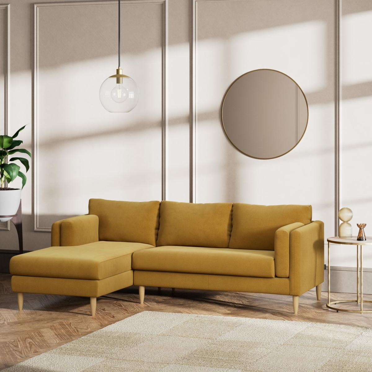 When it's made for you, you know you'll love it. The Newington is a contemporary chaise sofa with excellent credentials. It combines a modern linear design with plenty of cushioned comfort. There's even a smart pair of slim side bolsters to nestle against. Upholstered in a velvety sheen chenille, the Newington takes on a rich, soft, textured look. While wooden turned legs add the finishing touch. Offering relaxed comfort, the Newington's reversible seat cushions use high density foam core wrapped in soft fibre wadding to create the perfect balance of support, durability and recovery. Hand made to order in the UK, the Newington uses quality materials and traditional techniques for furniture that's unique to you. Available in a choice of sizes and fabrics including Aquaclean technology protection built into the yarn, which is easy to clean with just water. Part of the Newington collection. Left hand corner. Material: Made from 100% polyester. Wooden feet. Removable seats with foam fibre wrap filling. Removable cushion(s) with foam fibre wrap filling. Free fabric swatch available on this line. Dimensions: Size H82, longer width 227,. Floor to seat height: 47cm. Depth of seat: 55cm. Height of seat back: 40cm. Longer seating area width between arms: 183cm. Height of arm rest: 68cm. Weight: 66kg. Packaged dimensions: Package size H57, W149, D93cm. Second package size H57, W88, D160cm. General information: FSC certified meaning the materials used for this product are responsibly sourced. We do more than deliver your product, we unpack, set it up and take away the packaging. Manufactured in the UK using components sourced globally. Professional clean only. Plump cushions regularly to maintain shape. Manufacturer's 15 year frame guarantee.