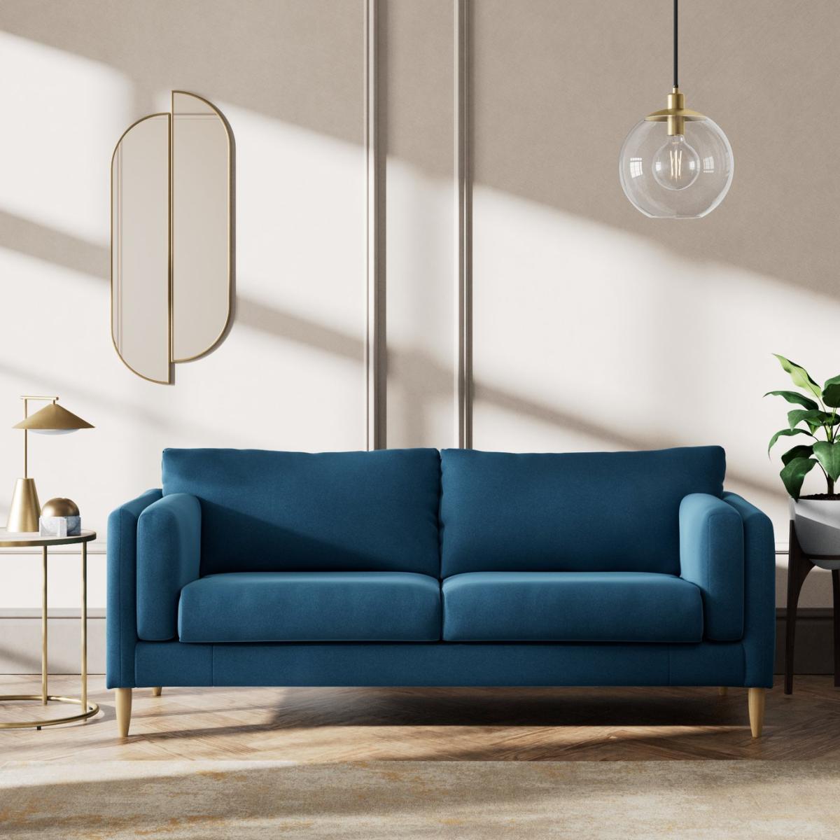 When it's made for you, you know you'll love it. The Newington is a contemporary 3-seater sofa with excellent credentials. It combines a modern linear design with plenty of cushioned comfort. There's even a smart pair of slim side bolsters to nestle against. Upholstered in rich velvet, The Newington has a luxe look. While wooden turned legs add the finishing touch. Offering relaxed comfort, the Newington's reversible seat cushions use high density foam core wrapped in soft fibre wadding to create the perfect balance of support, durability and recovery. Hand made to order in the UK, the Newington uses quality materials and traditional techniques for furniture that's unique to you. Available in a choice of sizes and fabrics including Aquaclean technology protection built into the yarn, which is easy to clean with just water. Part of the Newington collection. Material: Made from 100% recycled polyester. Wooden feet - ash. Removable seats with foam fibre wrap filling. Removable cushion(s) with foam fibre wrap filling. Free fabric swatch available on this line. Dimensions: Size H82, W195, D88cm. Floor to seat height: 47cm. Depth of seat: 55cm. Height of seat back: 40cm. Width of seating area between arms: 154cm. Height of arm rest: 68cm. Weight: 48kg. Packaged dimensions: Package size H57, W200, D93cm. General information: FSC certified meaning the materials used for this product are responsibly sourced. We do more than deliver your product, we unpack, set it up and take away the packaging. Manufactured in the UK using components sourced globally. Professional clean only. Plump cushions regularly to maintain shape. Manufacturer's 15 year frame guarantee.