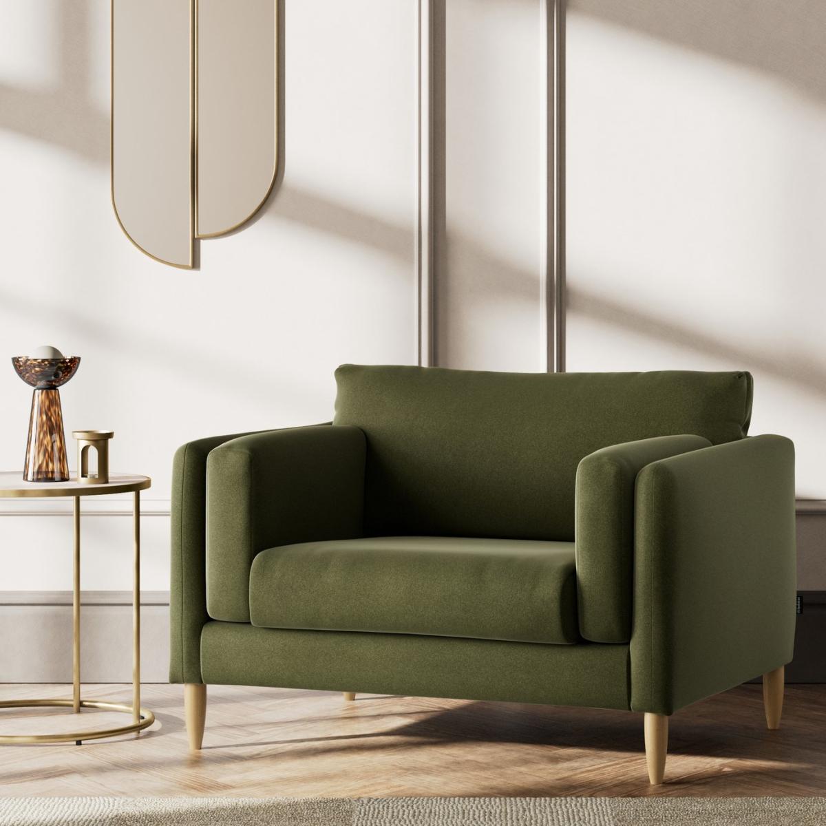 When it's made for you, you know you'll love it. The Newington is a contemporary sofa with excellent credentials. It combines a modern linear design with plenty of cushioned comfort. There's even a smart pair of slim side bolsters to nestle against. Upholstered in rich velvet, The Newington has a luxe look. While wooden turned legs add the finishing touch. Part of the Newington collection. Material: Made from 100% recycled polyester. Wooden feet. Removable seat with foam fibre wrap filling. Removable cushion(s) with foam fibre wrap filling. Free fabric swatch available on this line. Dimensions: Size H82, W111, D88cm. Floor to seat height: 47cm. Depth of seat: 55cm. Height of seat back: 40cm. Width of seating area between arms: 71cm. Height of arm rest: 68cm. Weight: 32kg. Packaged dimensions: Package size H57, W116, D93cm. General information: FSC certified meaning the materials used for this product are responsibly sourced. We do more than deliver your product, we unpack, set it up and take away the packaging. Manufactured in the UK using components sourced globally. Professional clean only. Plump cushions regularly to maintain shape. Manufacturer's 15 year frame guarantee.