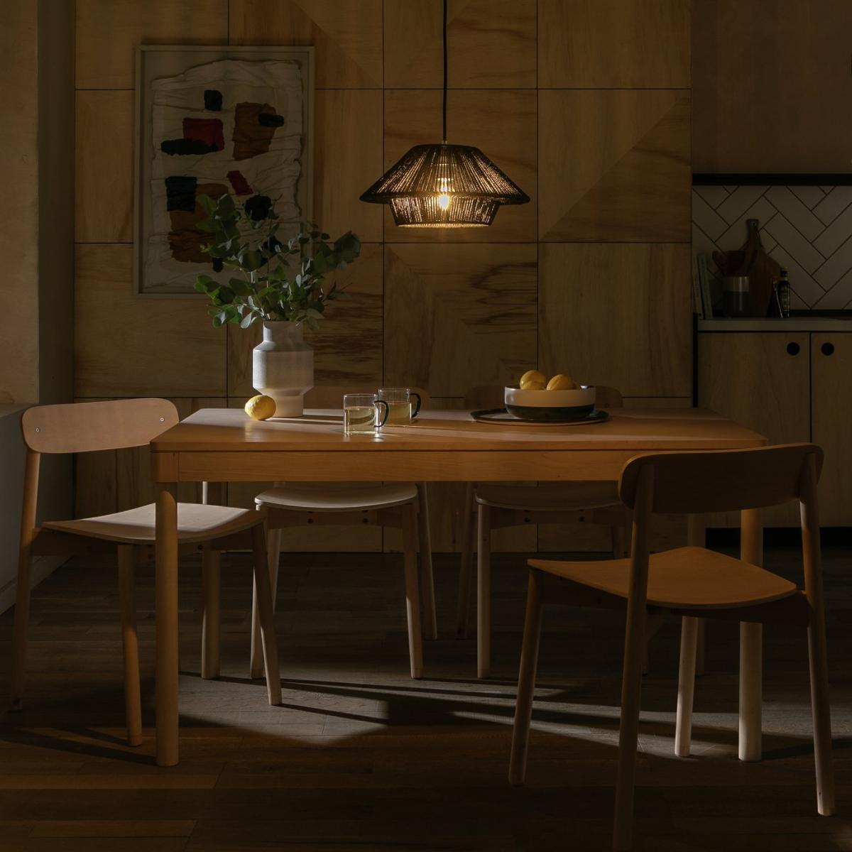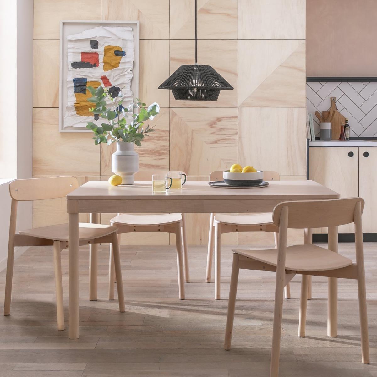 Welcome the return of natural blonde furniture. Our fixed 6-seater table has been made in beautiful, scandi-esque, solid birch wood. Once a mid-century favourite. And now loved by us. With crafted, rounded corners and rolled legs, its curves are in all the right places. Smart enough to entertain and durable enough for family dining with no sharp edges. Go nordic style with Nina. Part of the Nina collection. Table: Table size: H74, L120, W80cm. Internal size between table legs L108, W68cm. Real wood veneer table with real wood veneer legs. Wood veneer table top finish. Self-assembly - 2 people recommended. Weight of table 21.55kg. Package Dimensions: Table packaging size: H14.5, W128, D88cm. General information: We are excited to be welcoming some of our favourite HOME products into the Habitat range. Your product may arrive in Habitat or HOME packaging. Manufacturer's 1 year guarantee. FSC certified meaning the materials used for this product are responsibly sourced.