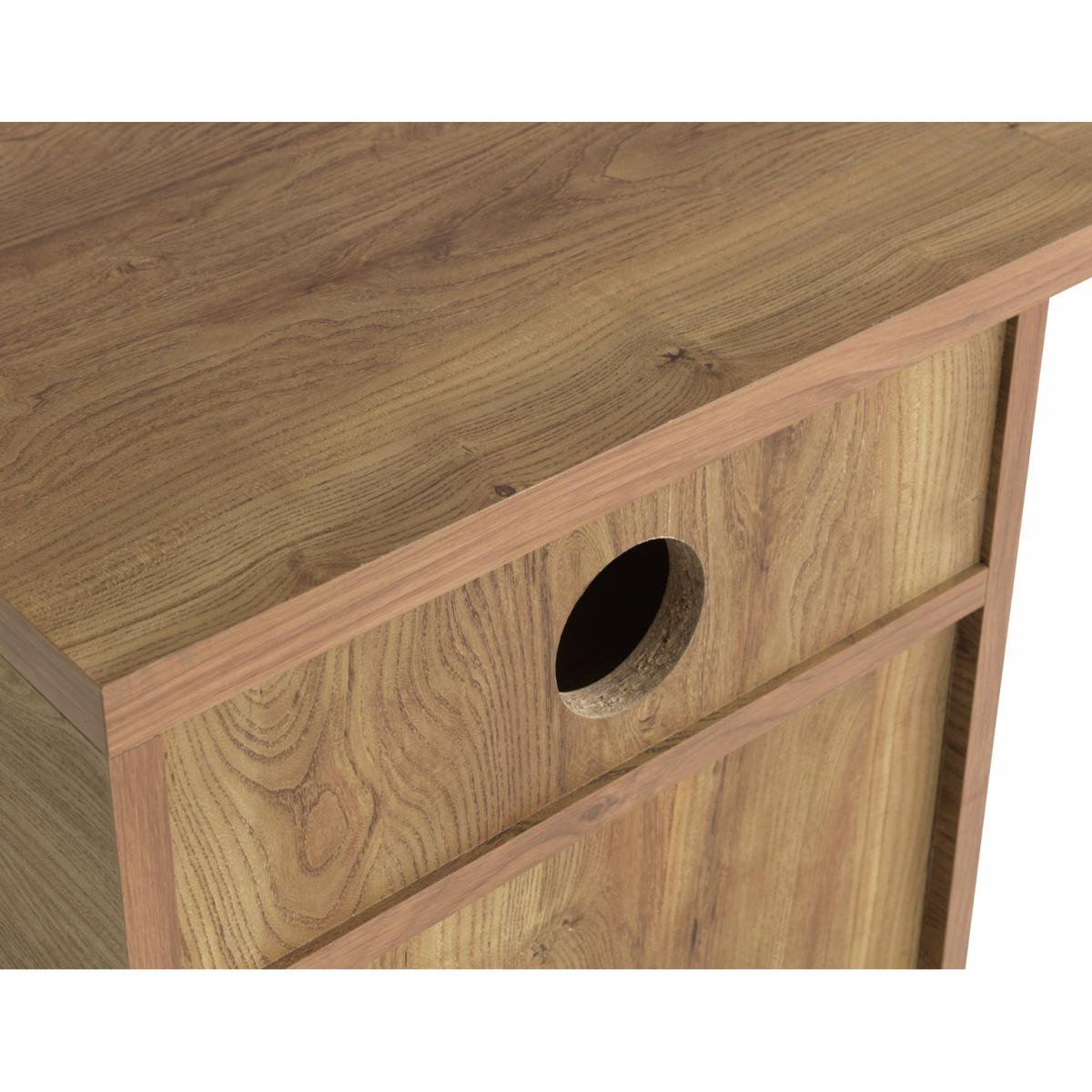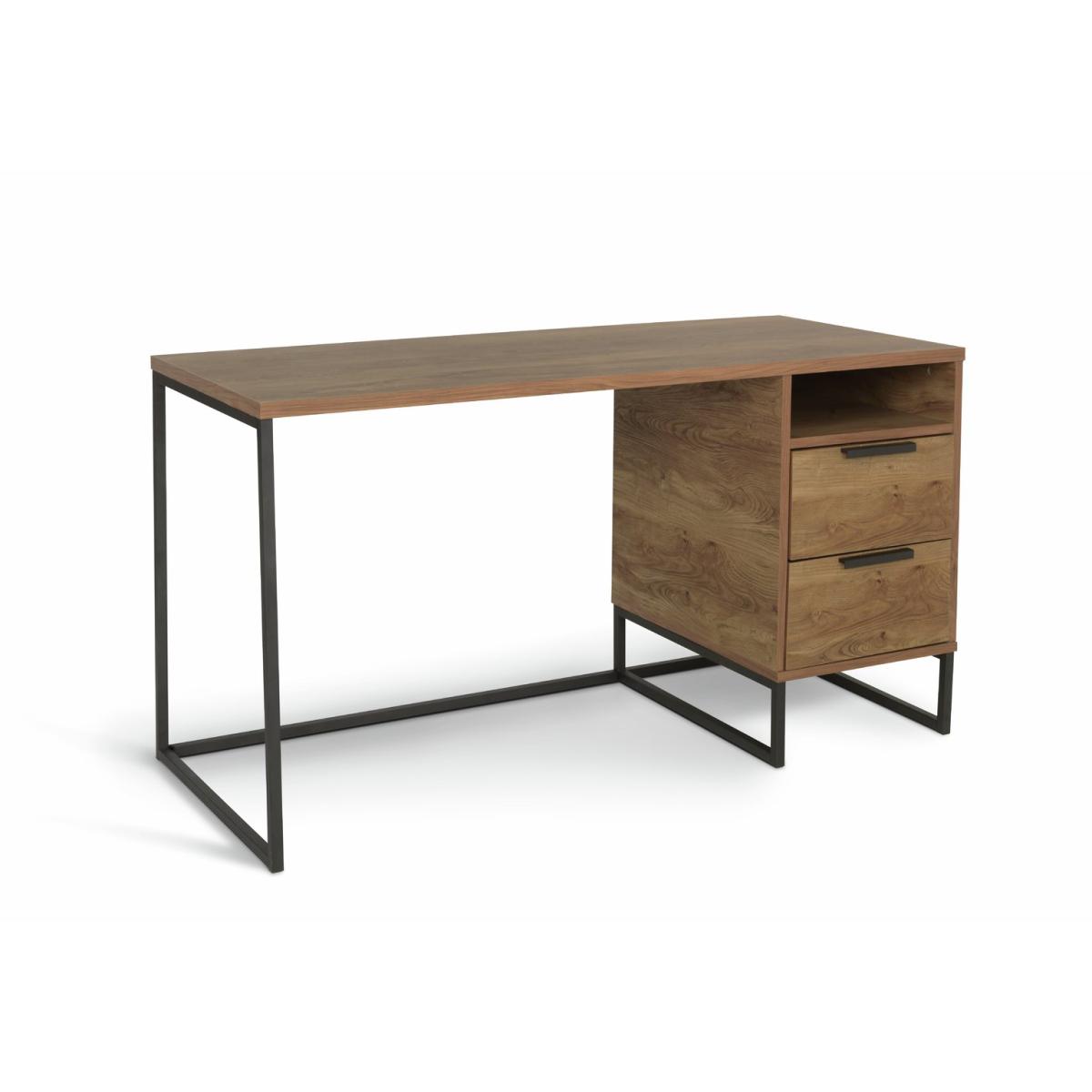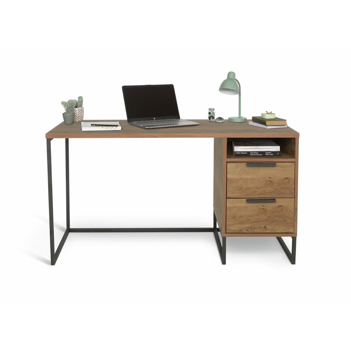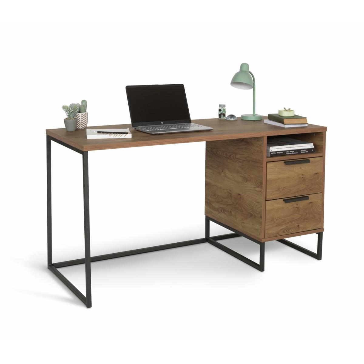 Looking for a desk that packs a punch? The industrial-inspired Nomad makes a real style statement. Crafted in an oak-effect finish with dark metal accents, it's an eye-catching addition to any bedroom or home office. With ample storage, 2 handy drawers open on smooth metal runners and a practical shelf provides room for books, papers, stationery and more. An unrivalled spot to let your creative side flourish, add some contemporary flair to your space with Nomad. The top surface offers the perfect spot for your laptop and maybe some treasured keepsakes. Say goodbye to clutter with the two drawers and shelf - perfect for tucking away your office bits and bobs. Promising oh-so-cool loft apartment vibes, get your living space in order with the Nomad. Part of the Nomad collection. Made from particleboard with a wood effect finish with Metal handles. 2 drawers with metal runners. 1 fixed shelf. Easy cable access. Packed flat - 2 people recommended. Wall fixing recommended. If this product is over 60cm high it must be securely attached to the wall to prevent overturning. General information: Manufacturer's 1 year guarantee. Dimensions: Size H75, W140, D59.6cm. Under desk chair space H72.2, W95.8cm. Maximum load capacity of desk 30kg. Weight 43kg. Packaged dimensions: Package dimensions H13.7, W84.3, D62.6cm. Second package H5.6, W154.2, D65cm.