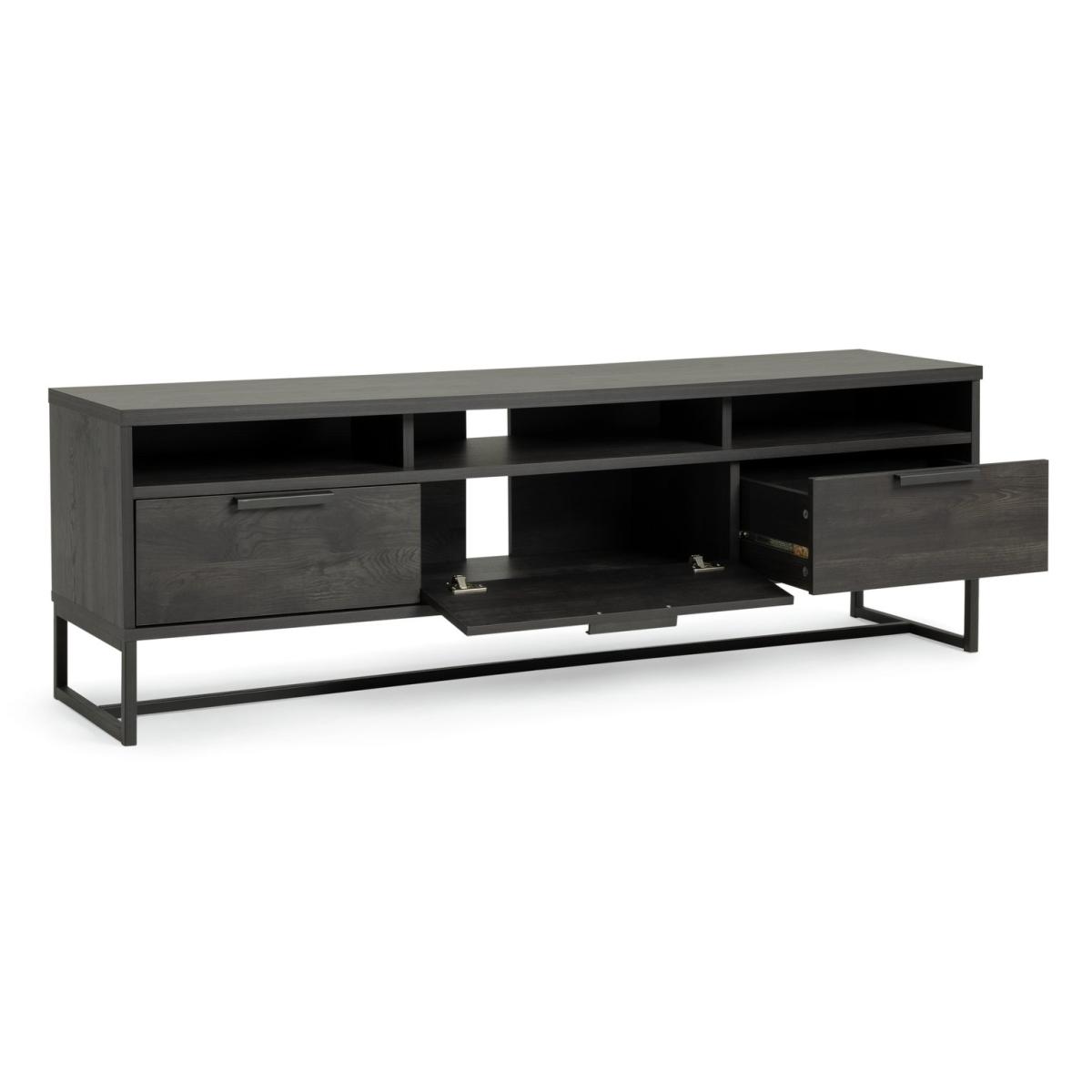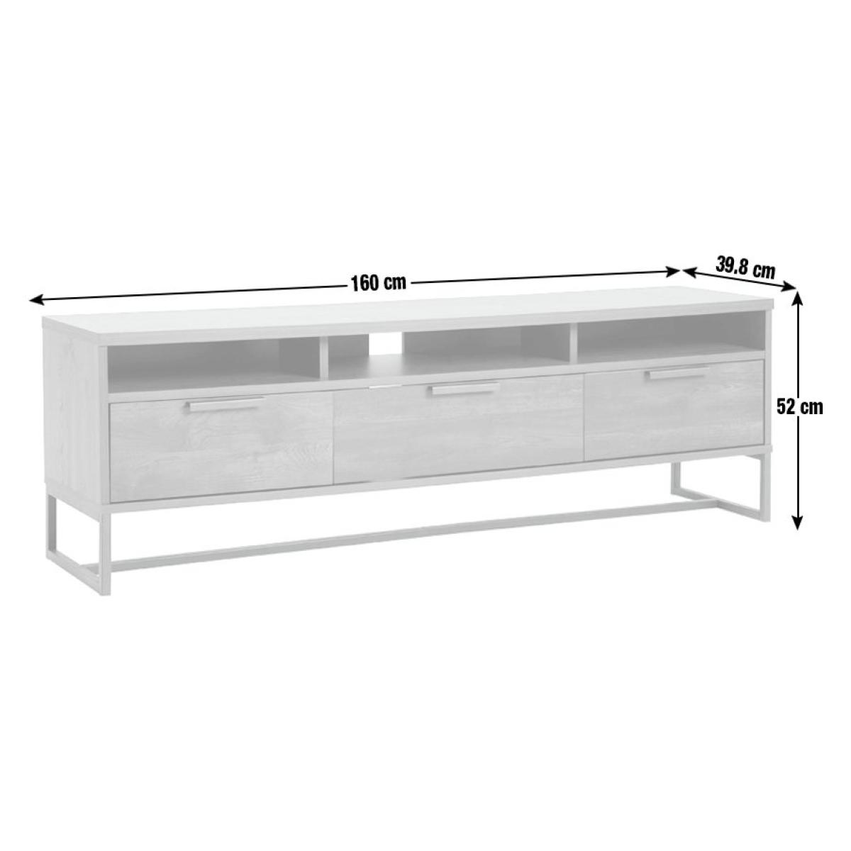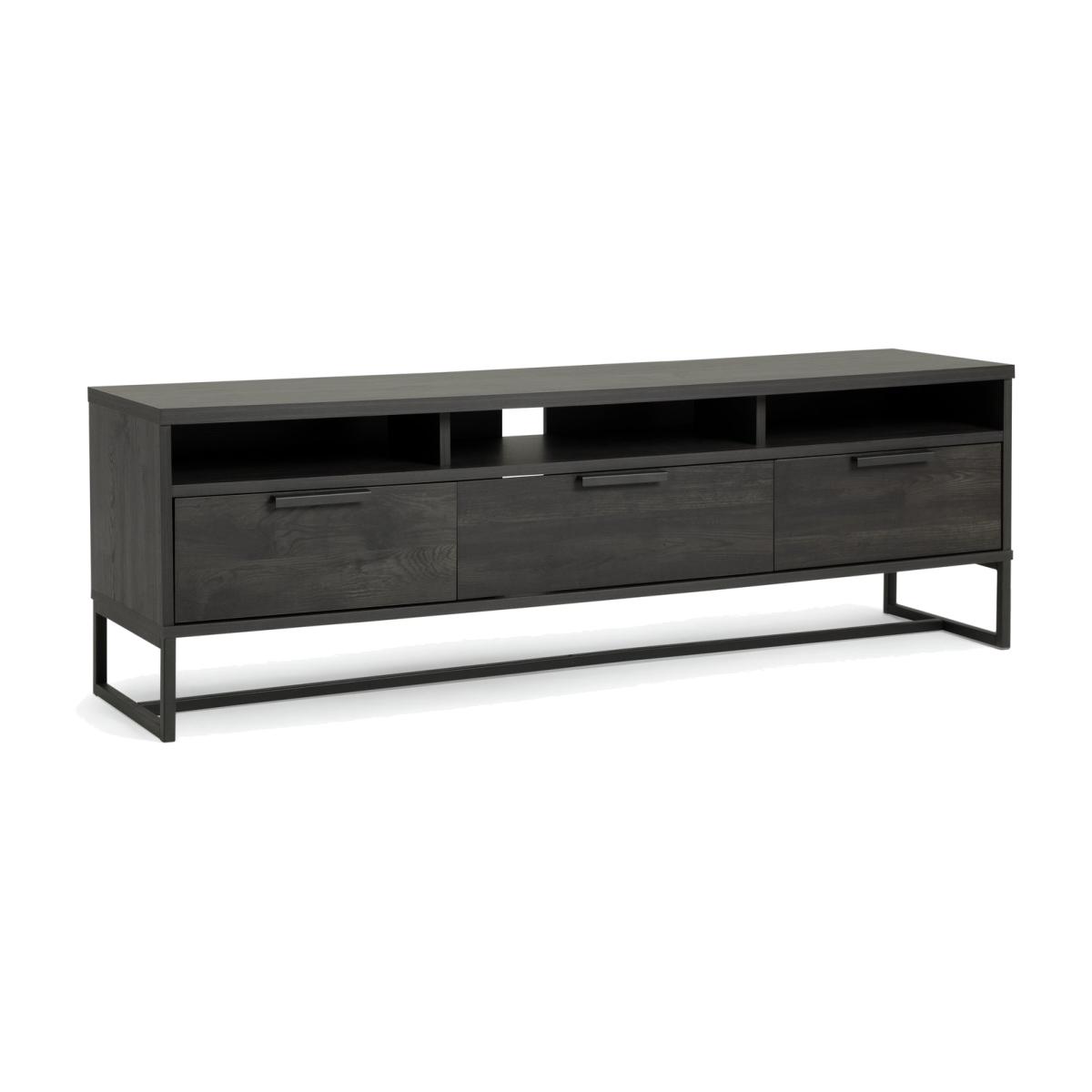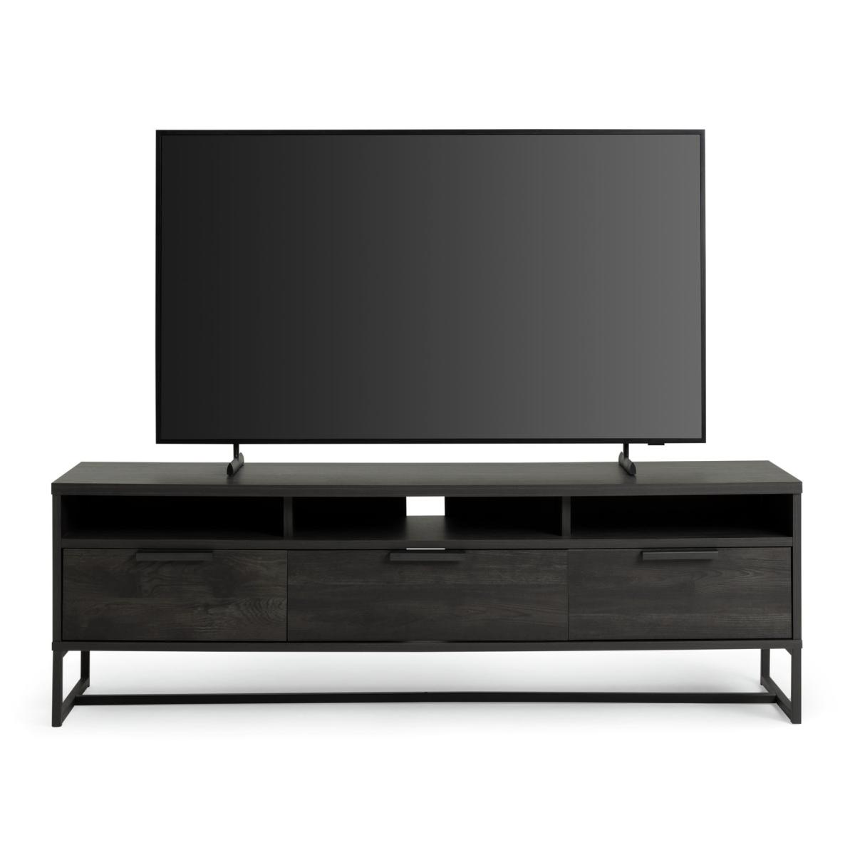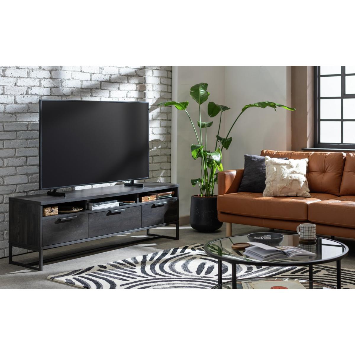 Now showing on the big screen, a stark industrial style TV and storage unit. Slim, black metal legs and handles, plus a dark oak effect finish gives this TV stand a modern, minimalist edge. Wide enough to take a 65 screen. And with 3 shelves, 2 smooth opening drawers and a pull-down cupboard, there's loads of space for your entertainment gear. Plug in, chill out. Love the Nomad industrial style? Then wander around our other Nomad furniture and see what catches your eye. Part of the Nomad collection. Made from MDF with a wood effect finish. Size H 52, W 160, D 39.8cm. Weight 50kg. 3 drawers with metal runners. 3 shelves. Black handles. 3 media storage sections. Largest height of media equipment sections 9.4cm. Easy cable access. Suitable for screen sizes up to 65in. Maximum weight of TV 40kg. Self-assembly - 2 people recommended. Package Dimensions: Package 1 dimensions: H16.2, W170.8, D41.8cm. Package 1 weight: 53kg. General information: We are excited to be welcoming some of our favourite HOME products into the Habitat range. Your product may arrive in Habitat or HOME packaging. FSC certified meaning the materials used for this product are responsibly sourced.