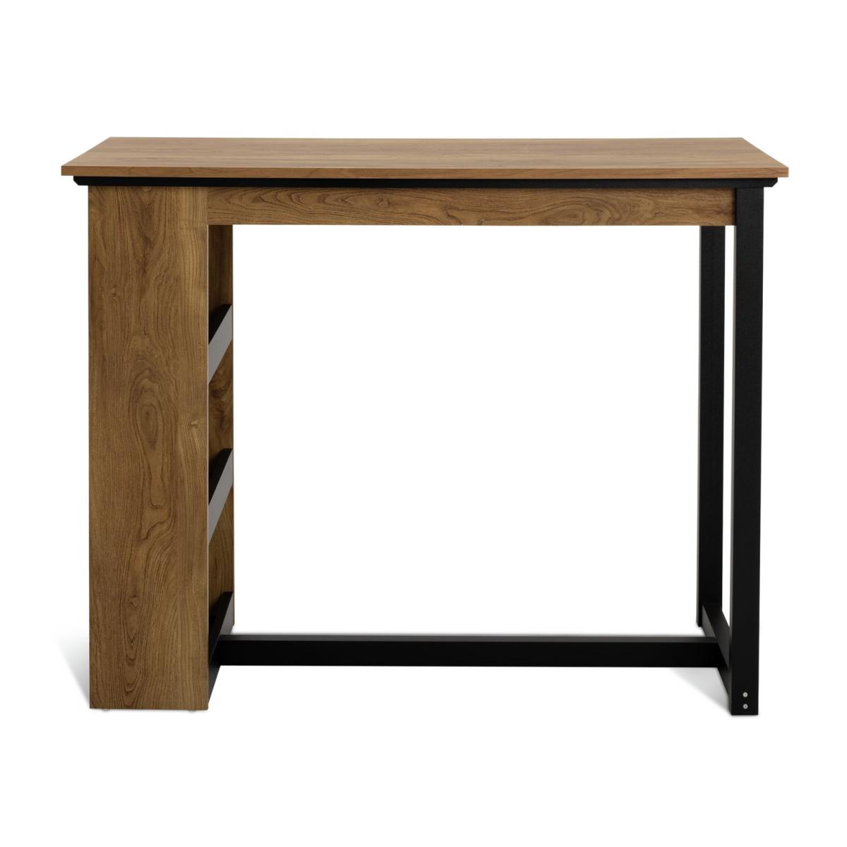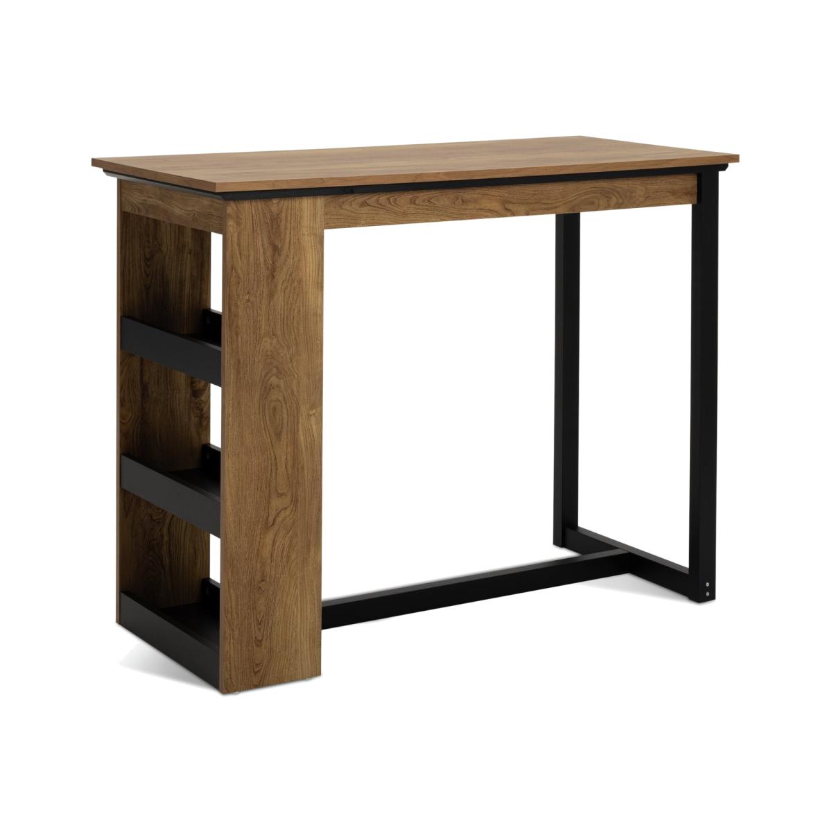 Bring an injection of Industrial chic to your space. This versatile bar table is all oak grain and stark black metal. A winning combo. With its practical oak effect and 3 black storage shelves it'll make a striking kitchen island too. Tuck a couple of bar stools either side and you're all set. Need the perfect perch? We have some fab bar stools lined up and ready to party. Part of the Nomad collection. Table: Table size: H100, L130, W59.6cm. Internal size between table legs L95, W48cm. Oak table with metal legs. Oak table top finish. Self-assembly - 2 people recommended. Weight of table 39.3kg. Package Dimensions: Table packaging size: H10.3, W139.8, D65.1cm. General information: We are excited to be welcoming some of our favourite HOME products into the Habitat range. Your product may arrive in Habitat or HOME packaging. Manufacturer's 1 year guarantee. FSC certified meaning the materials used for this product are responsibly sourced.