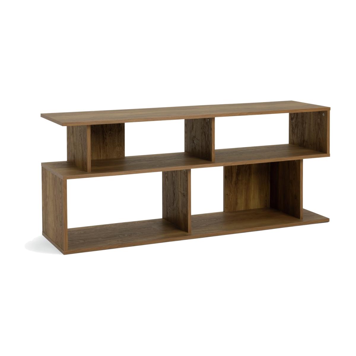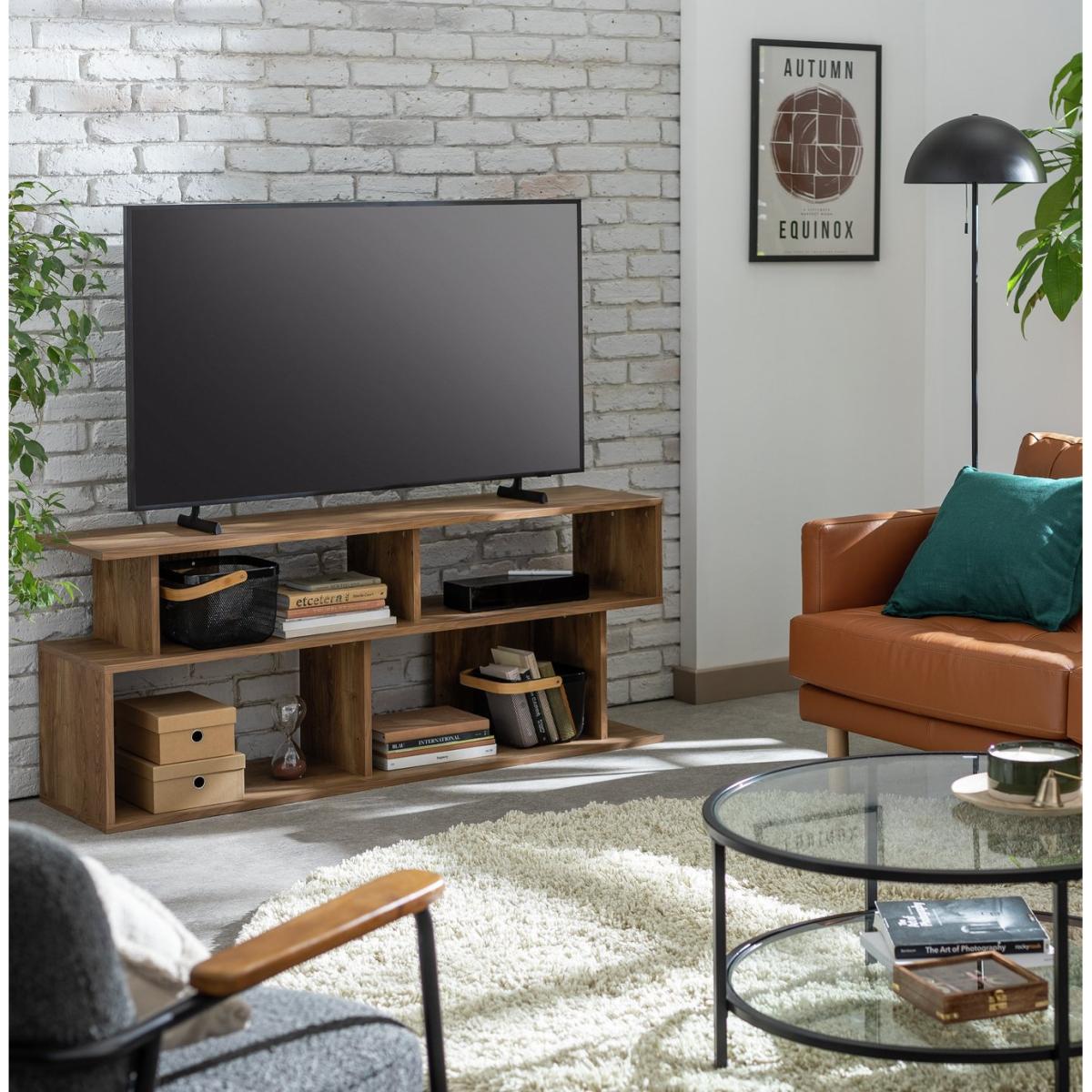 Picture this. A TV stand, an entertainment centre, or simply a swishy piece of furniture. Our perfectly proportioned TV unit is here to please. Wide enough to take a 65screen. Room to add a DVD player, games console and dress with a few books. In a contemporary wood effect veneer, this clever console does multi-purpose brilliantly. Like the open plan look, then simply repurpose it as a modern sideboard. Why not? Part of the Nomad Block collection. Made from MDF with a wood effect finish. Size H 63, W 150, D 39.6cm. Weight 33.5kg. 4 shelves. 2 media storage sections. Largest height of media equipment sections 23.6cm. Easy cable access. Suitable for screen sizes up to 65in. Maximum weight of TV 40kg. Self-assembly - 2 people recommended. Package Dimensions: Package 1 dimensions: H10.5, W157.8, D44cm. Package 1 weight: 35kg. General information: We are excited to be welcoming some of our favourite HOME products into the Habitat range. Your product may arrive in Habitat or HOME packaging.
