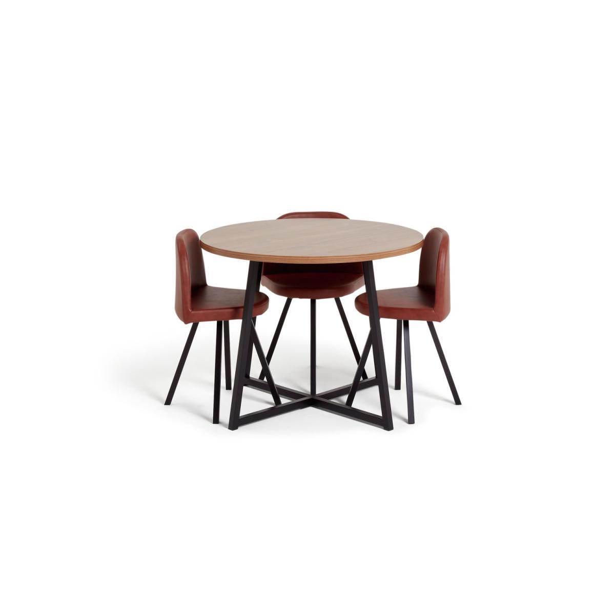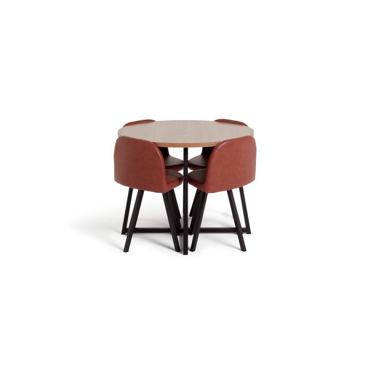Dish up a compact dose of industrial chic. The Habitat Nomad space-saving dining set is both strong and stylish. It combines a rustic oak-effect table top with striking black textured metal legs in a modern cross-based design. The cunning little chairs tuck away effortlessly when you don't need to use them, following the contours of the table. The faux leather chairs not only look great, they're easy to wipe clean too.