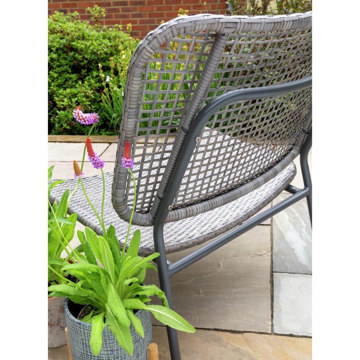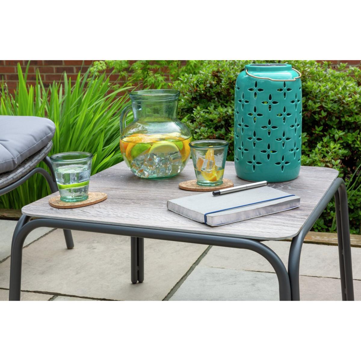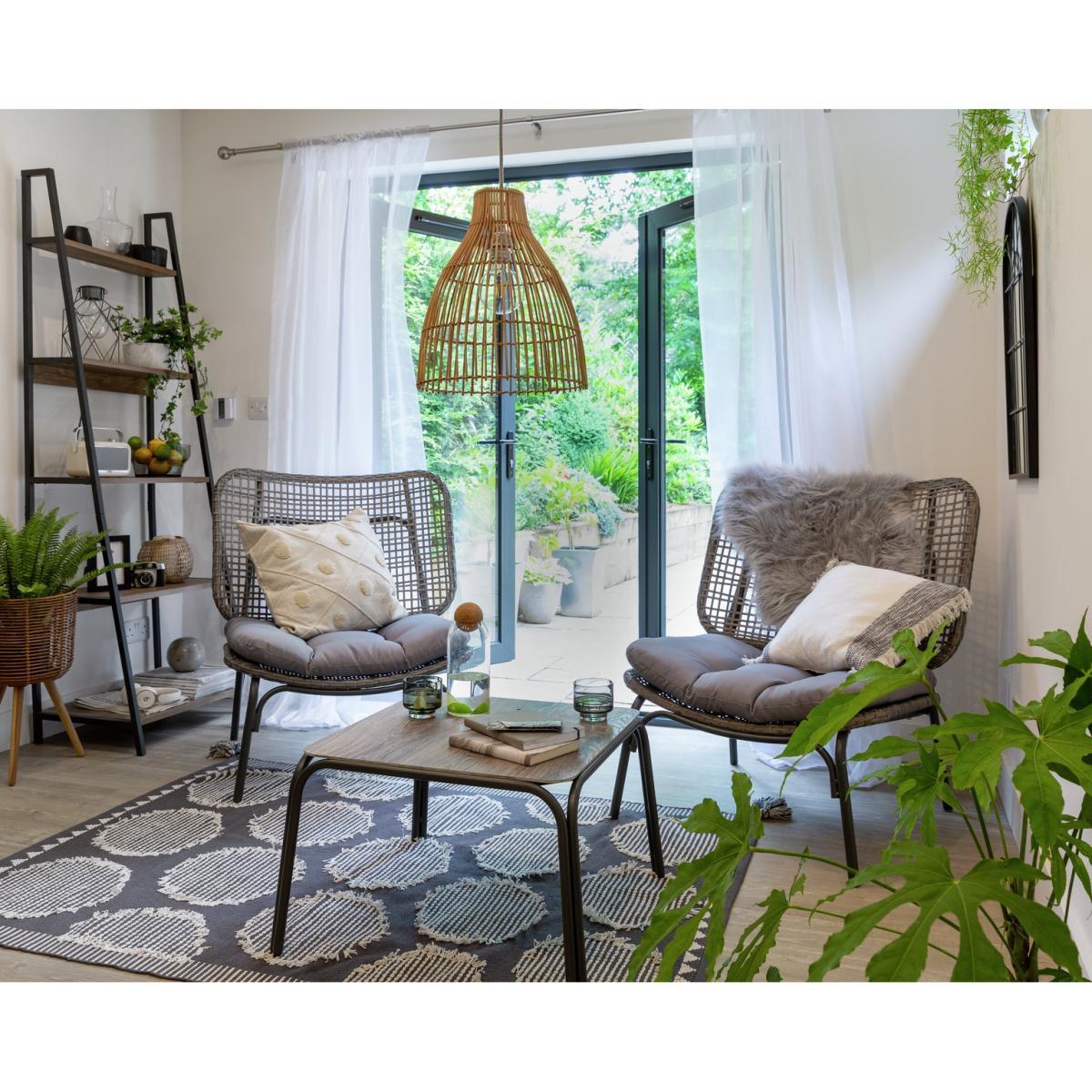 Kick back and relax with Nora. Our patio perfect garden bistro set has you set for summer. Pop drinks and nibbles on the top wood effect table. Sink into the 2 rattan carver chairs and enjoy the sun with a friend. Cool and contemporary, this stylish furniture trio brings a modern touch to your outside space. Invite someone over, catch up and unwind. Nora does the rest.