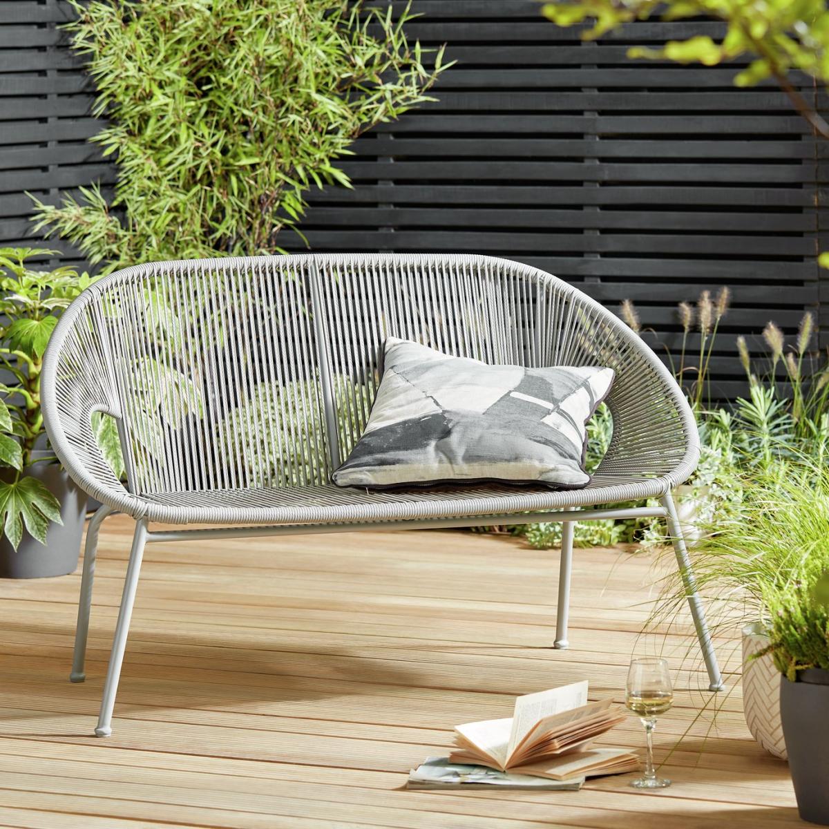 The great thing about Scandinavian styling is that it works in every room in the house – even the garden. This stunning Nordic Spring 2-seater bench offers the perfect spot for peace and quiet. The smart grey tone and cord finish will add modern charm to your garden. This garden furniture collection's stand-out good looks and exotic flavour will make it the centrepiece of your garden.