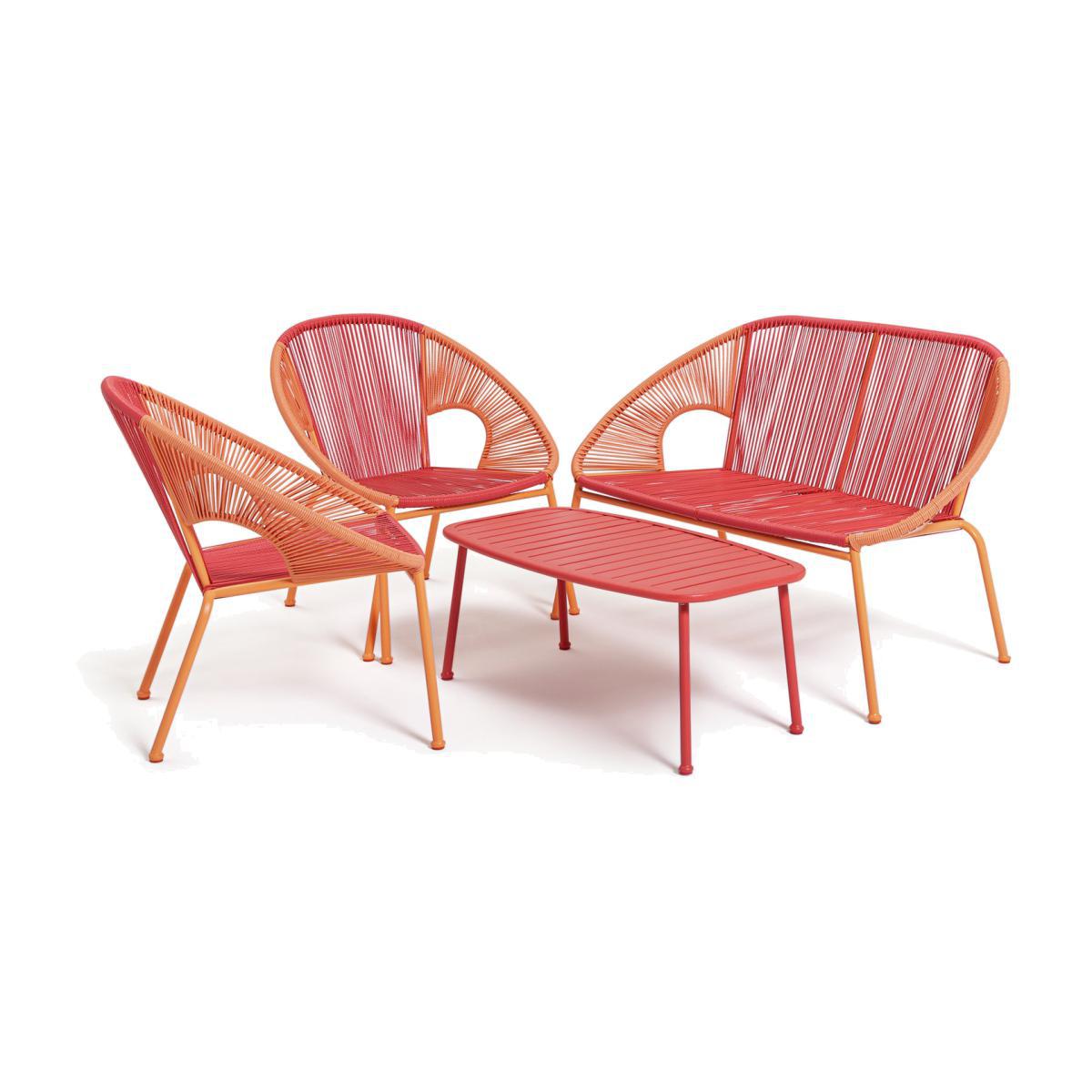 Weave a little Scandi magic into your Spring. This classic Nordic Lounge Set sits perfectly on patios. Kick back in the bold and bright handwoven rattan seats. So comfortable and a welcome splash of colour in your garden. Seating arrangements are two singles and a 2-seater bench. Rest glasses and nibbles on the steel coffee table. The sturdy steel frame and woven seat can stand up to any weather. Prefer the set to hibernate for winter? Simply fold away the table and stack the chairs, so easy. Drinks in the garden anyone? For something a little more exotic looking, look no further than the Nordic Spring Lounge Set. This classic looking chair has been built into a 4 seater lounge set for all to enjoy. Its classic design is combined with a strong steel frame and surrounded with a durable handwoven weave which provides comfort and support. Add the 'wow' factor to garden gatherings with a matching Nordic Spring Drinks Trolley. Load it up in the kitchen with delicious canapes and drinks. Wheel it out to your guests in the garden. Cheers!Garden table features:Steel table top. Steel garden table. Table size: H36, W50, L92.5cm. Removable legs for storage. Table folds down for easy storage. Garden chair features:Set seats 4 people. Seat height 38cm. Frame made from rattan. Chair seat and back made from rattan. Stackable chairs. Stackable chairs. Size H79, W74.5, D68cm. 110kg maximum user weight per chair. Sofa size H79, W125.5. D68cm. 220kg maximum user weight per sofa. General features:Suitable for garden use. Can be left outside all year; protect with a cover when not in use. Total weight 21.36kg. Packaging information:Package 1 size H85, W75, D75cm. Package 1 weight 9.84kg. Package 2 size H79, W126, D68cm. Package 2 weight 7.76kg. Package 3 size H8, W98, D58cm. Package 3 weight 7.65kg. General Information: Self-assembly - 2 people required. Manufacturer's 1 year guarantee.