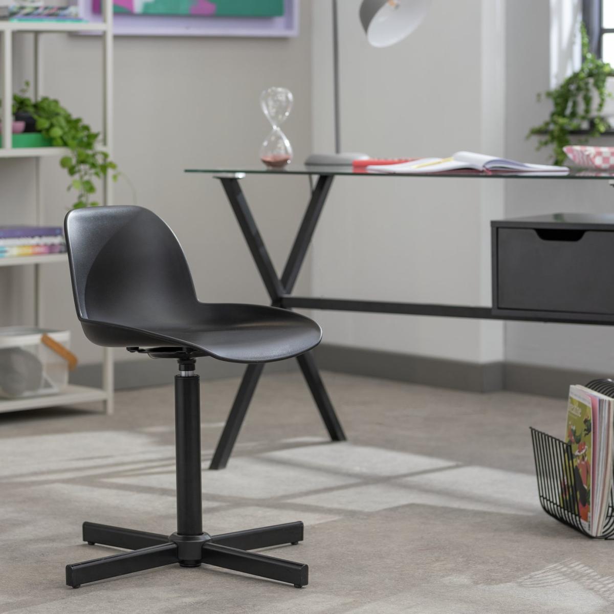 Swing round in your seat. Our Nova 360-degree swivel chair is designed for flexibility. Turn with ease to your desktop, to greet a guest, or to pull out a filing cabinet drawer. With a streamlined profile, curved backrest and a shaped seat, Nova is made to suit workday needs. Part of the Nova collection. Plastic frame with plastic seatpad and plastic backrest. Swivel. Packed flat. Dimensions: Overall maximum chair size H73, W45, D56cm. Seat height adjustable from 46 to 46cm. Seat height 46cm. Seat size W45, D37cm. Maximum user weight tested for 110kg. Weight 5kg. Packaged dimensions: Package size H53.2, W22.5, D48cm. General information: We are excited to be welcoming some of our favourite HOME products into the Habitat range. Your product may arrive in Habitat or HOME packaging. Manufacturer's 1 year guarantee.
