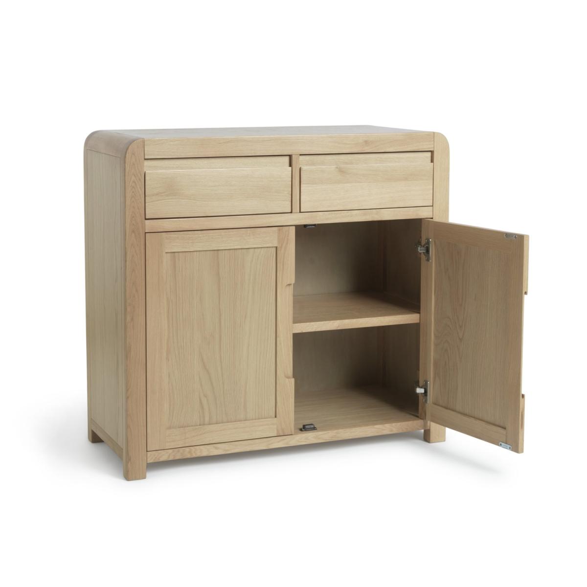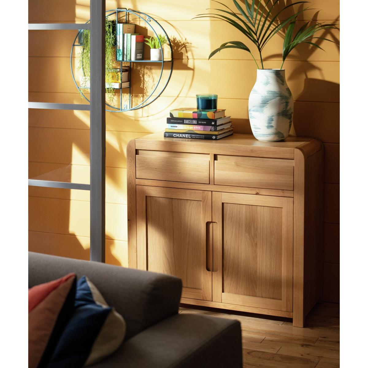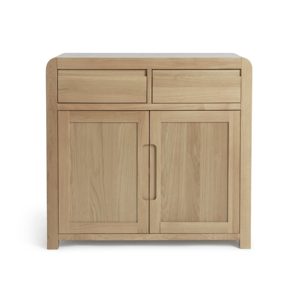 Give your lounge a modern makeover. The Habitat Novara sideboard is crafted from solid oak and oak veneer. This quality sideboard features smooth, curved edges and cut-out handles for a sleek, streamlined finish. Perfect for keeping clutter at bay, it has 2 drawers and an adjustable shelf inside the cupboard.