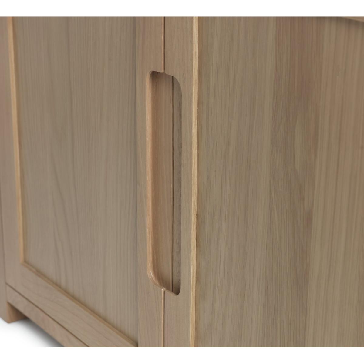 I love this sideboard for its clean, natural oak veneer finish that adds warmth and texture to any space. It works particularly well in Scandi-inspired interiors or modern rustic settings, where its simple lines and neutral tone can be the backdrop for colourful accents or metallic finishes. Practical styling tips include using it to display curated tableware or decorative trays on top, while the drawers are perfect for organising small essentials. Pair it with textured ceramics, soft textiles, or greenery to create a balanced, inviting look. Its versatile design makes it suitable for living rooms, dining areas, or even a well-edited hallway.