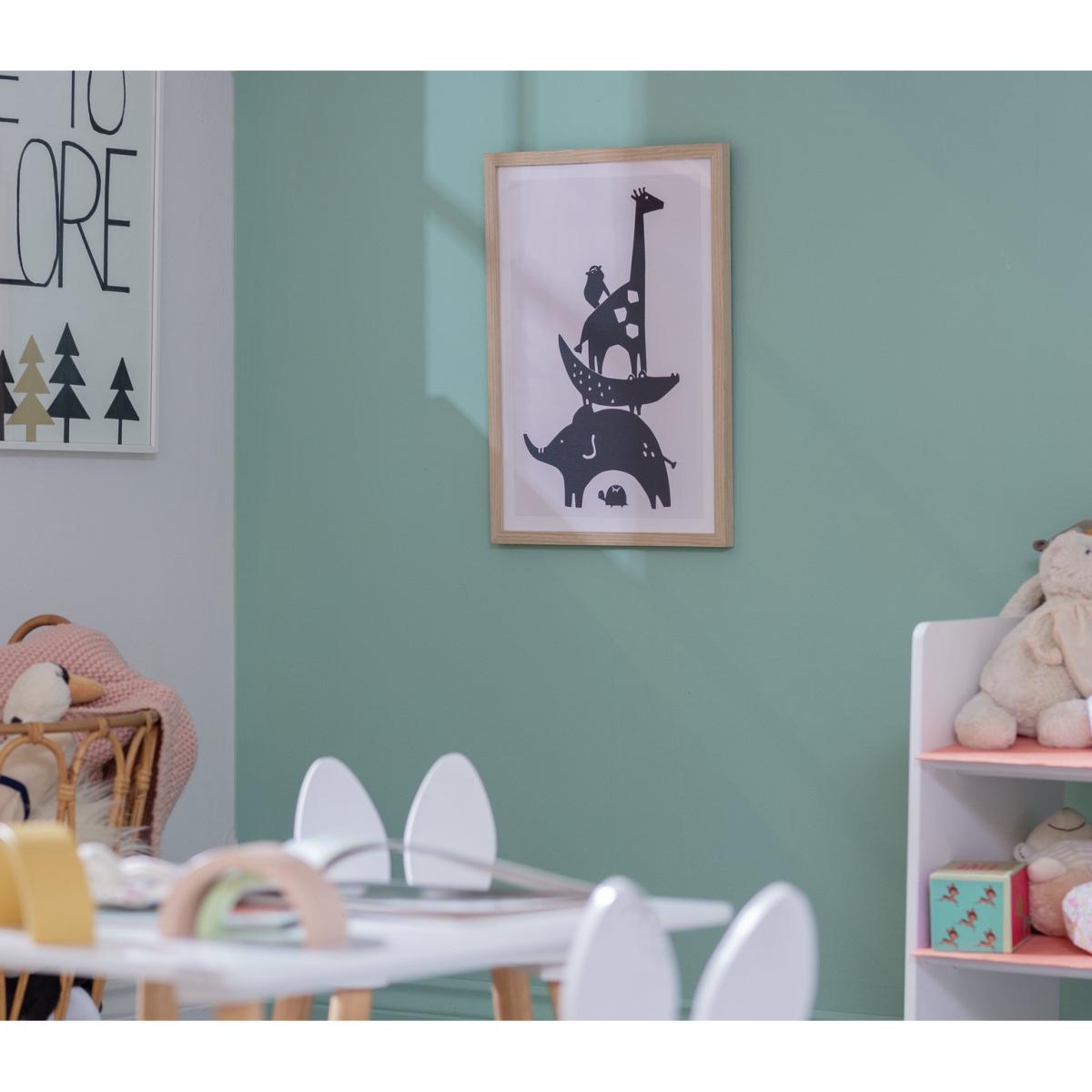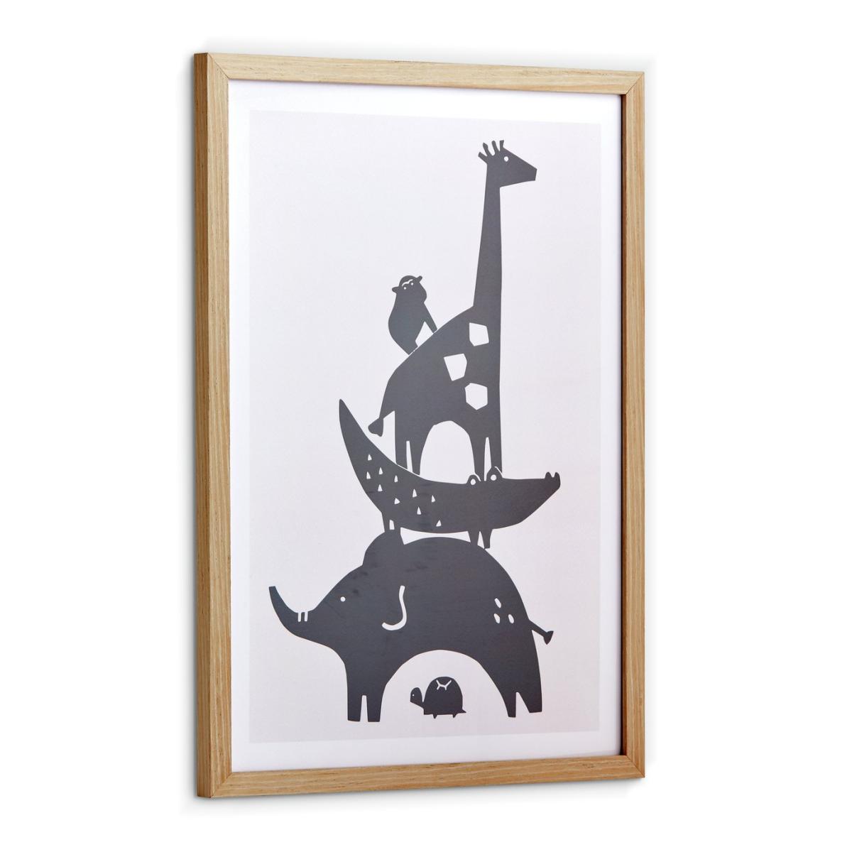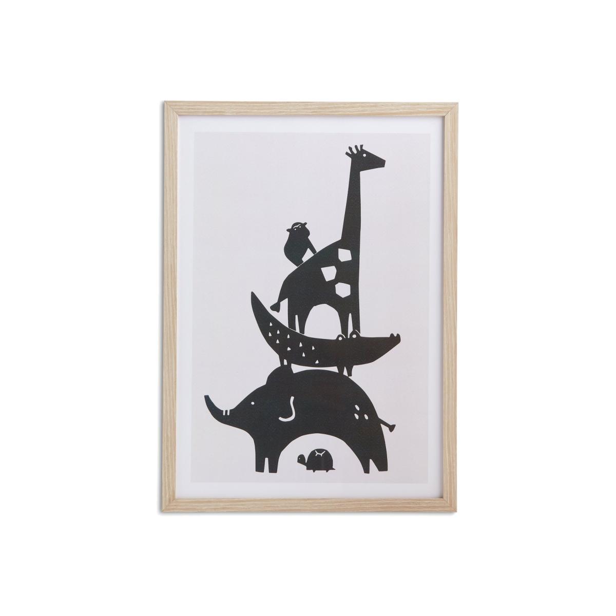 Looking for a print that inspires their wild side? Featuring a tower of safari animals, the black and white design stimulates your baby's sight until they learn to see in colour. It comes in a light coloured MDF frame with a D-ring clasp for quick and easy hanging. Just the ticket for any new tot's nursery. If you're kitting out the rest of your newborn's room, take a peek at our collection of smart, adaptable nursery furniture and storage.