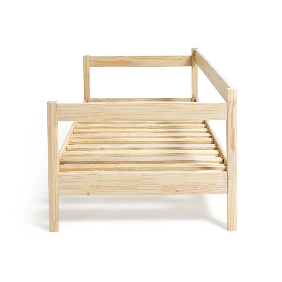 Sleep or sit, this bed's a hit. Crafted in solid pine, our sturdy single day bed frame is a space-saving addition to a child's room or guest room. Pop a mattress on the sprung slats and you've a comfy place to rest. Add a few pillows and cushions along the back and voila! You've got yourself a super spacious sofa. With its simple style and white-washed wood, it's fresh and modern. Day or night it looks just right.