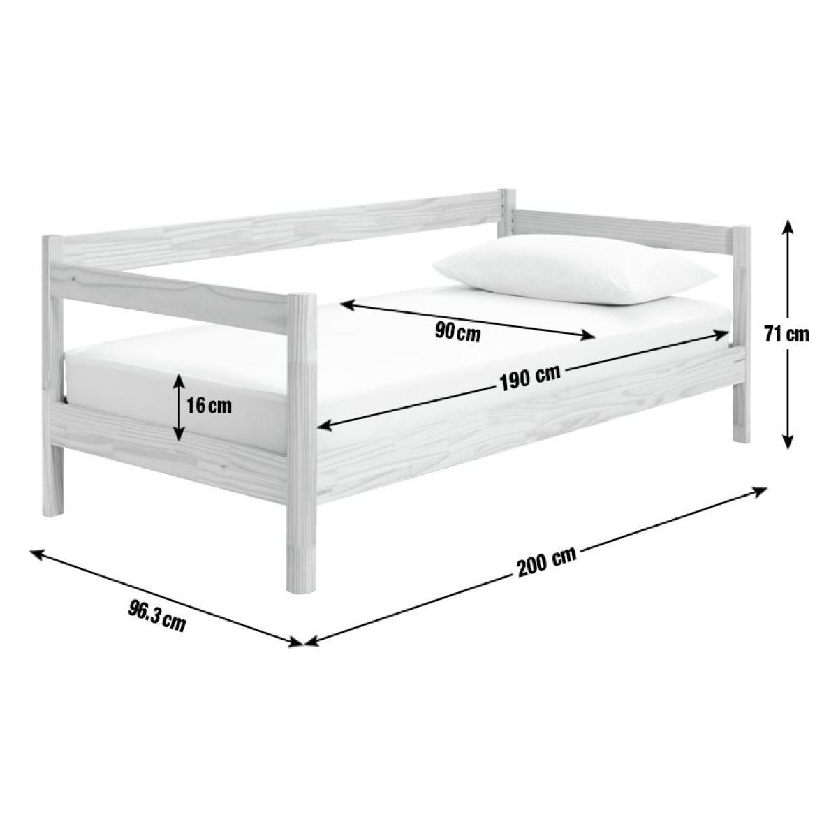 Sleep or sit, this bed's a hit. Crafted in solid pine, our sturdy single day bed is a space-saving addition to a child's room or guest room. Pop the mattress on the sprung slats and you've a comfy place to rest. Add a few pillows and cushions along the back and voila! You've got yourself a super spacious sofa. With its simple style and white-washed wood, it's fresh and modern. Day or night it looks just right. Part of the Odin collection. Bed frame:Single bed. Pine bed with a solid wood frame. Includes wooden slats. Self-assembly - 2 people recommended. Maximum user weight 100kg. For ages 4 years and over. Suitable for adult use (safety tested to 100kg). Mattress:Requires 1 mattress (included). Medium feel mattress. Open coil mattress with 192 springs. Knit cover with flat top finish. Anti allergy. Easy care no turn mattress. Dimensions:Frame size L200, W96.3, H71cm. Mattress size L190, W90, D16cm. Package dimensions:Package 1 size H13.6, W96.2, D71.2cm. Package 2 size H6, W190, D18cm. General information:Manufacturer's 1 year guarantee.