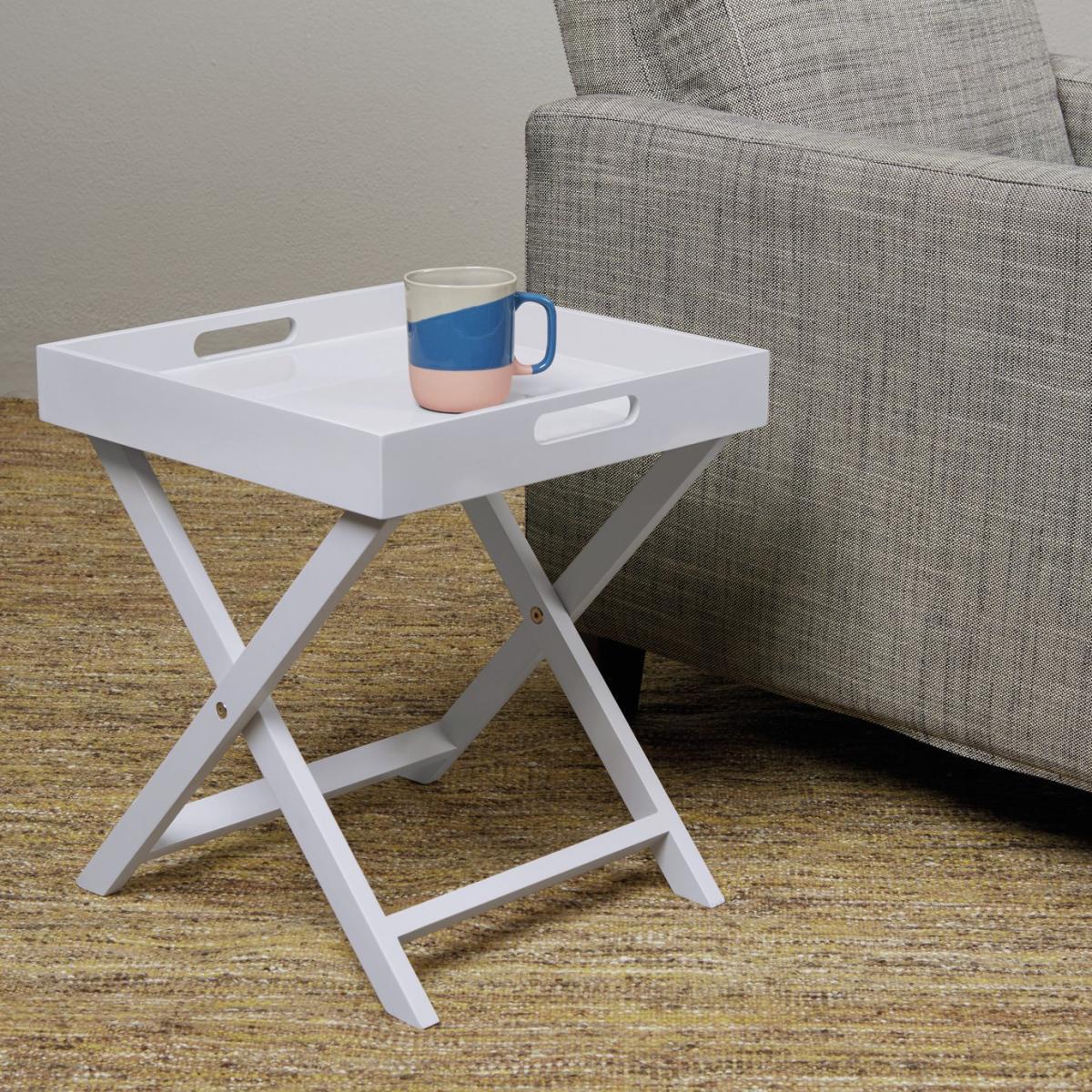 I love this side table because of its practical, folding design which makes it versatile and perfect for small spaces or multi-functional areas. Its grey finish offers a neutral, modern look that can easily complement contemporary or minimalist interiors, but it can also work well in more eclectic or rustic styles when paired with layered textures. For styling tips, I recommend using it as a bedside table or side surface in a living room, keeping things simple with a lamp, a couple of books, or a small plant to keep the surface uncluttered. Its foldaway feature also means you can tuck it away when not in use, making it ideal for guest rooms or compact apartments.