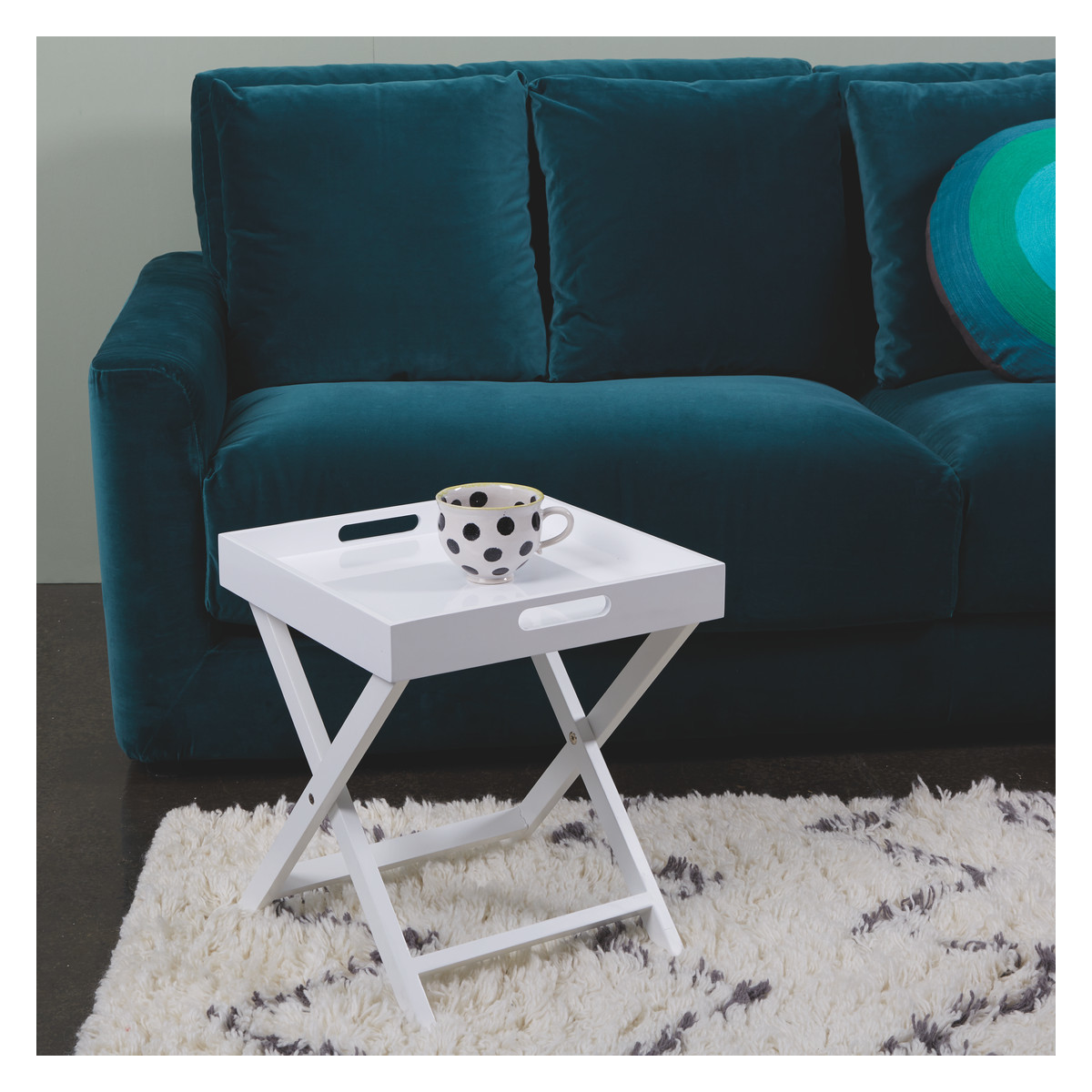 Original designs at suprisingly affordable prices. Designed by interiors brand Habitat, the Oken white folding side table is a multi-functional, space-saving design. With a removable tray top, this table can be used as a serving tray as well as a bedside table and can be folded away when not in use. Part of the Oken range, other colours are available. Part of the Oken collection. Size H 44, W 40, D 40cm. Made from MDF. Fully assembled. Maximum load weight 2.8kg. General information:Manufacturer's 1 year guarantee.