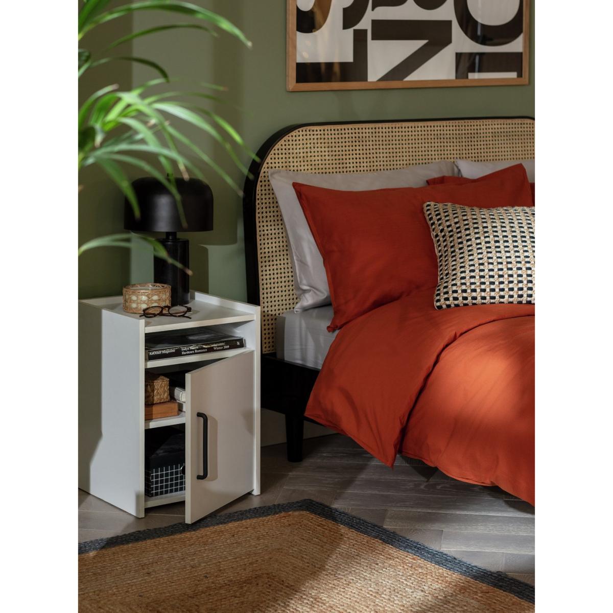 I love this little bedside table for its clean, minimalist design, which makes it versatile for various interior styles, from Scandi to contemporary schemes. The white finish helps it to blend seamlessly into lighter colour palettes but also provides a fresh backdrop for mixing in bolder accessories or colour pops. The single door offers practical storage for essentials like books, chargers, or skincare, keeping surfaces clutter-free. Styling tips include adding a small lamp or a decorative tray on top, and pairing it with natural textures or metallic accents to create visual interest. It works particularly well in bedrooms that embrace simplicity and functional design, making it a reliable and timeless piece.