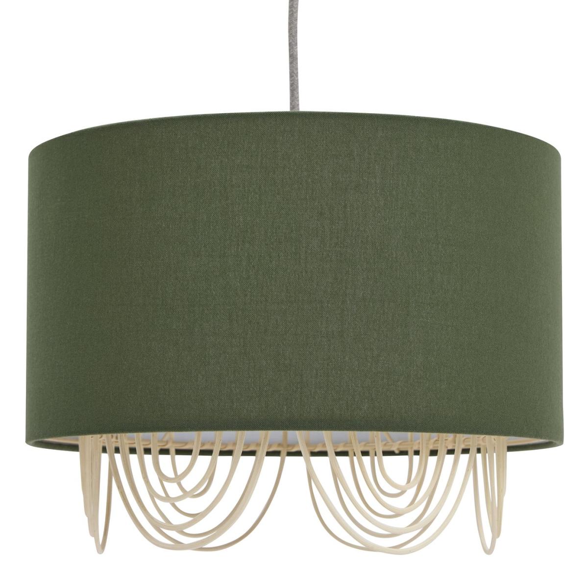A little bit of glamour, a touch of artisanal charm. This easy fit lampshade attracts compliments and sets the scene. In rich olive green, the striking design is brought to life by rattan scalloping. Pop it in the bedroom or living room to add drama and some modern boho vibes. Made from polyester. Size H26.5cm, Diameter 35cm. Recommended maximum bulb wattage 15 watts. Minimal assembly. Easy fit shade. Manufacturer's 1 year guarantee.