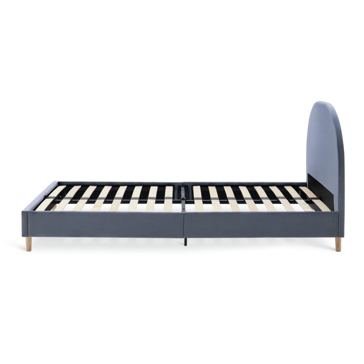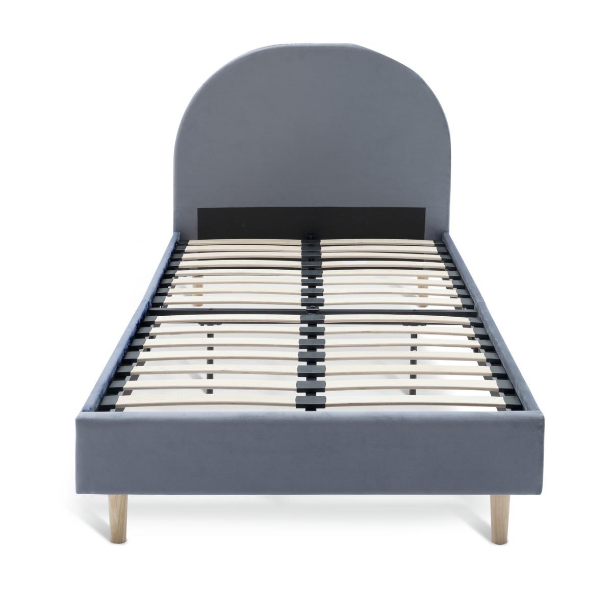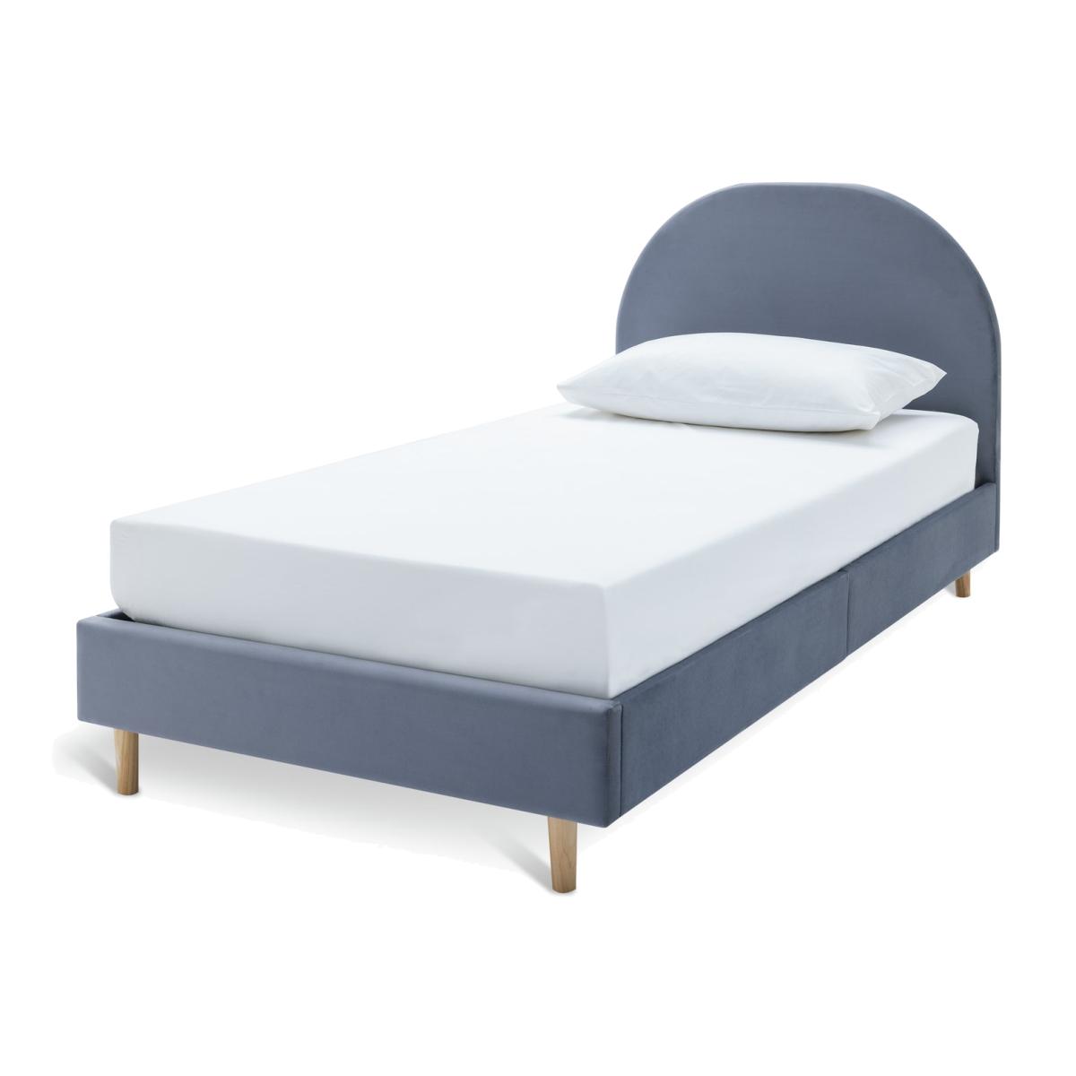 A bold, beautiful bedframe. With its big padded curved headboard upholstered in soft grey velvet, it's a dream of a design for any cool kids' bedroom. Designed with elegant solid wood legs that gives you underbed storage space if you need it. Part of the Olivia collection. Bed frame: Single bed. Grey bed with a metal and velvet frame. Includes sprung wooden slats. Packed flat - 2 people recommended. Maximum user weight 100kg. For ages 4 year and over. Suitable for adult use (safety tested to 100kg). Mattress: (not included). Dimensions: Frame size L201, W96.5, H97cm. Mattress size L190, W90, D25cm. Package dimensions: Package 1 size H5.5, W93, D106cm. Package 2 size H19.5, W23.5, D98.5cm. General information: Manufacturer's 2 year frame guarantee. FSC certified meaning the materials used for this product are responsibly sourced.