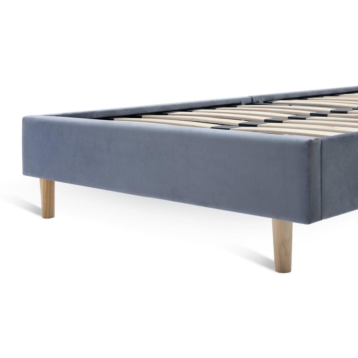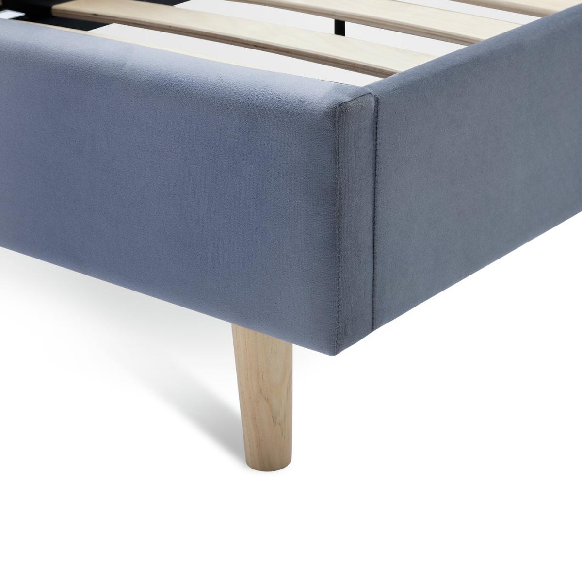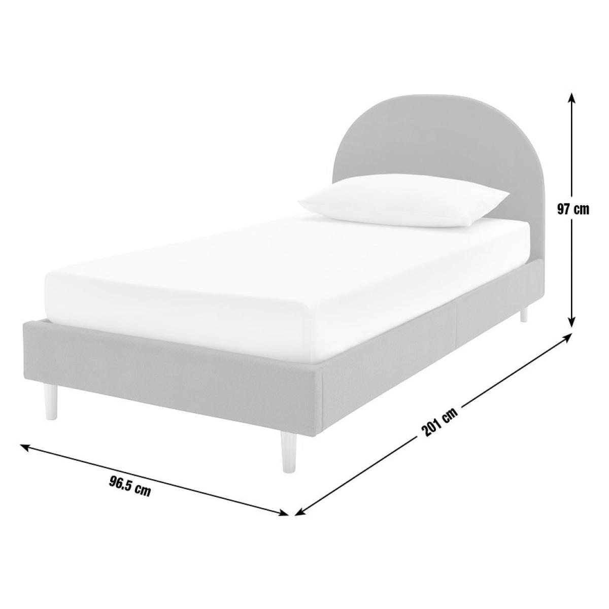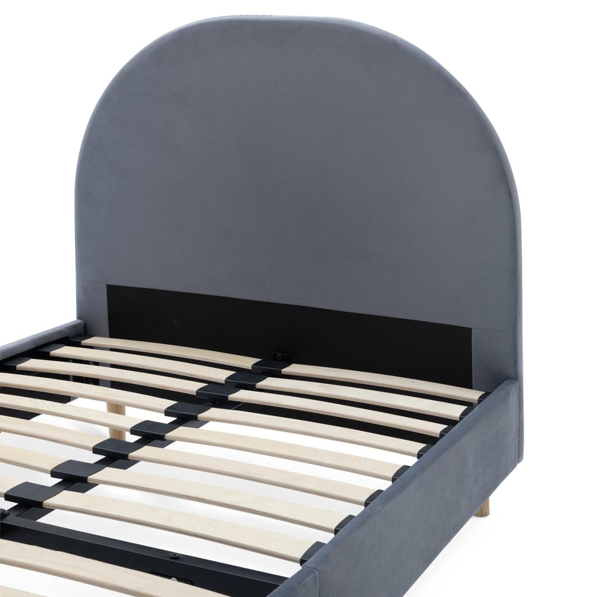 A bold, beautiful bedframe. With its big padded curved headboard upholstered in soft grey velvet, it's a dream of a design for any cool kids' bedroom. Designed with elegant solid wood legs that gives you underbed storage space if you need it. Part of the Olivia collection. Bed frame: Single bed. Grey bed with a metal and velvet frame. Includes sprung wooden slats. Packed flat - 2 people recommended. Maximum user weight 100kg. For ages 4 year and over. Suitable for adult use (safety tested to 100kg). Mattress: (not included). Dimensions: Frame size L201, W96.5, H97cm. Mattress size L190, W90, D25cm. Package dimensions: Package 1 size H5.5, W93, D106cm. Package 2 size H19.5, W23.5, D98.5cm. General information: Manufacturer's 2 year frame guarantee. FSC certified meaning the materials used for this product are responsibly sourced.