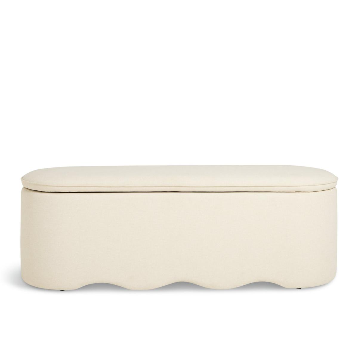 Give a wave to our padded storage seat. With its softly rolling curves Onda, the large ottoman, is a gentle giant with oodles of space for linens and clothes. Upholstered in a soothing neutral fabric, it brings a sense of rich calmness. And have you noticed the piping? It adds a luxe touch that accentuates the graceful design of this statement piece. Part of the Onda collection. Made from fabric with a fabric finish. Can be used as occasional seating. Size H45, W130, D40cm. Weight 20.5kg. Self-assembly. Storage capacity: 95 litres. Package Dimensions: Package 1 dimensions: H46.5, W133, D42cm. Package 1 weight: 22.5kg. General information: Manufacturer's 1 year guarantee.