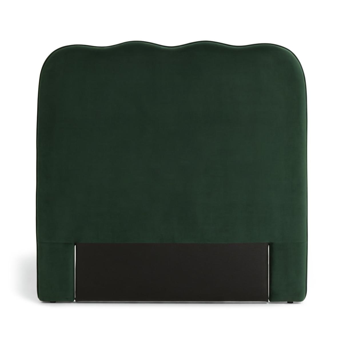 Give your double bed a jewel-toned makeover with our green velvet headboard. Piped edging and gently rippled curves add fluidity to the design. A plush bold statement headboard that comfortably enriches a bed. Love the luxe look? Pop on a few velvet cushions or a throw from our collection for some extra bedtime indulgence. Set the mood for relaxation with candles and diffusers from our selection of home fragrances. Part of the Onda collection. Size W152, H146cm. Weight 18.5kg. Standard fixings included. Self-assembly: 1 person recommended.