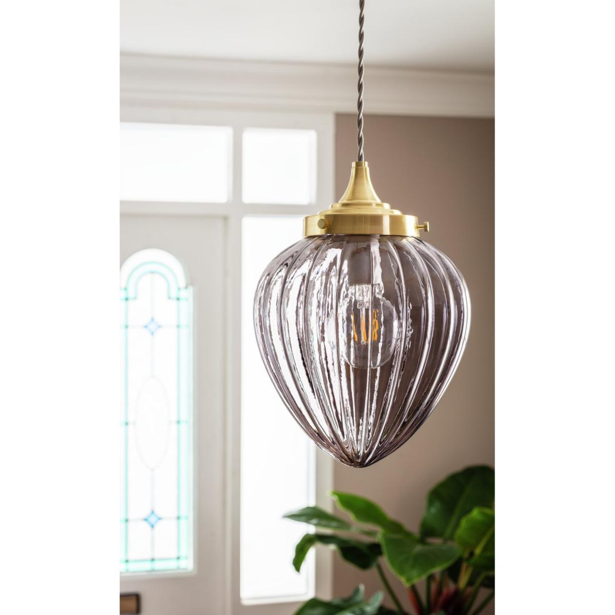 A contemporary classic. Our Orlena pendant light is beautifully crafted with art deco style metallic finishes and a grey ribbed glass shade. This vintage-inspired pendant light brings a touch of elegance wherever it goes. Fix over the kitchen island for a subtle glow or hang 3 together as a dining table centrepiece. Feast in style.