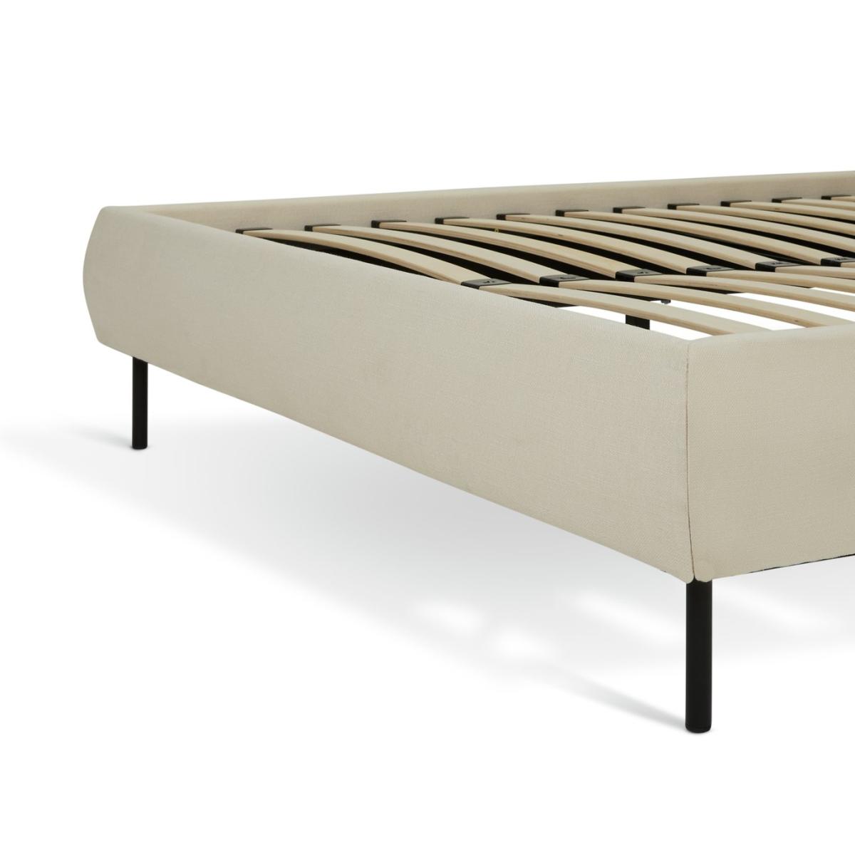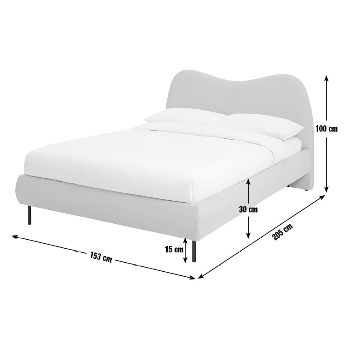 A bed to dive into, the Orton is all about soothing curves, minimalist lines and smooth tactile upholstery. Black metal legs contrast with the soft organic forms of the headboard and base to create a chic centrepiece for any contemporary bedroom. Part of the Orton collection. Upholstered frame. Linen look fabric - 100% polyester. Metal feet. Base with sprung wooden slats. Size W153, L205, H100cm. Height to top of siderail 30cm. 15cm clearance between floor and underside of bed. Weight 38kg. Total maximum user weight 220kg. Self-assembly - 2 people recommended. Package Dimensions: Package 1 dimensions: H10, W155, D116.5cm. Package 1 weight: 24kg. Package 2 dimensions: H22, W234, D23.5cm. Package 2 weight: 21.5kg. General Information: Manufacturer's 1 year guarantee. FSC certified meaning the materials used for this product are responsibly sourced.