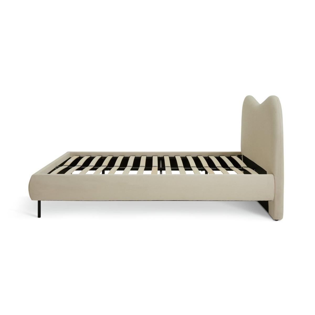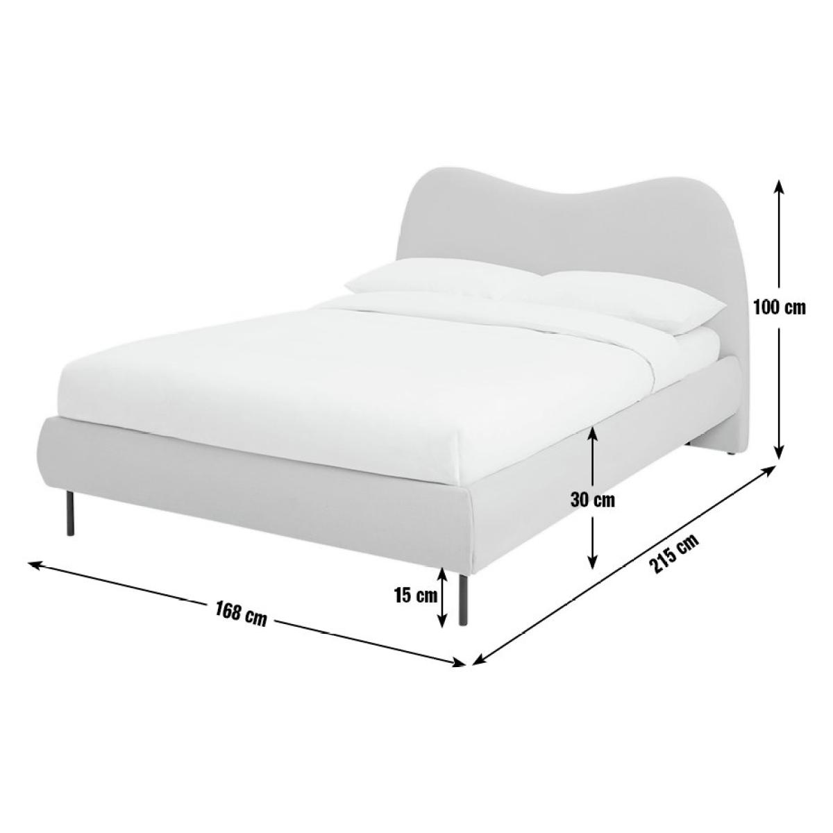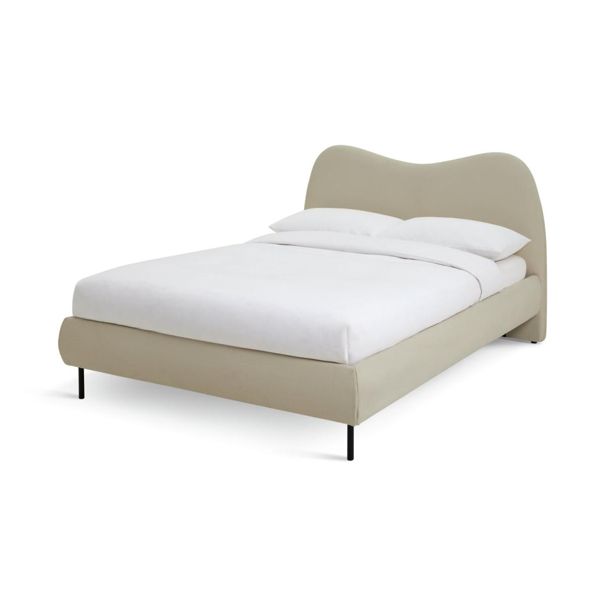A bed to dive into, the Orton is all about soothing curves, minimalist lines and smooth tactile upholstery. Black metal legs contrast with the soft organic forms of the headboard and base to create a chic centrepiece for any contemporary bedroom. Part of the Orton collection. Upholstered frame. Linen look fabric - 100% polyester. Metal feet. Base with sprung wooden slats. Size W168, L215, H100cm. Height to top of siderail 30cm. 15cm clearance between floor and underside of bed. Weight 40kg. Total maximum user weight 220kg. Self-assembly - 2 people recommended. Package Dimensions: Package 1 dimensions:H10, W170, D116.5cm. Package 1 weight: 22kg. Package 2 dimensions: H22, W244, D23.5cm. Package 2 weight: 20.5kg. General Information: Manufacturer's 1 year guarantee. FSC certified meaning the materials used for this product are responsibly sourced.