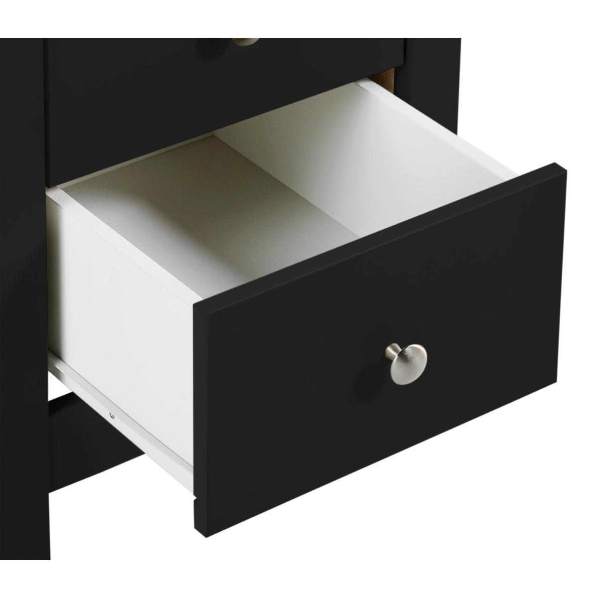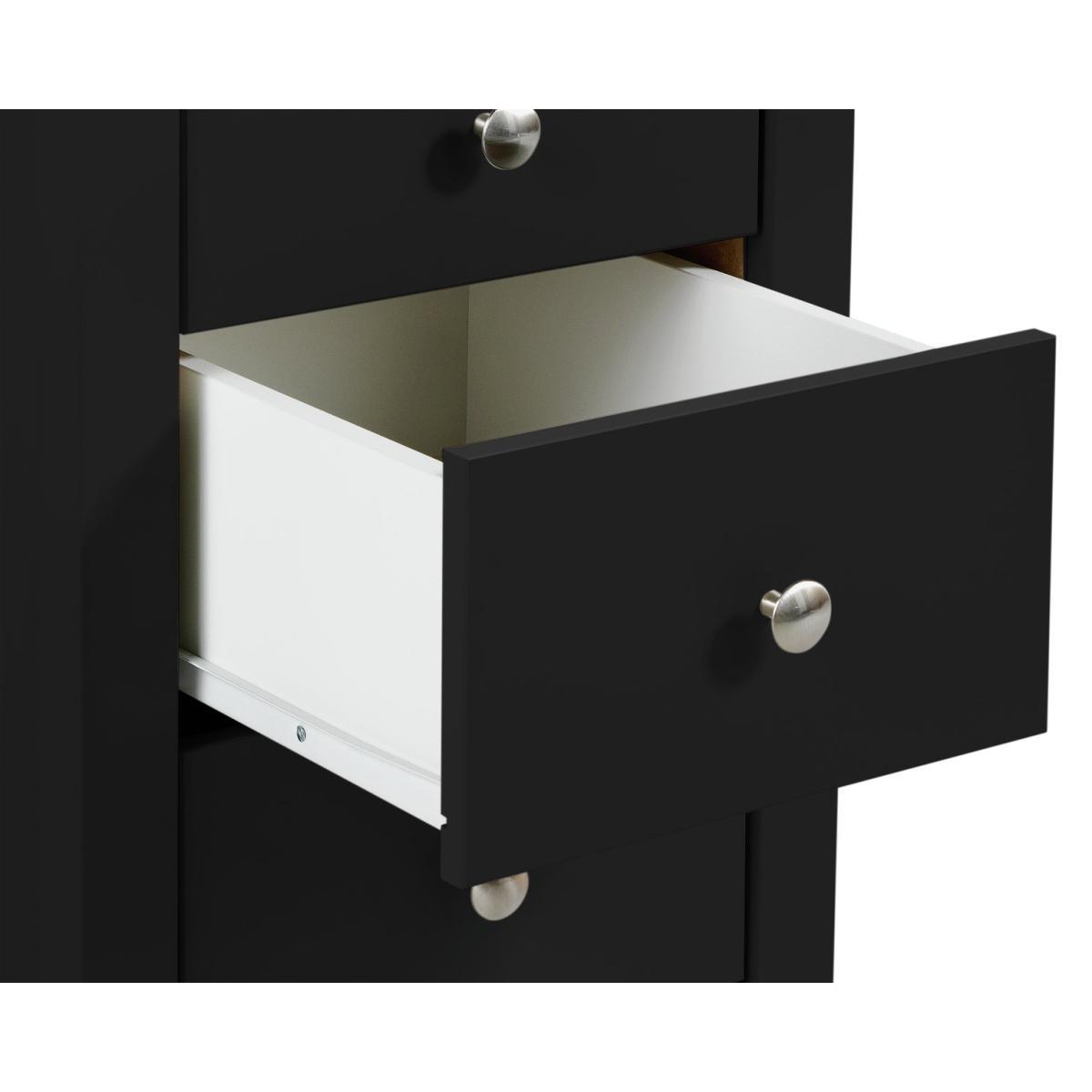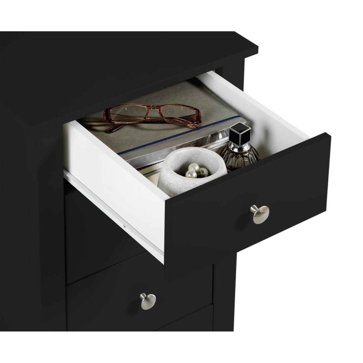 I love this black bedside cabinet for its clean, modern look and practical design. Its sleek finish makes it a versatile piece that works well in contemporary, minimalist, or industrial-inspired interiors. It’s perfect for those wanting a dark statement piece that adds depth and subtle sophistication to the bedroom. When styling, consider balancing its boldness with lighter bedding or textured textiles on the bed. Practical tips include using the drawers for organising essentials, while the top surface is ideal for a bedside lamp, clock, or favourite decorative item. Its compact size also makes it a good choice for smaller bedrooms, providing functional storage without overwhelming the space.