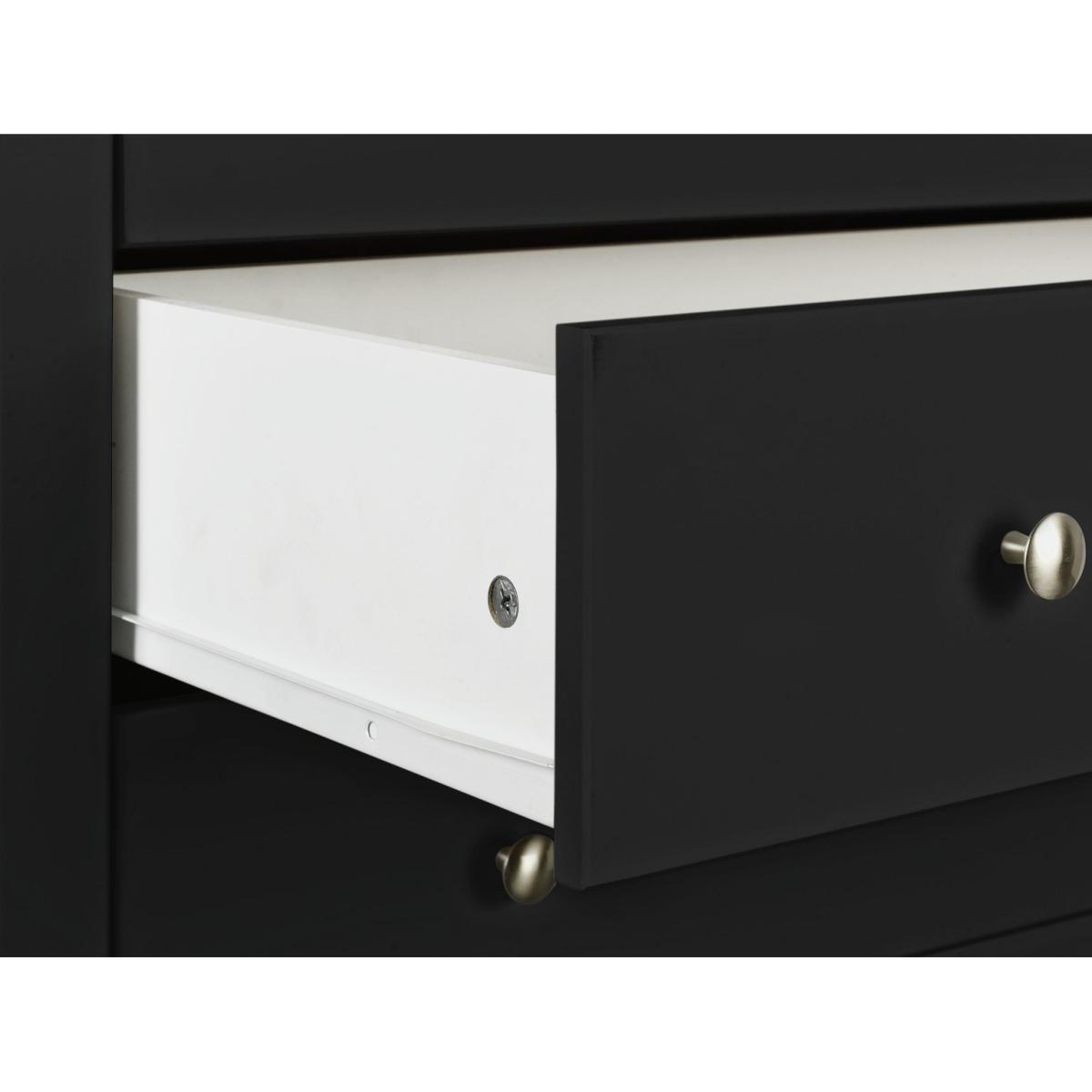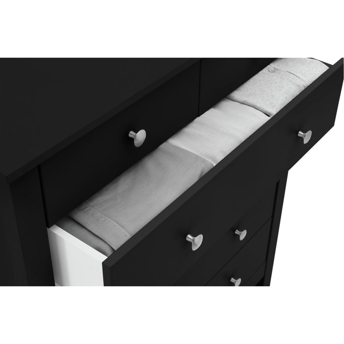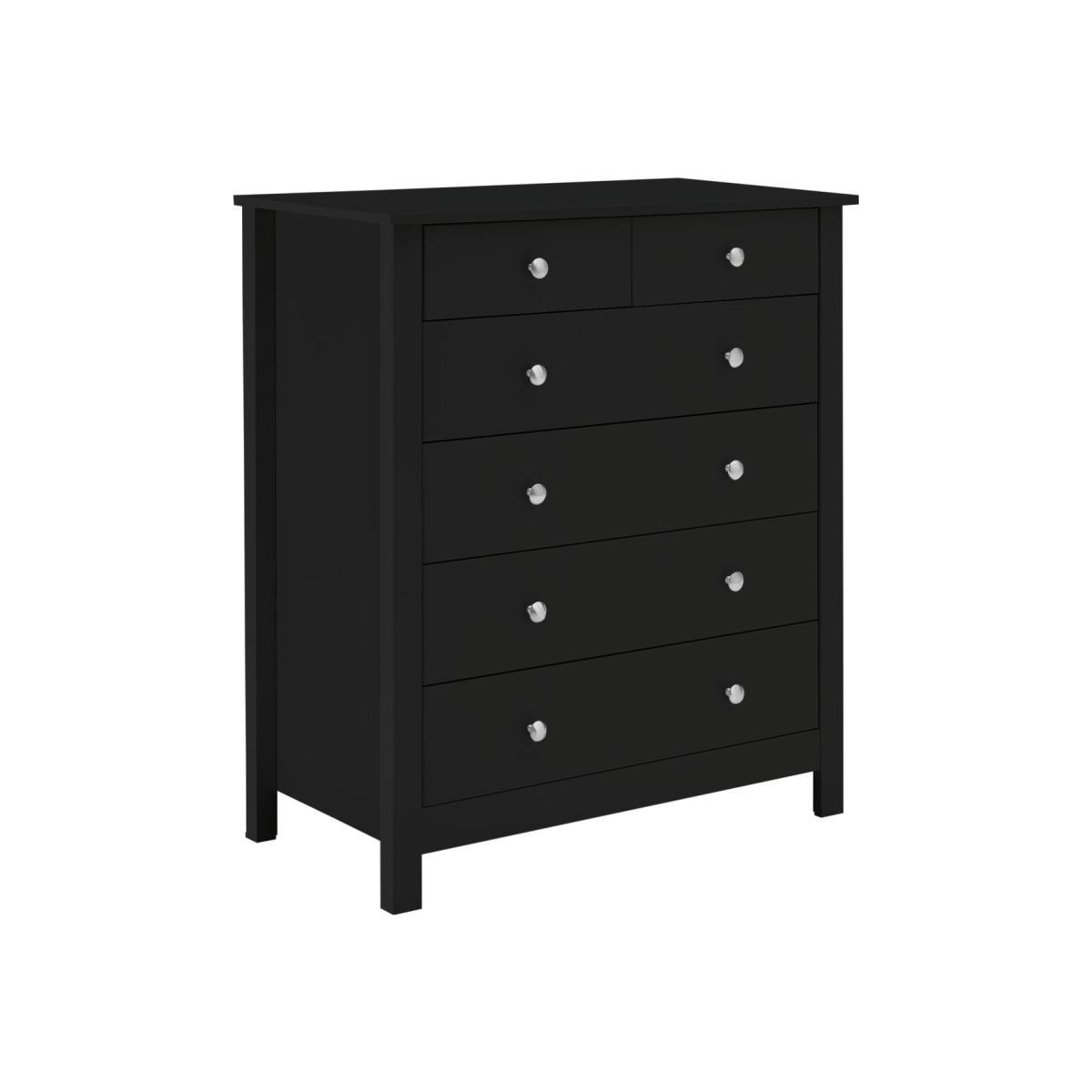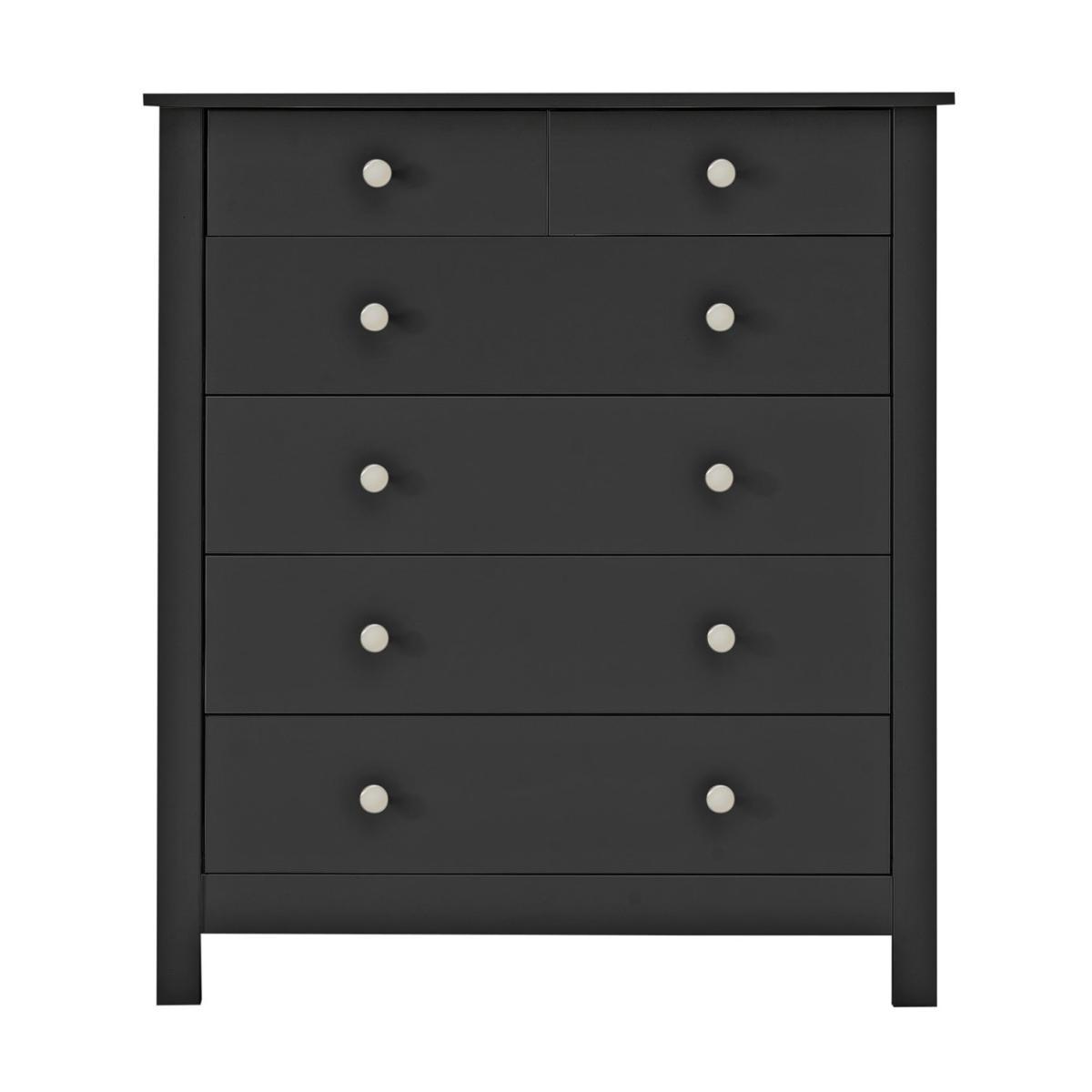 I love this piece for its sleek black finish and compact, practical design - making it a versatile addition to a range of interiors. It works particularly well in contemporary or minimalist schemes, where its clean lines add a subtle statement without overwhelming the space. For styling, consider pairing it with contrasting textures like wood or metal accessories to soften the look, or using colourful or patterned textiles nearby to inject personality. It’s also ideal for bedrooms with limited space, offering ample storage without sacrificing style, and the lustrous knobs add a touch of visual interest without clutter. Overall, it’s a practical and stylish choice for delivering organisation and modern elegance.