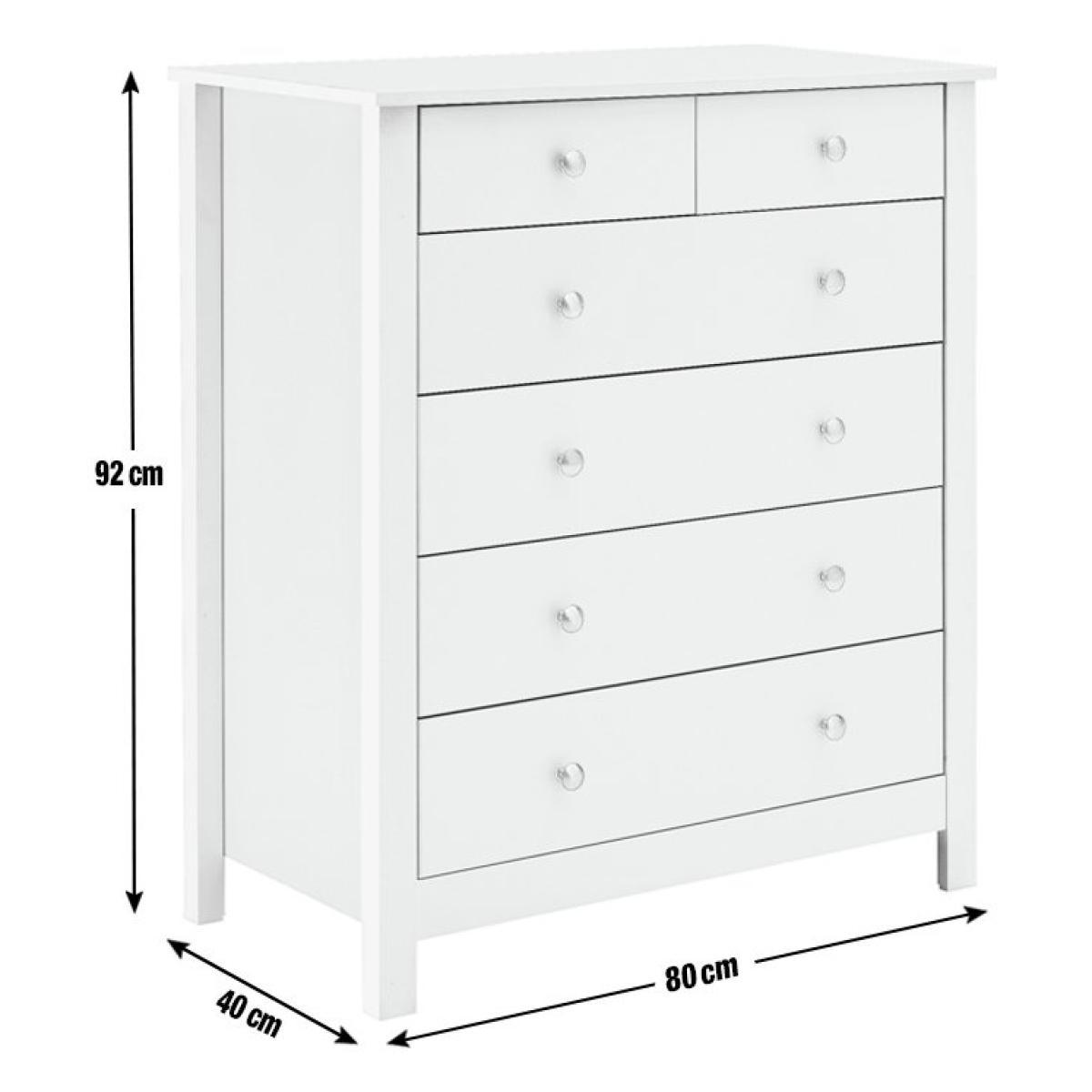 Trendy Osaka. Our wide 6 drawer chest offers a minimal but classy look. Polished metal handles and easy glide runners promise smooth operation. Neat looks on the outside are matched by the opportunity for neat folding on the inside. 6 spacious drawers in our chest give clothes plenty of breathing space. In a white painted finish Osaka is where freshness meets function. Dress the surface with vases, plants or a lamp in pops of colour you love. Even put a mirror or some wall art behind. Make it personal. Why not?