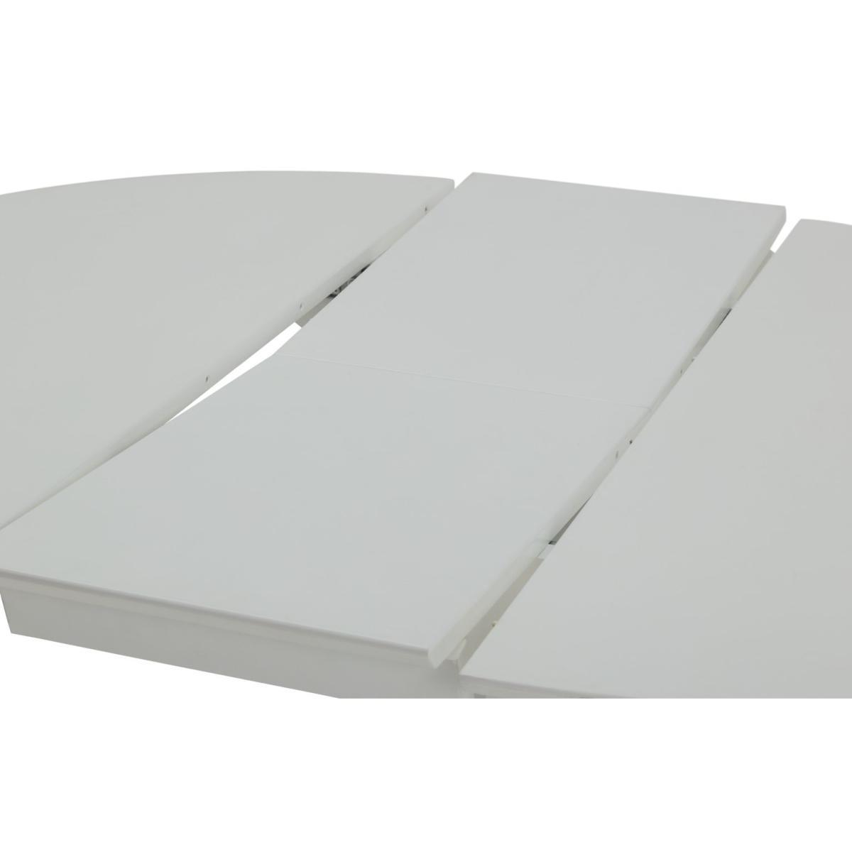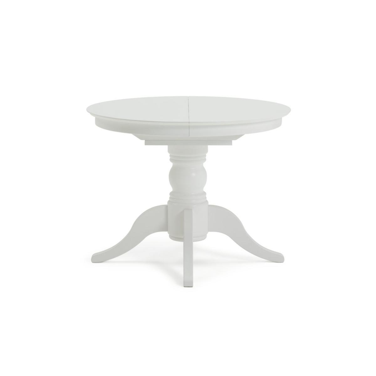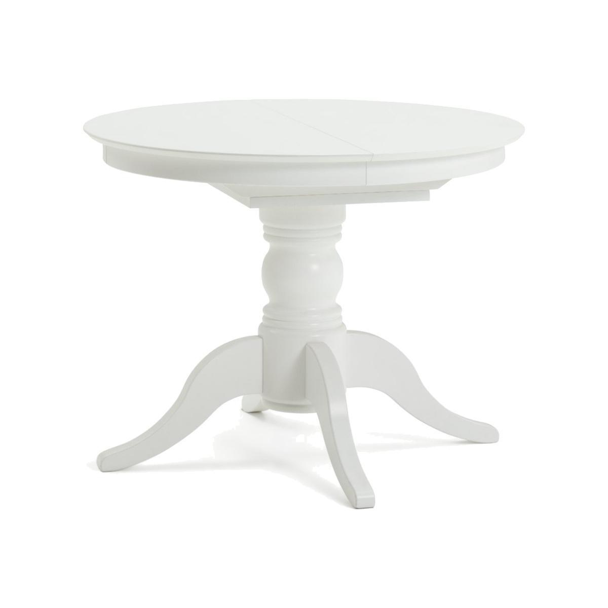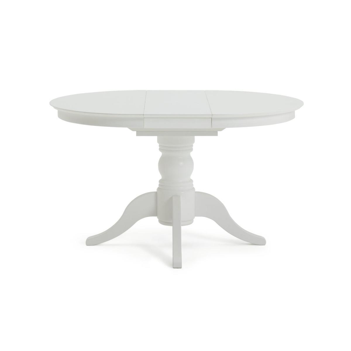 Breakfast for 4. Dinner for 6. Our adjustable dining table sets the stage for chilled family meals and dinner dates with friends. Super sociable thanks to its relaxed, circular shape. Simply pop in the centre leaf extension piece to seat everyone comfortably. Easy as that. This white wooden extendable dining table is a modern take on a traditional design. Brings a fresh, country feel to your dining room or kitchen. An all-round dinner winner.