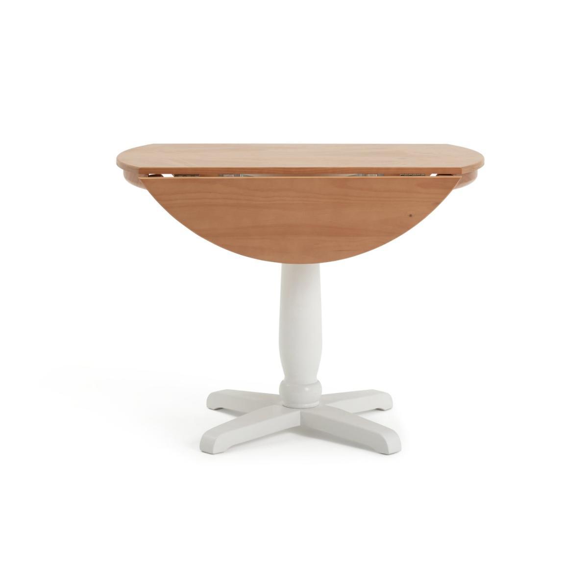 Drop dead gorgeous. Our Otis wood table is stylishly sturdy and a real space saver. The solid wood table top and painted legs are classic modern rustic. Seats four comfortably for dinner. Everyone finished? Drop the leaves, tuck against the wall and say hello to extra room. The palette of white and natural wood adds to the feeling of spaciousness. Marvellous.